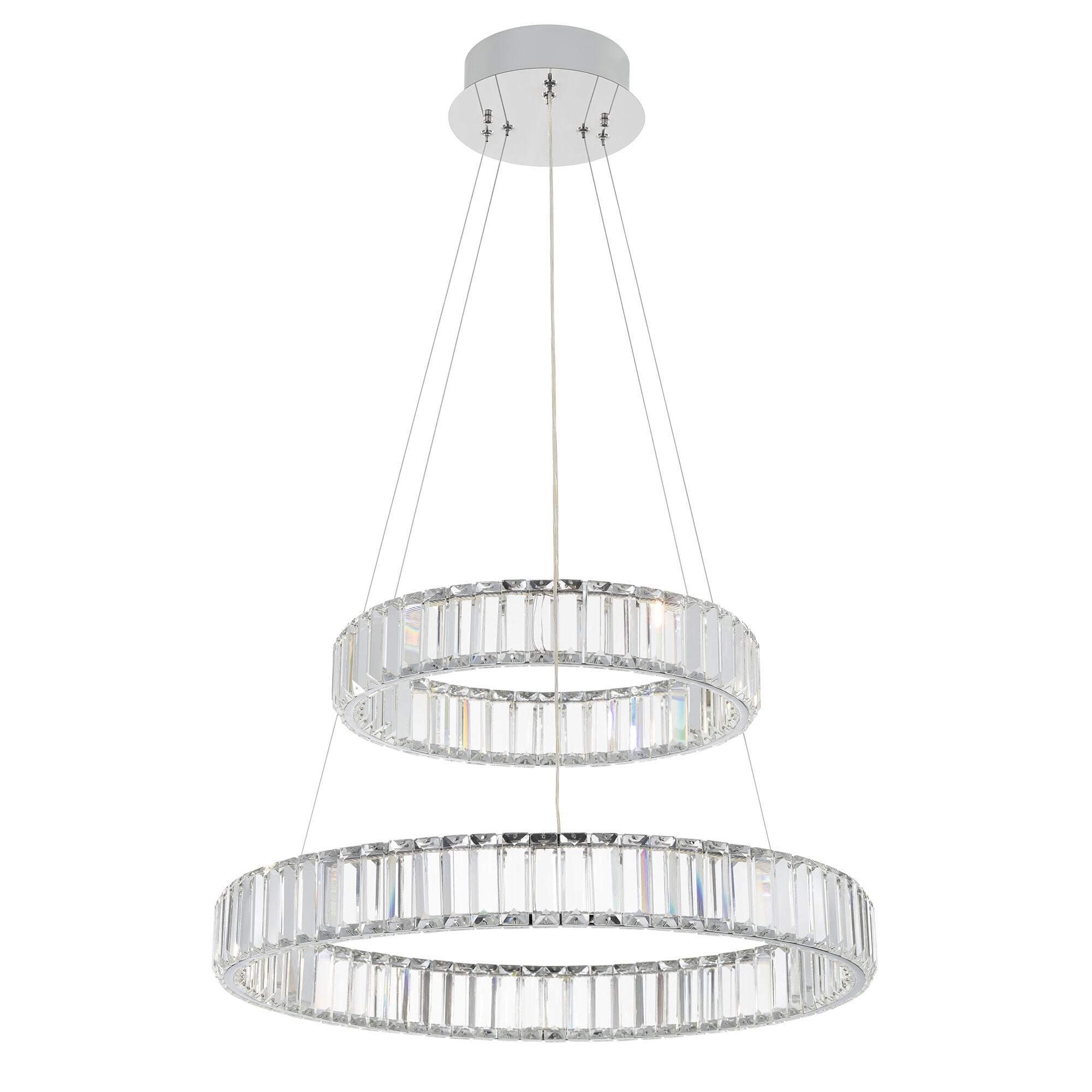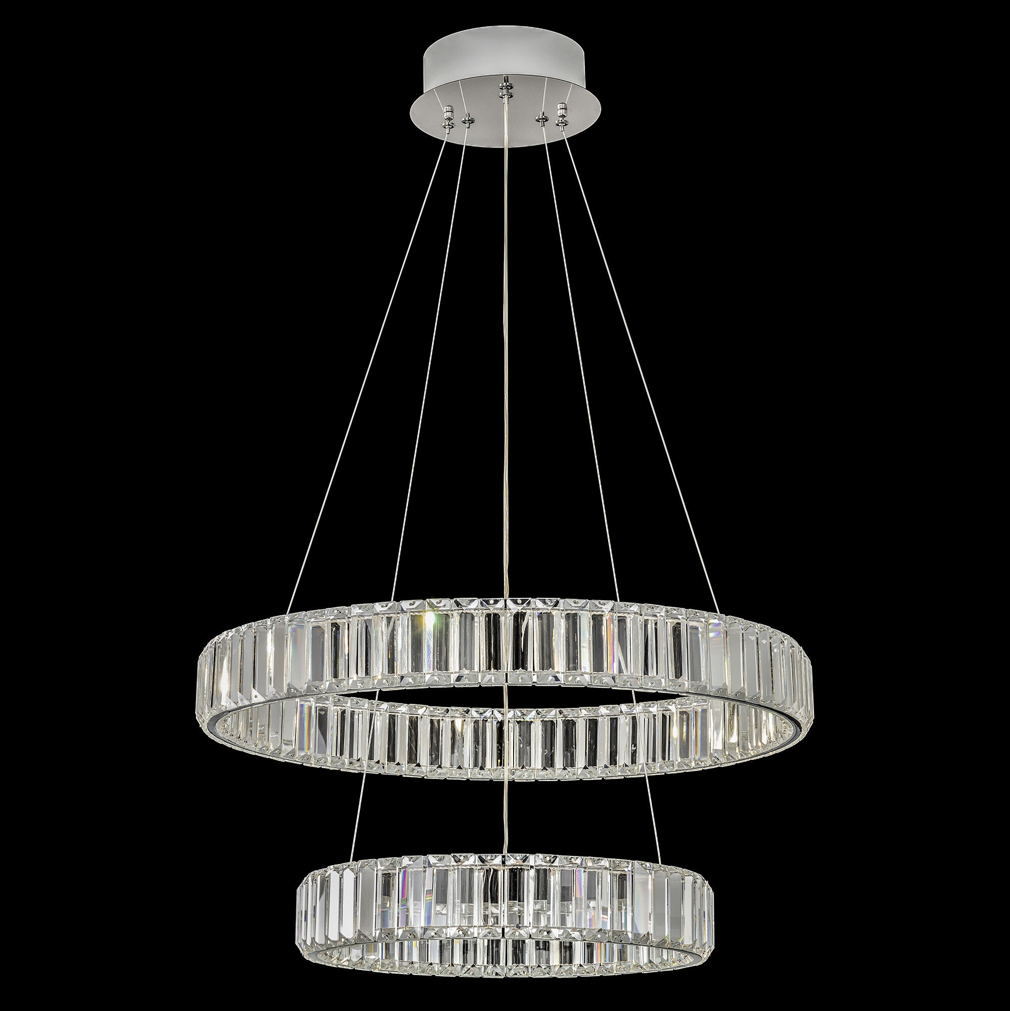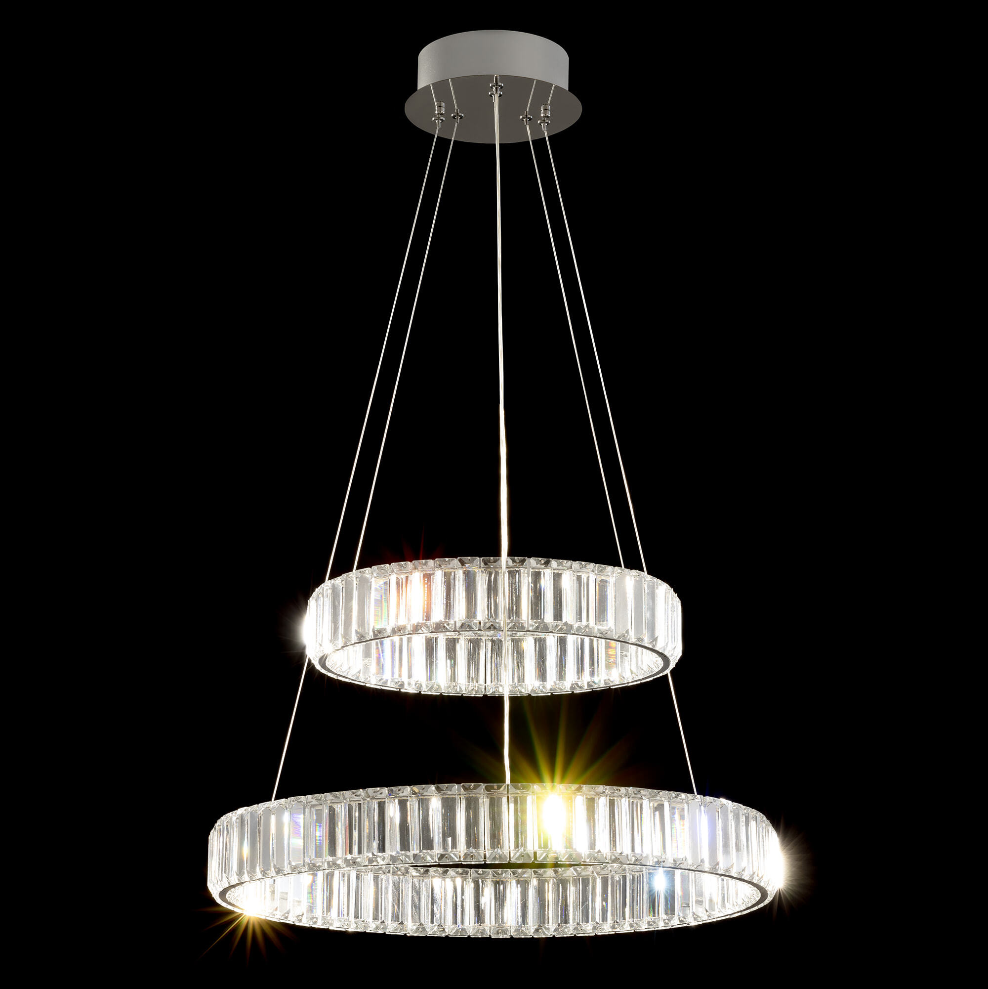 Хрустальная светодиодная люстра Citilux Чезаре CL338261 истинное произведение искусства, которое не оставит равнодушными даже самых требовательных ценителей красоты. Основание круглой формы, цвет хром. Два хрустальных кольца на металлическом каркасе, подвешены на элегантных тросиках и словно парит в воздухе. Хрустальные элементы являются воплощением кристальной прозрачности и современной огранки, они играют сияющими отблесками света и создают неповторимую атмосферу роскоши и элегантности.