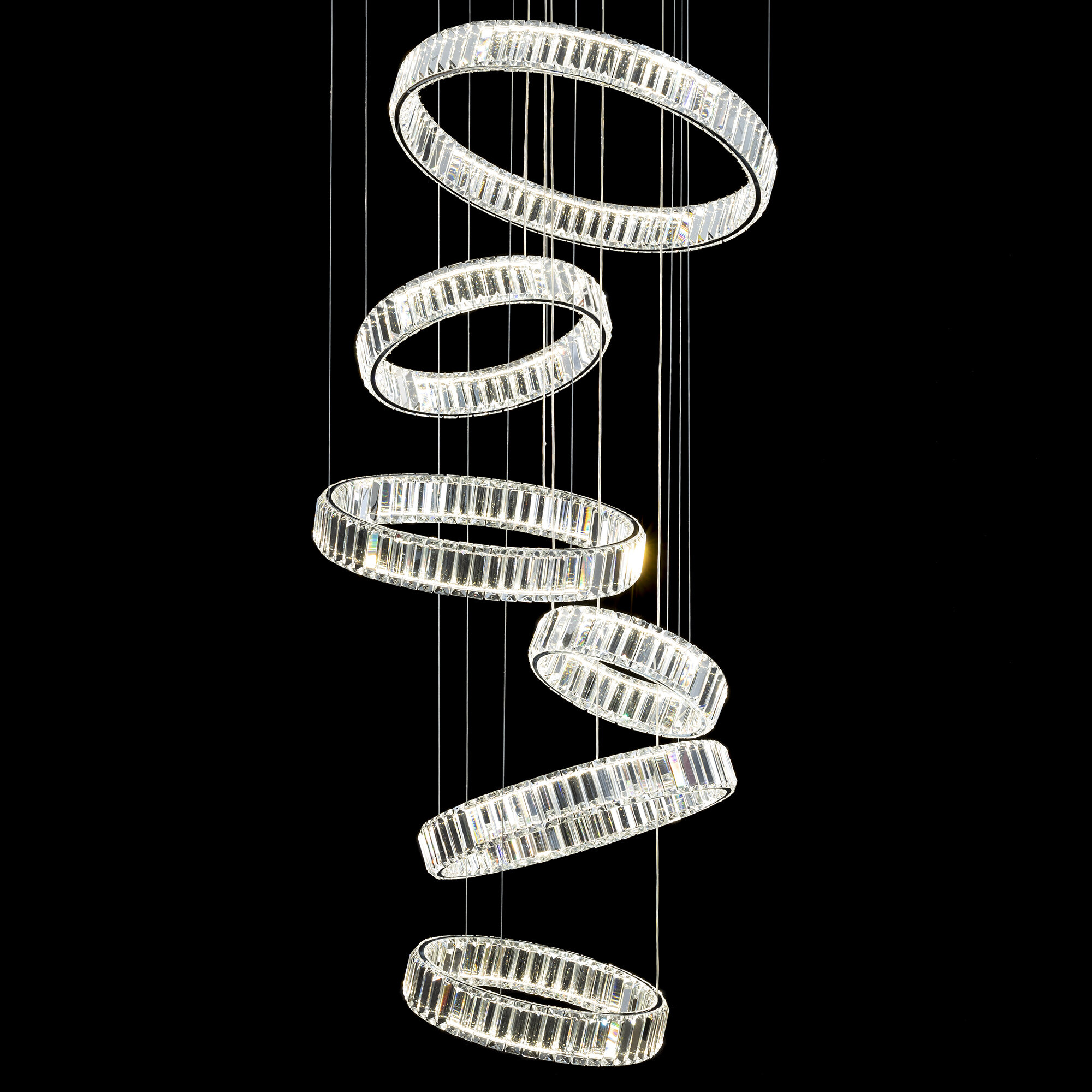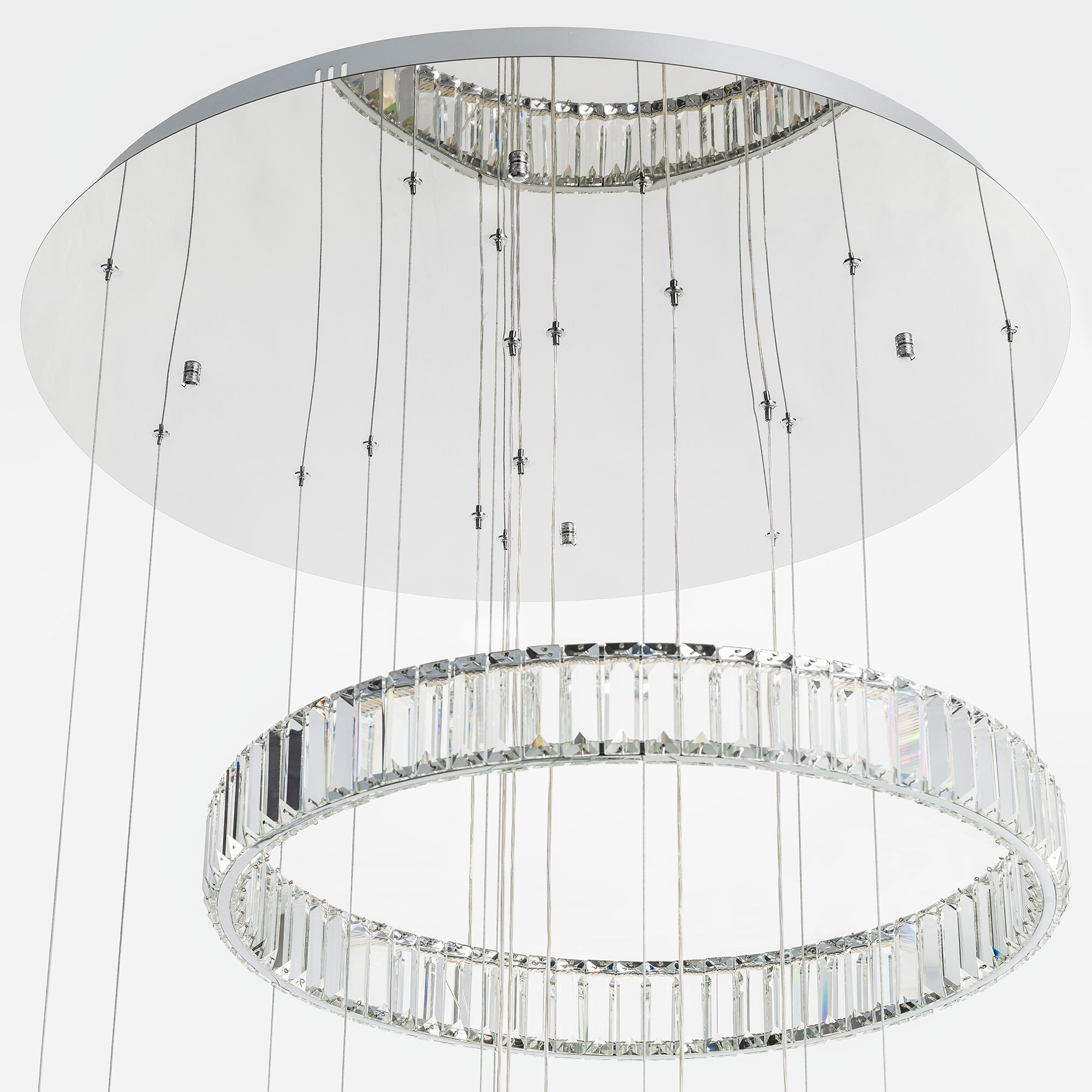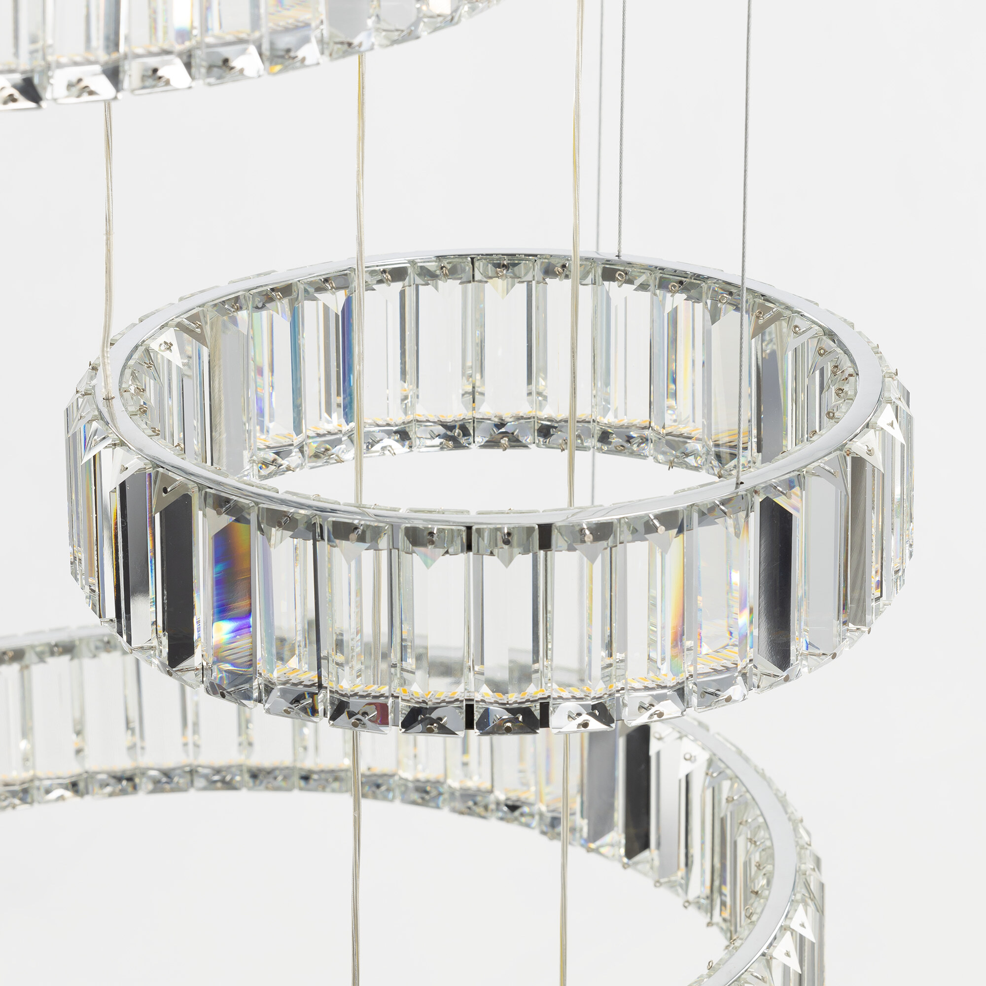 Хрустальная каскадная люстра Citilux Чезаре CL338661 истинное произведение искусства, которое не оставит равнодушными даже самых требовательных ценителей красоты. Основание круглой формы, цвет хром. Шесть хрустальных колец на металлическом каркасе, подвешены на элегантных тросиках и словно парит в воздухе. Хрустальные элементы являются воплощением кристальной прозрачности и современной огранки, они играют сияющими отблесками света и создают неповторимую атмосферу роскоши и элегантности.