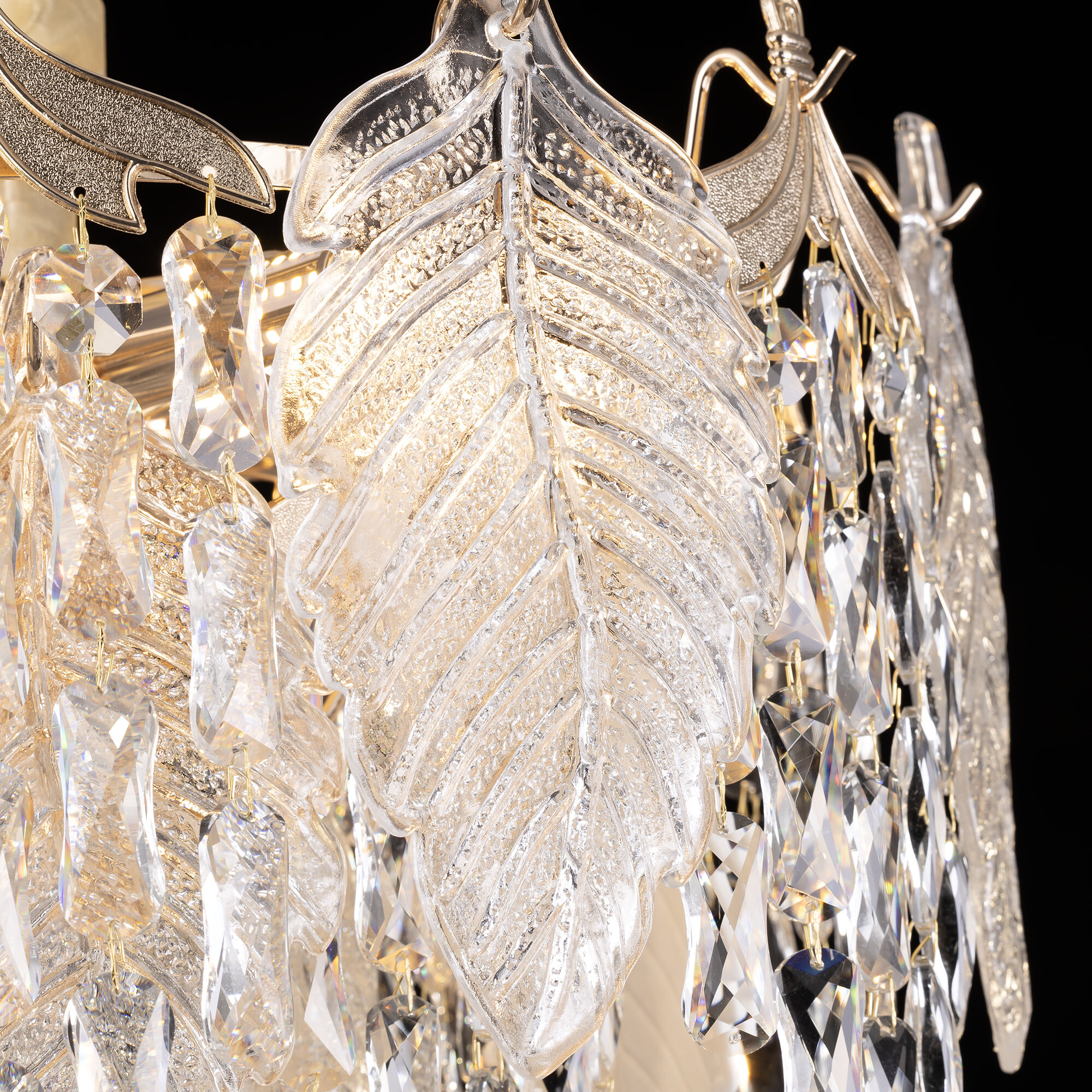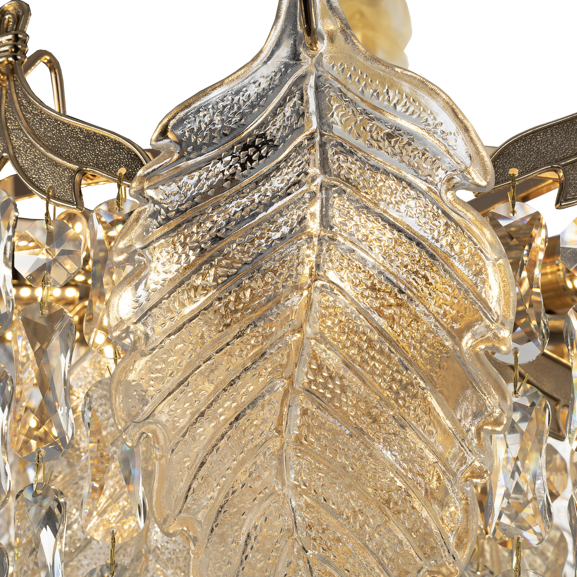 Шикарная подвесная люстра Citilux Darby CL309252 искусно украшена ниспадающим каскадом хрустальных подвесок и великолепно декорирована прекрасными стеклянными листьями. Корпус светильника металлический, благородного золотого оттенка. Этот удивительный образец красоты и элегантности станет настоящим украшением вашего интерьера.