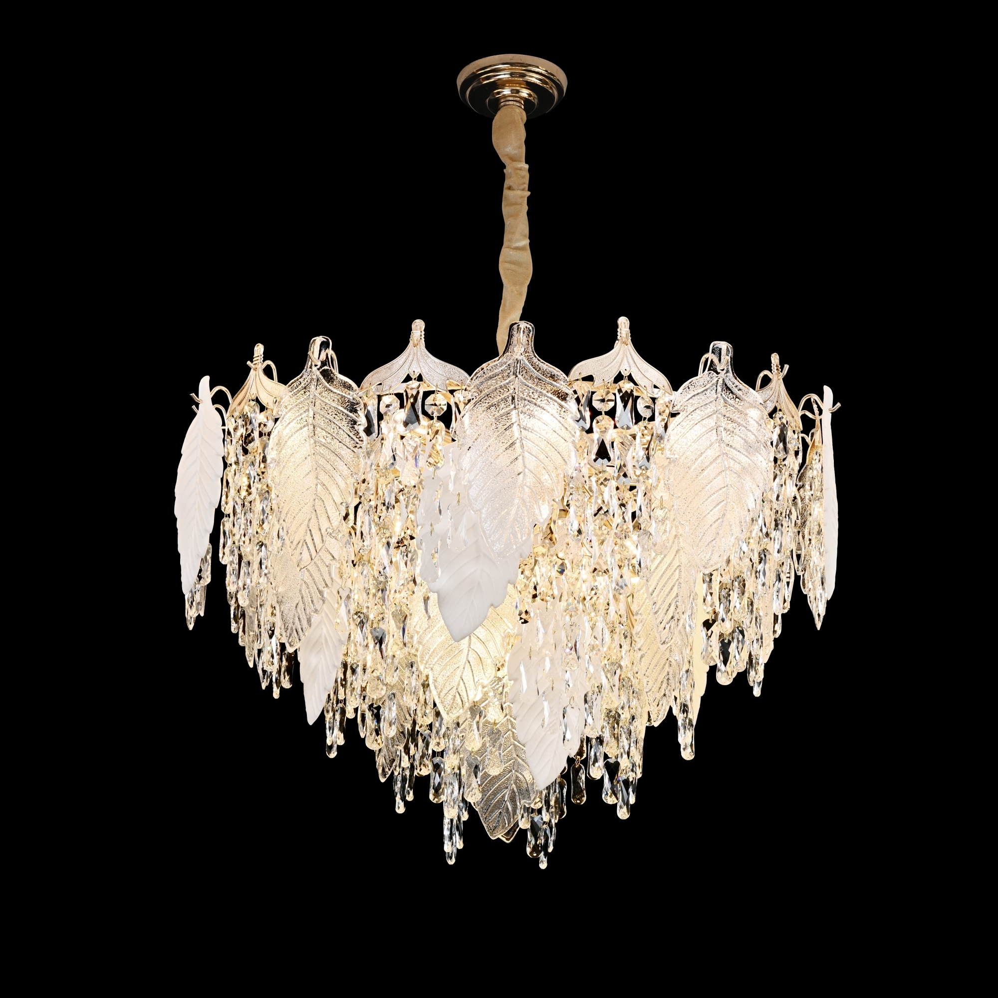 Шикарная подвесная люстра Citilux Darby CL309262 искусно украшена ниспадающим каскадом хрустальных подвесок и великолепно декорирована прекрасными стеклянными листьями. Корпус светильника металлический, благородного золотого оттенка. Этот удивительный образец красоты и элегантности станет настоящим украшением вашего интерьера.