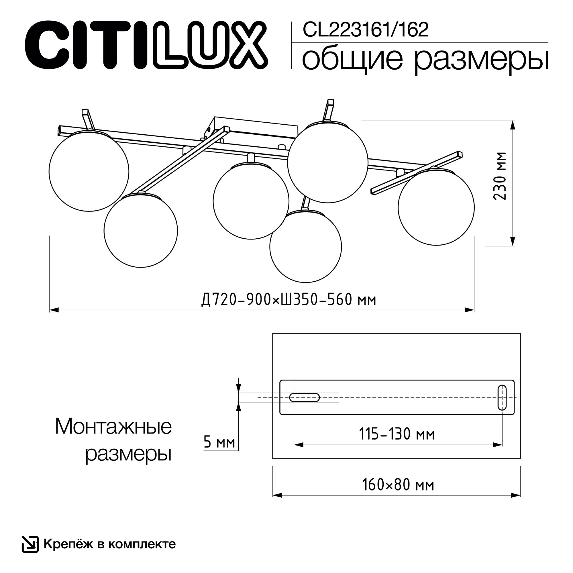 Преобразите ваш интерьер с потолочной светодиодной люстрой Citilux CL223162 Dorsy! Чёрное матовое покрытие с декоративными хромированными элементами добавит изысканности, а шесть плафонов в форме шаров из матового оптического полимера создадут мягкое и равномерное освещение. Поворотные рожки позволят придать модели различные формы.
