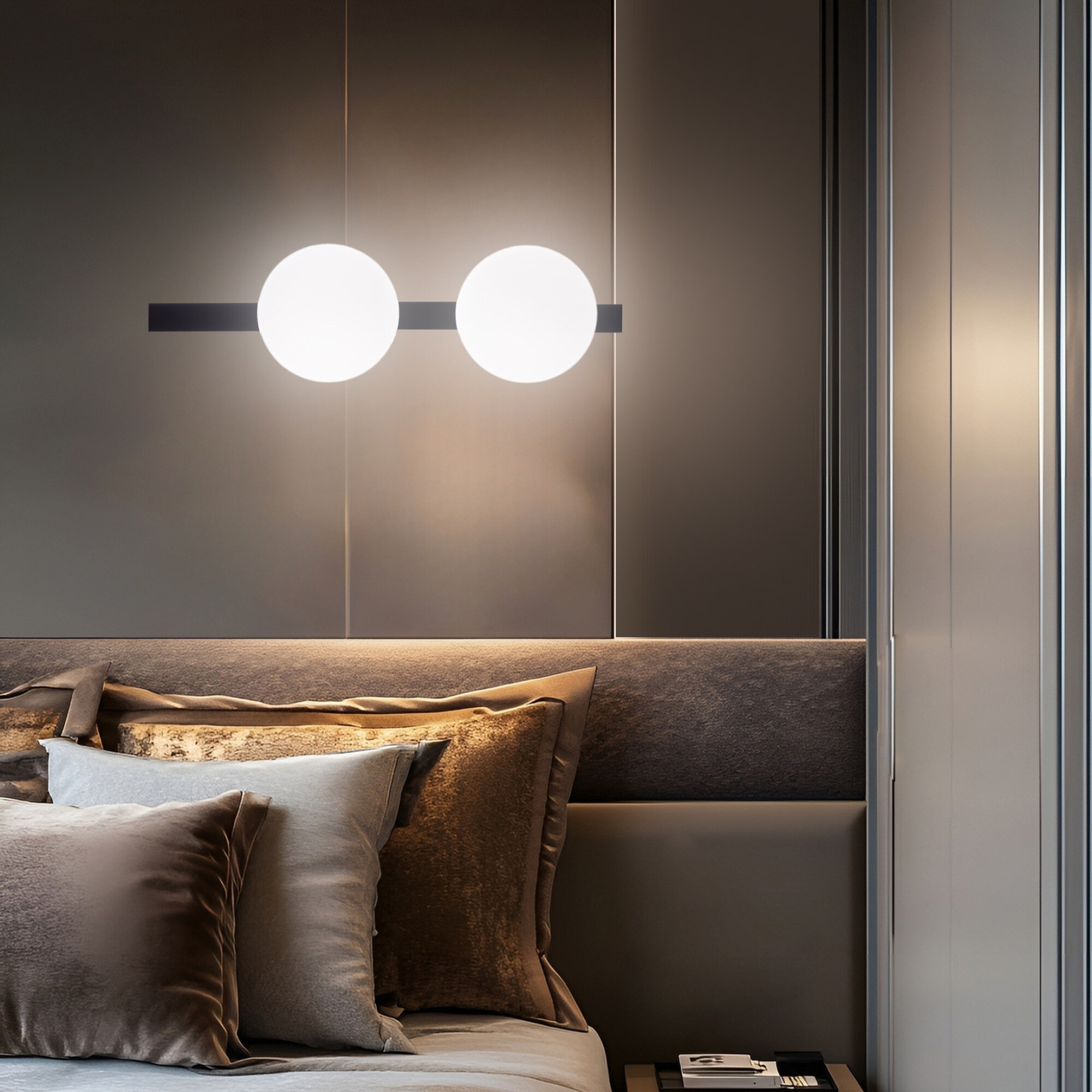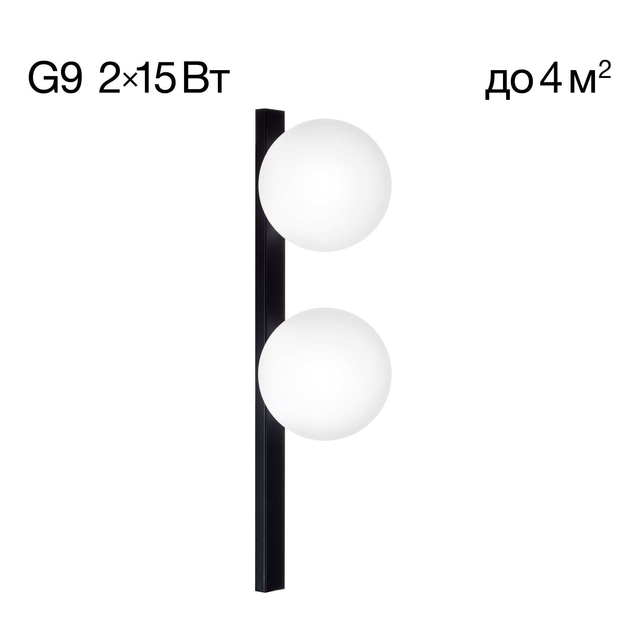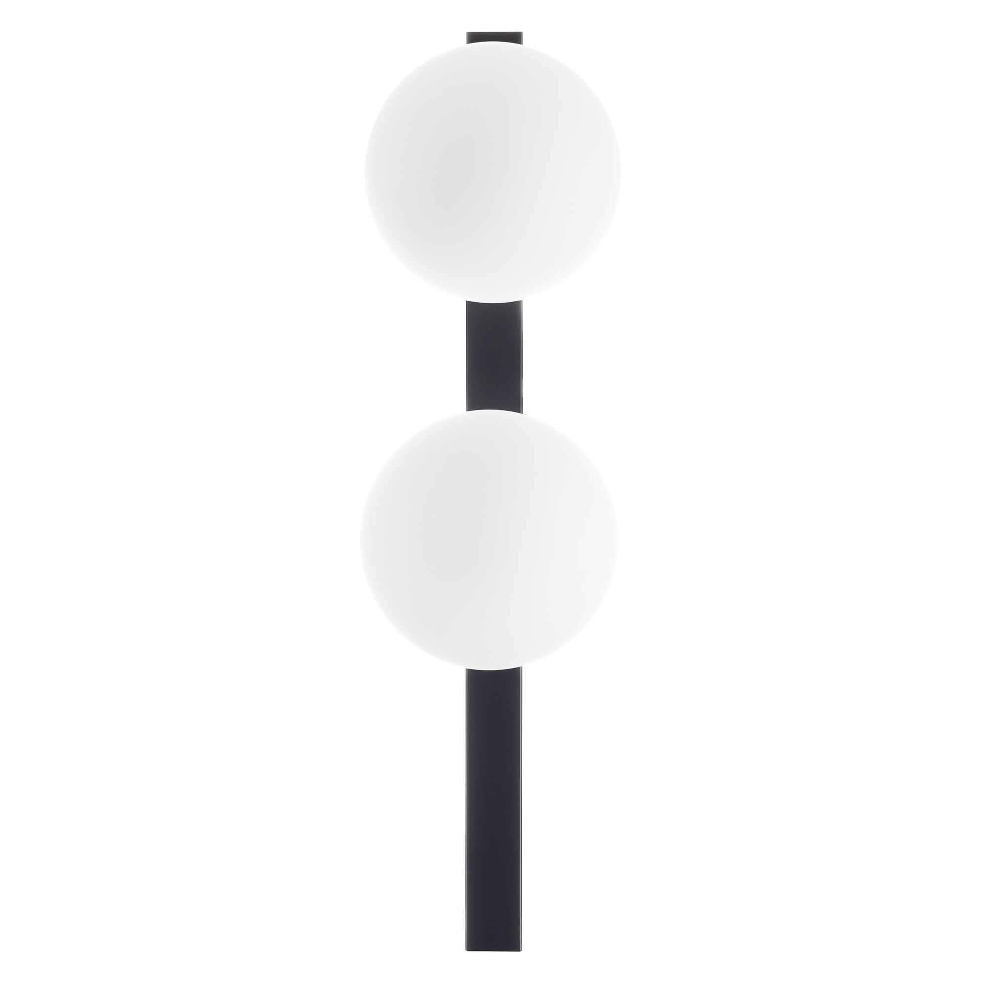 Перед вами современный изящный настенный светильник Citilux GLOB CL209421. Его утонченная металлическая стойка выполнена в стильном чёрном матовом цвете, а два стеклянных матовых плафона в форме шаров добавляют изделию легкости и воздушности.