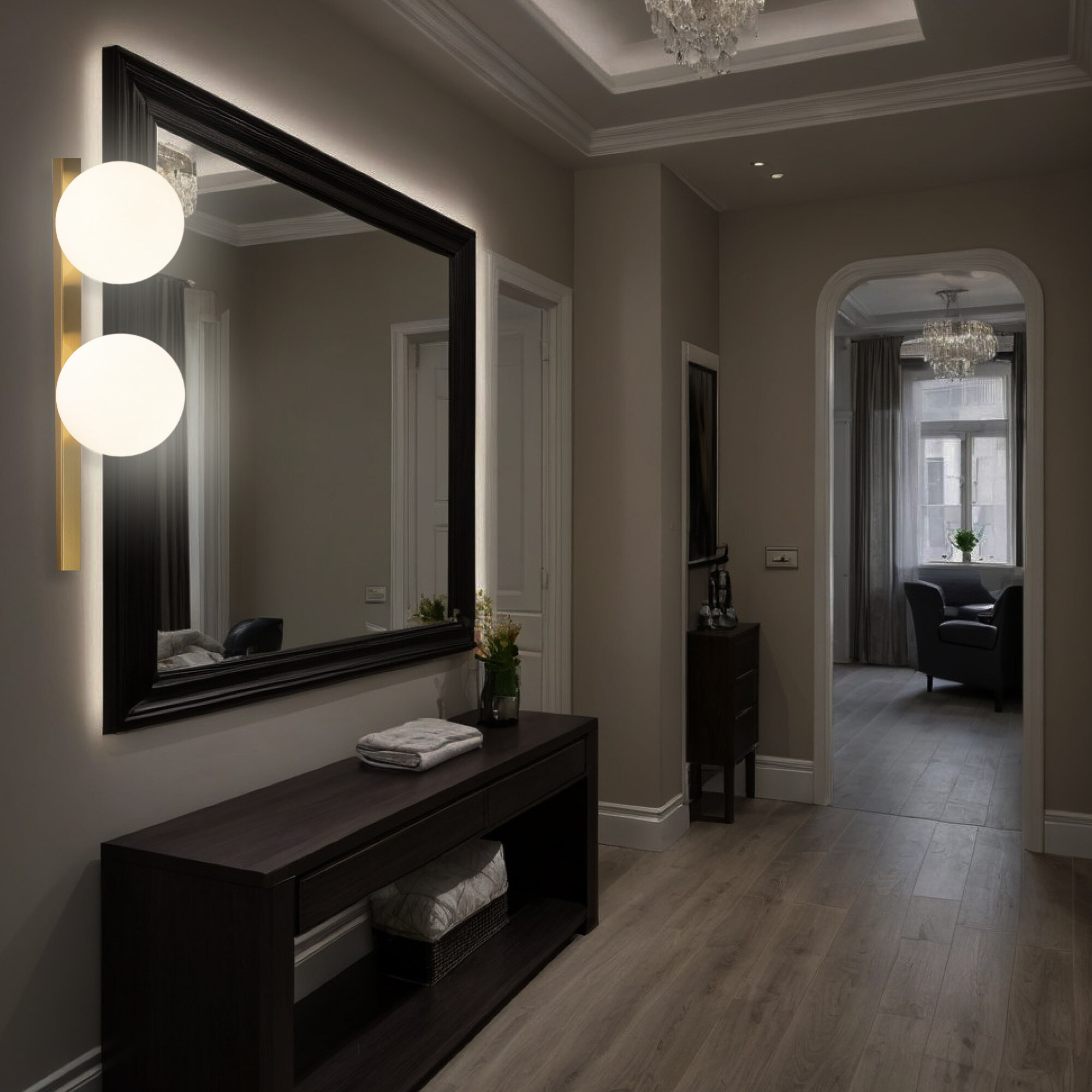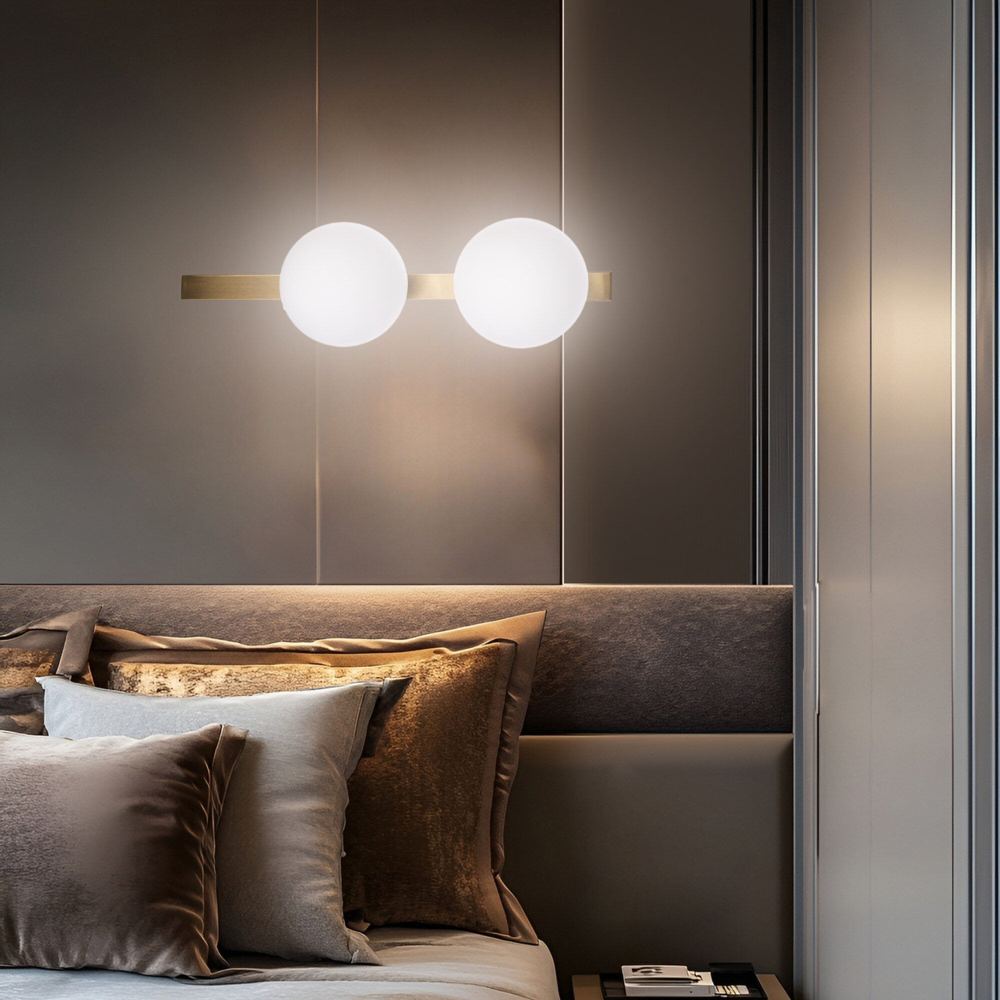 Перед вами современный изящный настенный светильник Citilux GLOB CL209423. Его утонченная металлическая стойка выполнена в благородном бронзовом цвете, а два стеклянных матовых плафона в форме шаров добавляют изделию легкости и воздушности.