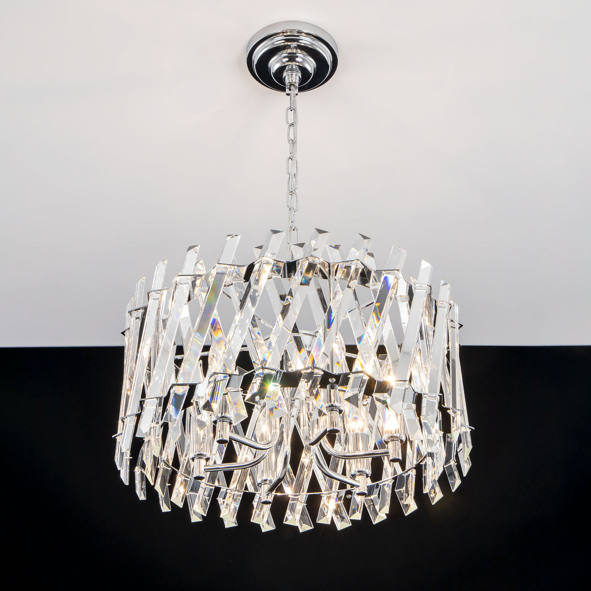 Хрустальная люстра Citilux Ингвар CL334261 выполнена в популярном стиле современной классики. Корпус светильника металлический, цвет хром. Люстра шестирожковая с хрустальным абажуром цилиндрической формы. Хрустальные элементы крупные, кристально прозрачные с современной огранкой.