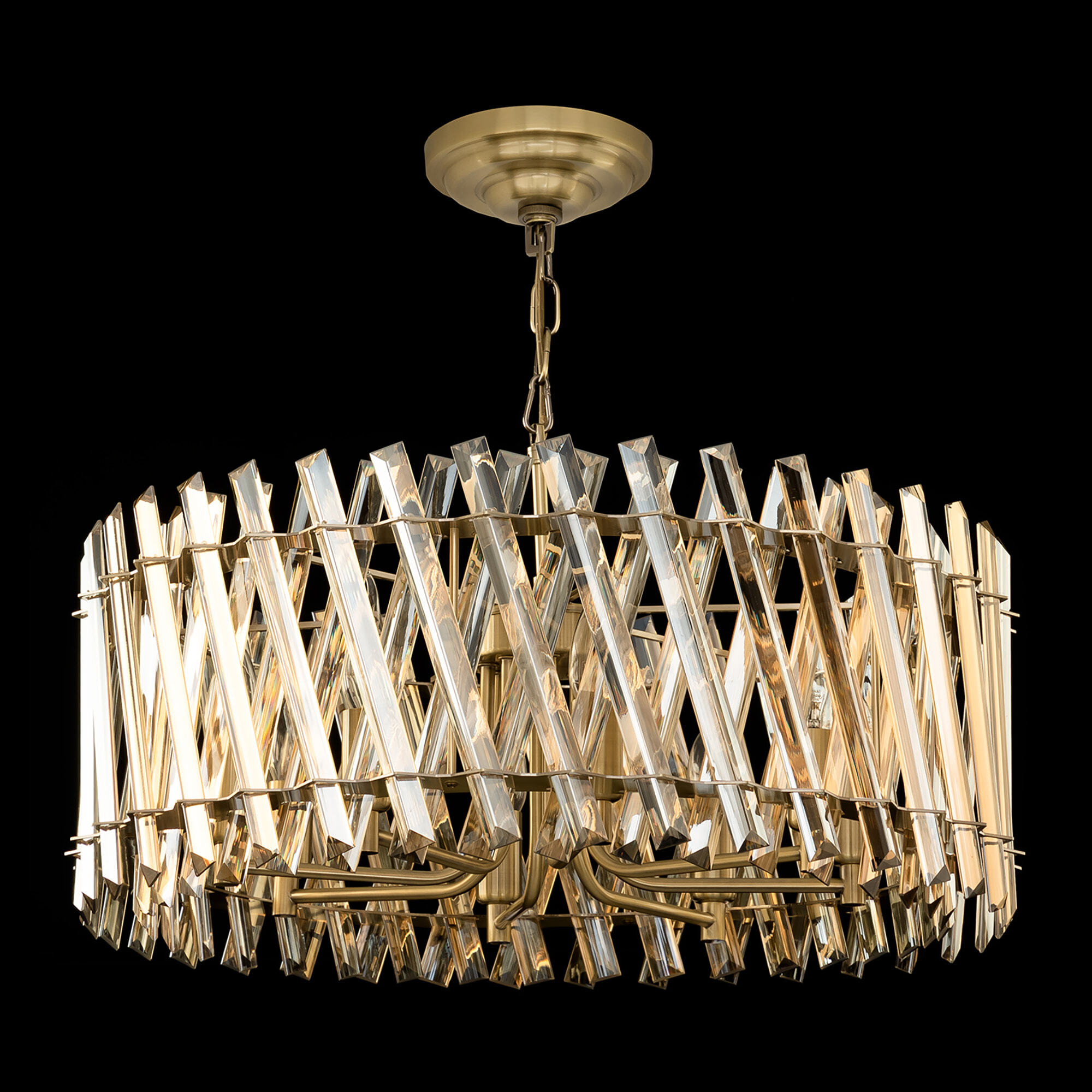 Хрустальная люстра Citilux Ингвар CL334293 выполнена в популярном стиле современной классики. Корпус светильника металлический, бронзового цвета. Люстра десятирожковая, с большим хрустальным абажуром цилиндрической формы. Хрустальные элементы крупные, кристально прозрачные с современной огранкой.