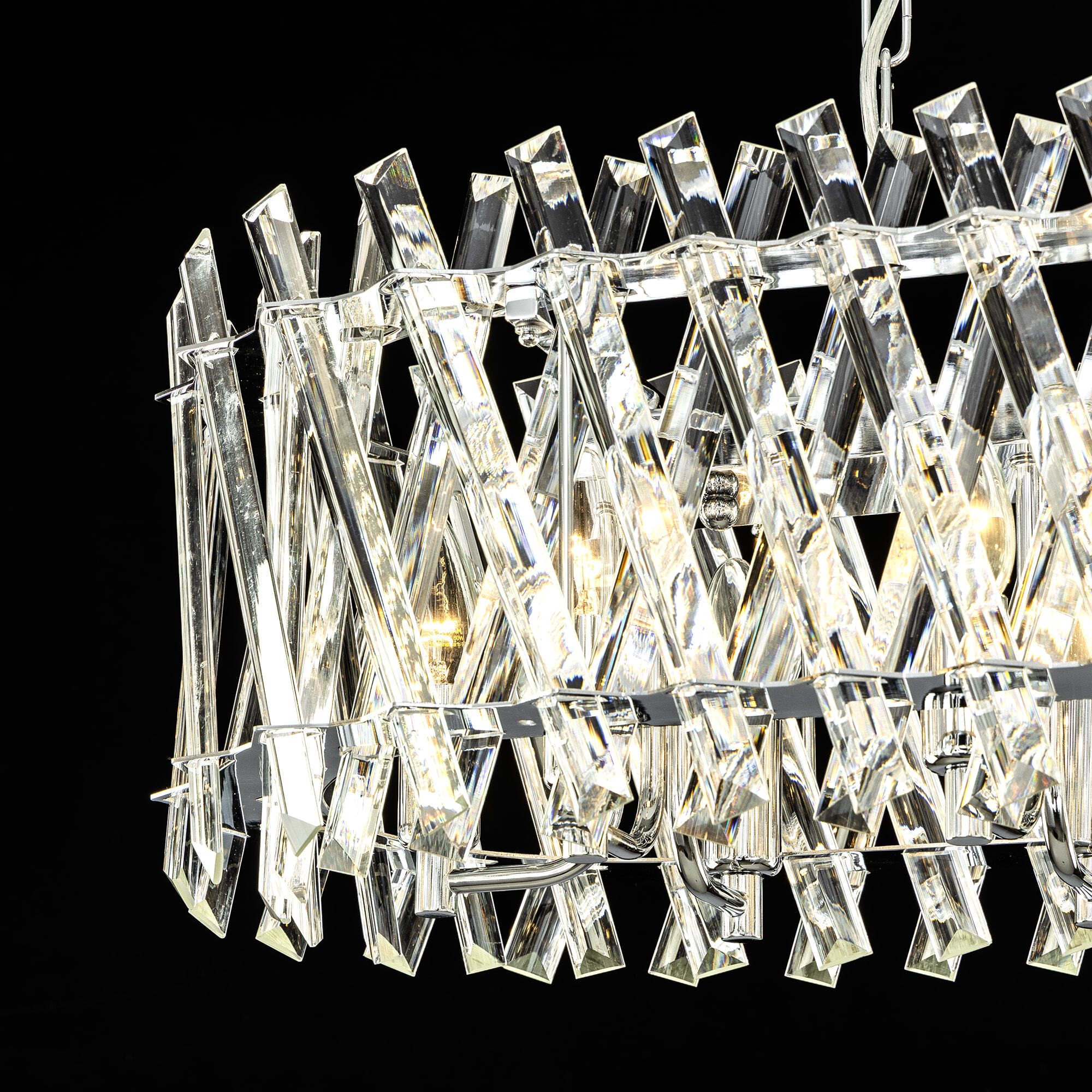 Хрустальная люстра Citilux Ингвар CL334301 выполнена в популярном стиле современной классики. Корпус светильника металлический, цвет хром. Люстра десятирожковая, с большим хрустальным абажуром овальной формы. Хрустальные элементы крупные, кристально прозрачные с современной огранкой.