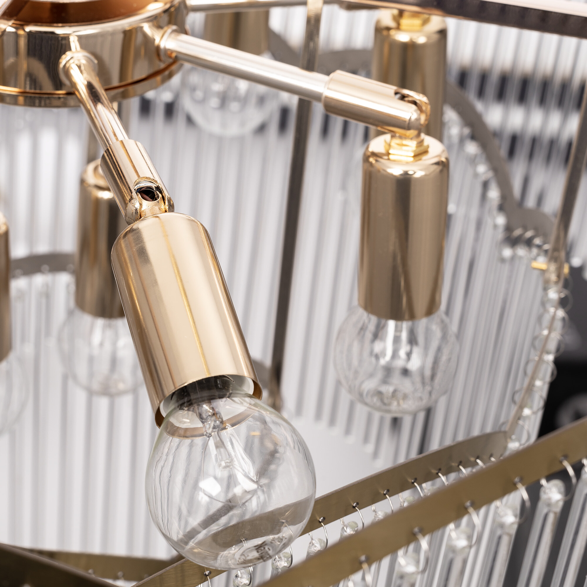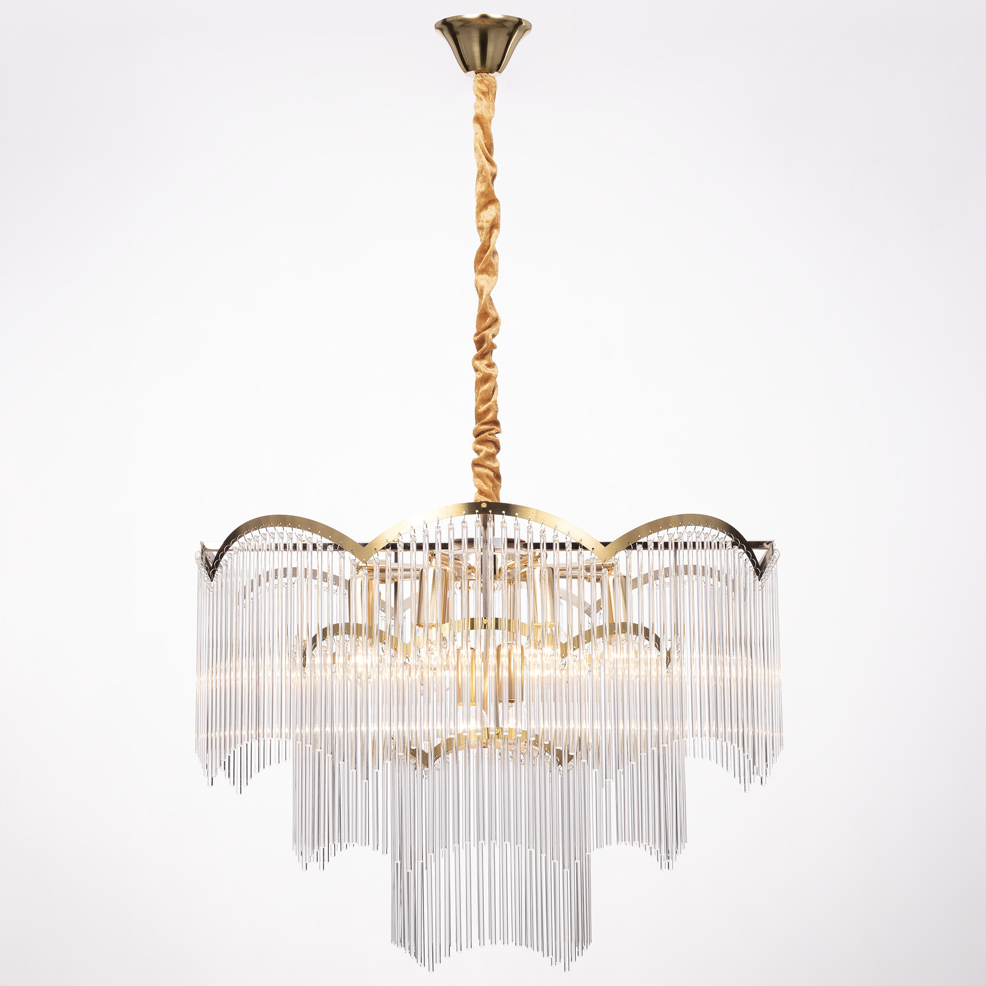 Подвесная люстра Citilux Jane CL304163 идеальное дополнение для любого классического интерьера. Металлический корпус благородного золотистого цвета и прозрачные стеклянные подвесные элементы в виде палочек формируют изящный и элегантный образ модели.