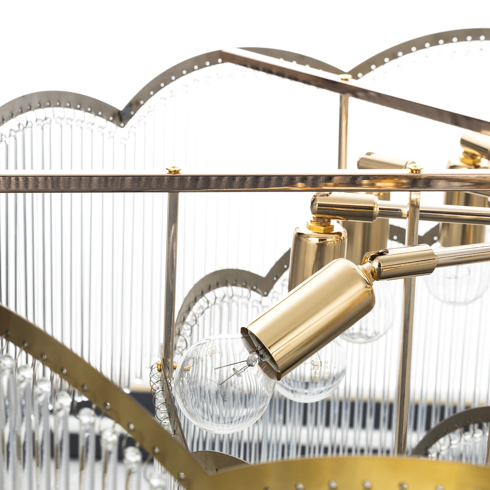 В изделии 16 ламп с цоколем Е14 максимальной мощностью для ламп накаливания 60Вт (в комплект не входят, приобретаются отдельно). Люстра подходит для основного освещения помещений как с высокими, так и с низкими потолками. Длина цепи регулируется при установке, тип крепления – крючок.