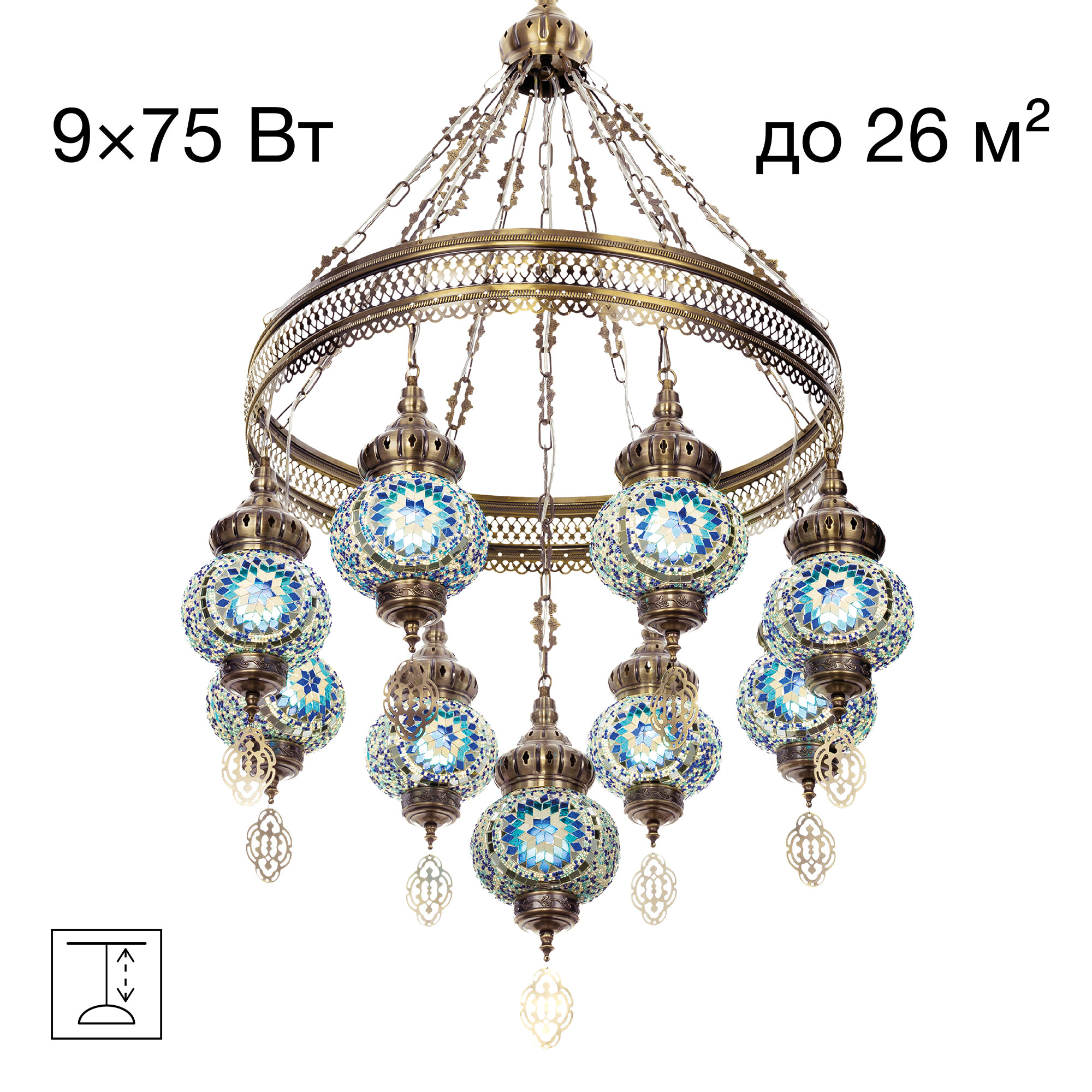 В изделии используются 9 ламп с цоколем Е27, максимальной мощностью для ламп накаливания 75Вт. Универсальное крепление на крючок делает люстру идеальной для любых типов потолков, включая натяжные.