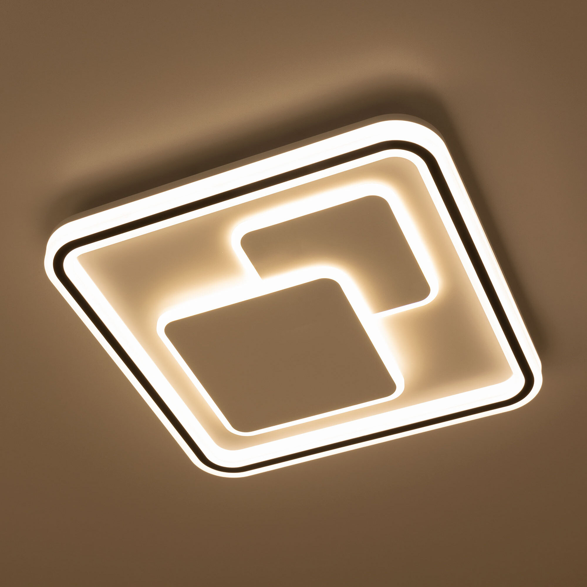 Светодиодная потолочная люстра Citilux Квест CL739180E с RGB подсветкой и пультом дистанционного управления. Основание белого цвета, со стильной чёрной окантовкой. Три светодиодных модуля плафона, формирующих внешний вид люстры, имеют квадратную форму. Светильником можно управлять с помощью пульта дистанционного управления и настенным выключателем. Изделие оснащено мощными светодиодами, с возможностью плавной регулировки яркости от 10% до 100%. Цветовая температура регулируется в диапазоне от 3000К до 5500К, позволяя настроить любые оттенки теплого, нейтрального или холодного света, без мерцания и пульсаций. Есть настраиваемые режимы памяти и таймер выключения. RGB подсветка основания включается как отдельно, так и совместно с основным светом. Модель подходит для всех типов потолков, в том числе натяжных, тип крепления – планка. Пульт ДУ в комплекте, тип батареек ААА (батарейками не комплектуется).Citilux CL739 QUEST: Вдохновение в каждом луче.