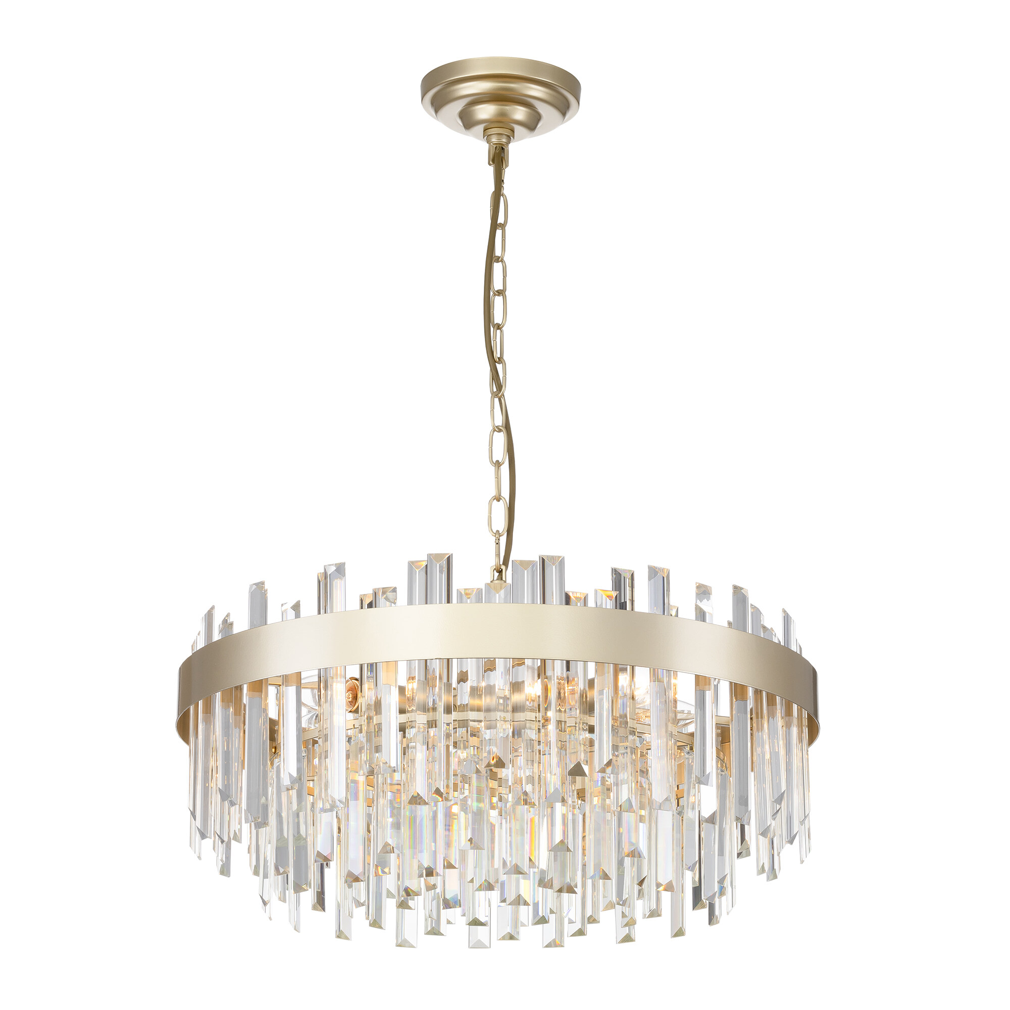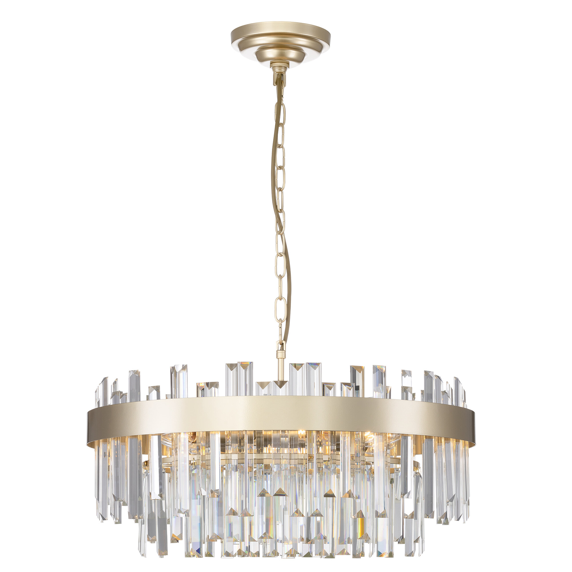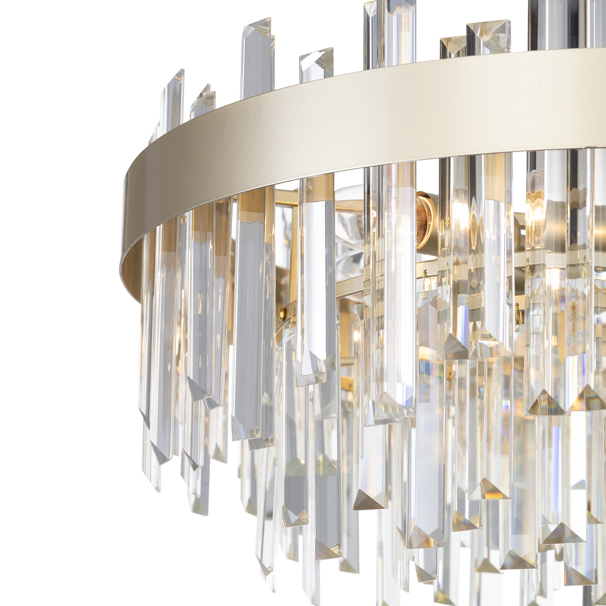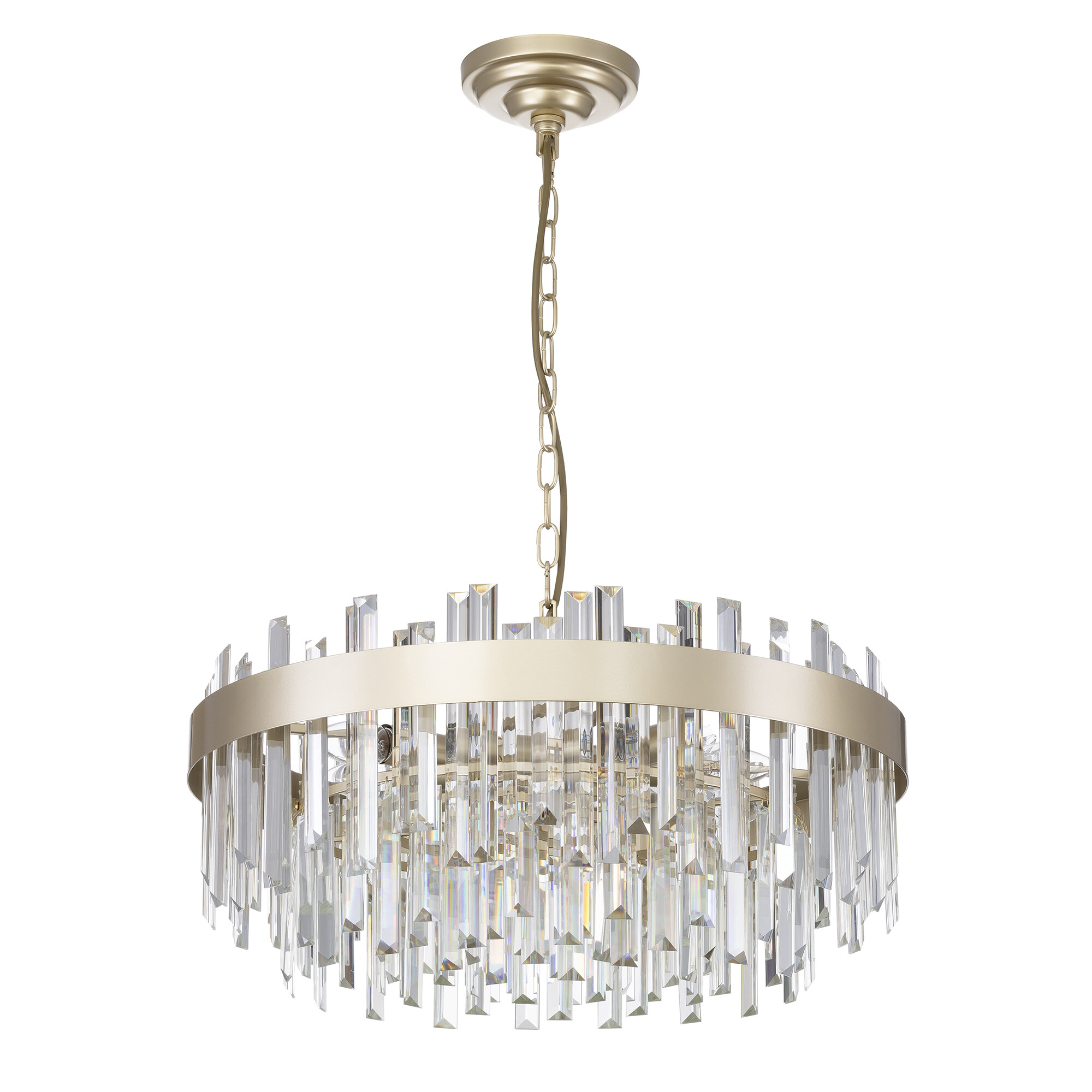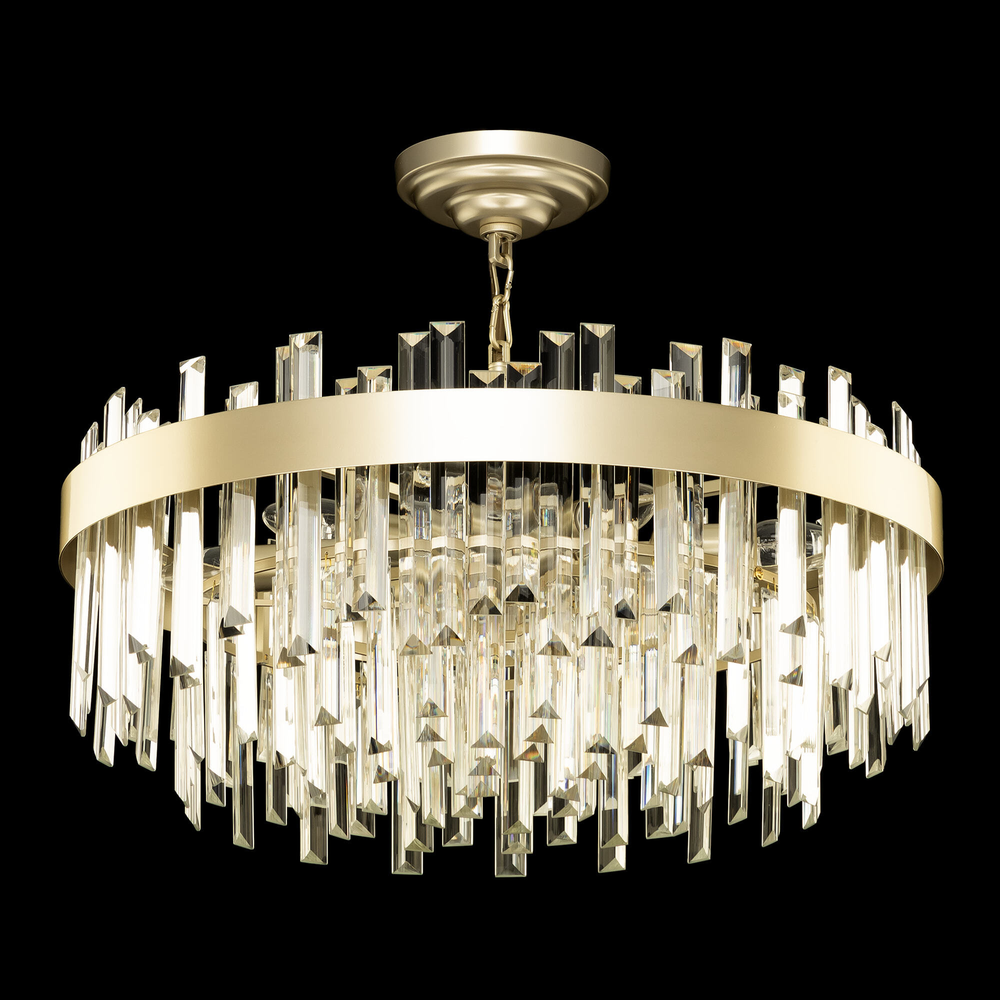 Хрустальная люстра Citilux Лаура CL301282 выполнена в стиле современной классики. Корпус светильника металлический, цвет шампань. Хрустальные подвески кристально прозрачные с модной огранкой, расположены в несколько рядов ниспадающим каскадом.