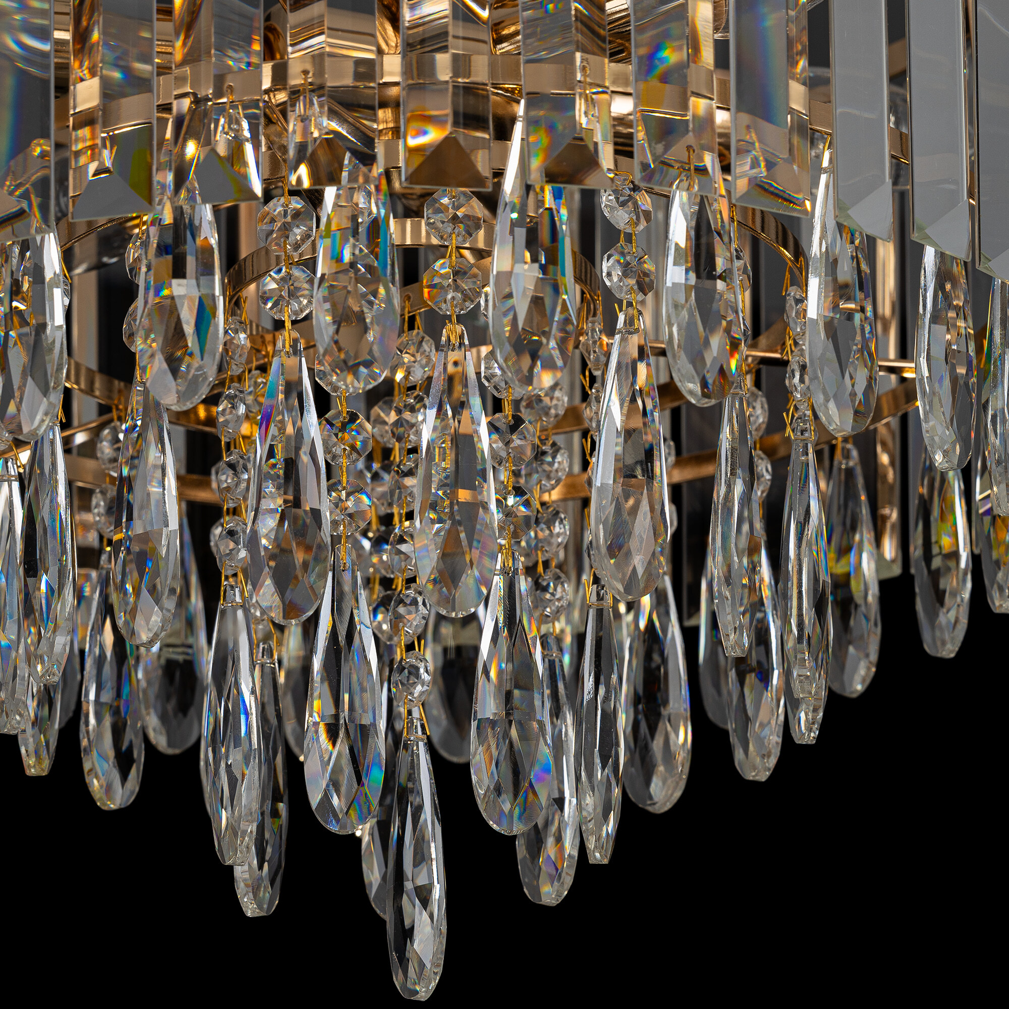 Окунитесь в мир изысканного света с каскадной хрустальной люстрой Citilux LEONNA CL320162 – ярким воплощением элегантности и безупречного вкуса. Благородный золотистый металл гармонично сочетается с прозрачными хрустальными подвесками, играющими в лучах света. Внешние прямоугольные элементы с огранкой «призма» и внутренние каплевидные подвески создают эффект мерцающего водопада, наполняя пространство мягким теплым сиянием и атмосферой уюта.