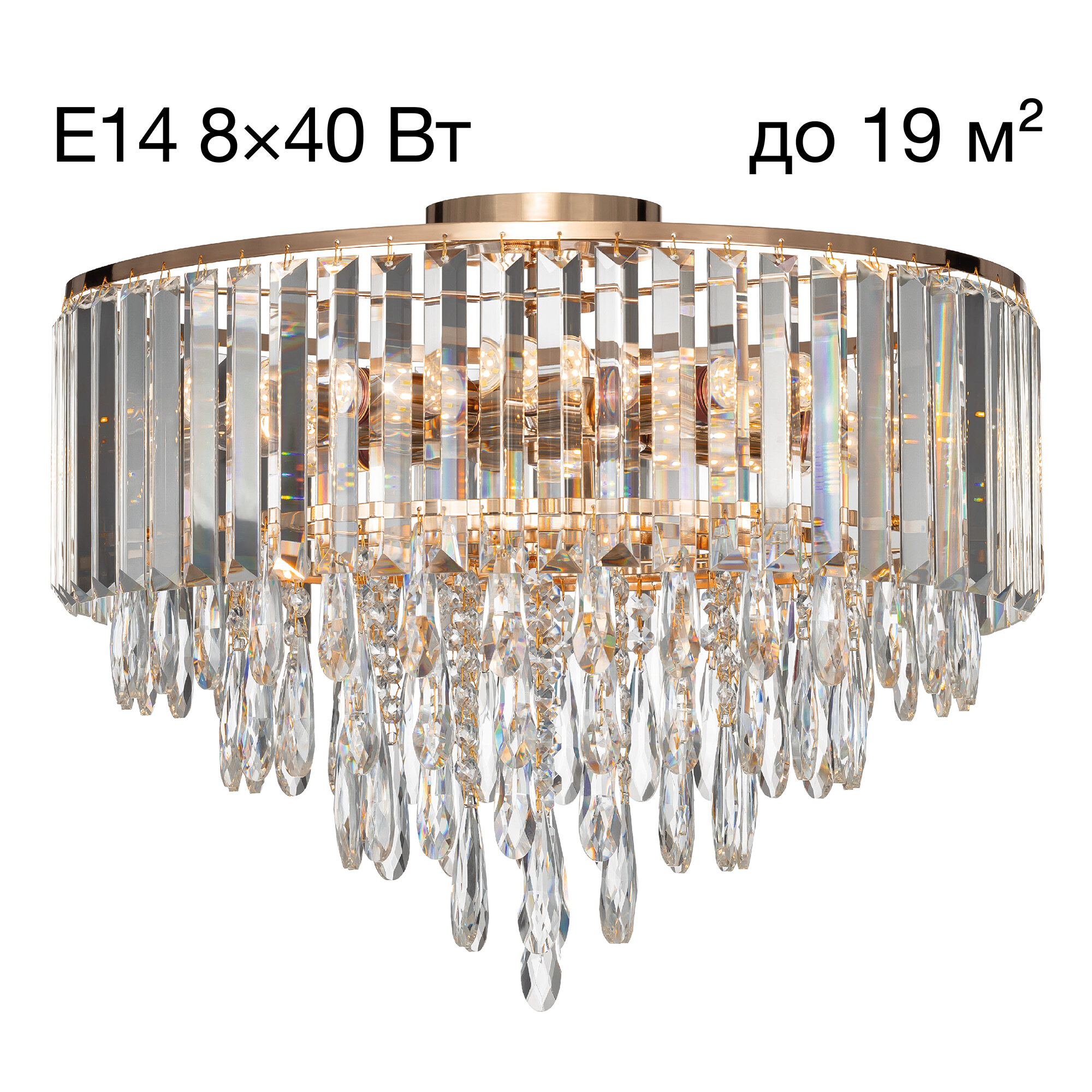 - 8 ламп с цоколем E14 (до 40Вт, лампы приобретаются отдельно)