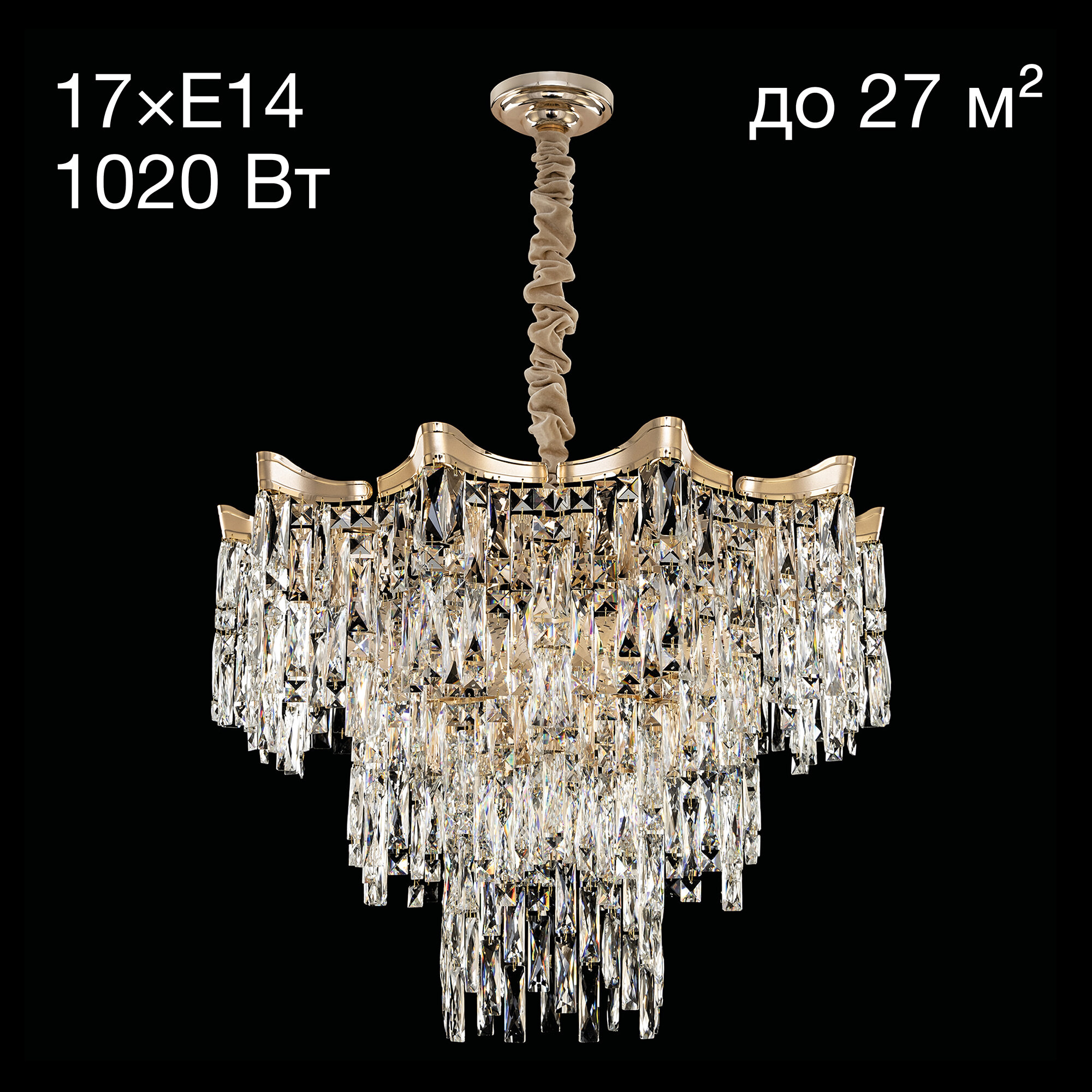 Хрустальная люстра Citilux Моника CL308282 восхищает своей красотой. Шикарные подвески изготовлены из кристально прозрачного хрусталя с модной огранкой. Корпус металлический, благородного золотого цвета. В изделии используется 17 ламп с цоколем Е14 максимальной мощностью для ламп накаливания 60Вт (в комплект не входит, приобретается отдельно). Диаметр светильника 70см, высота регулируется от 70см до 1,66м. Подходит для всех типов потолков, в том числе натяжных, тип крепления – планка. Великолепная хрустальная люстра Citilux Моника CL308282 потрясающе выглядит в классических и современных интерьерах, и бесспорно станет украшением гостиной, столовой, зала или кабинета.Citilux CL308 MONIKA: Вдохновение в каждом луче.