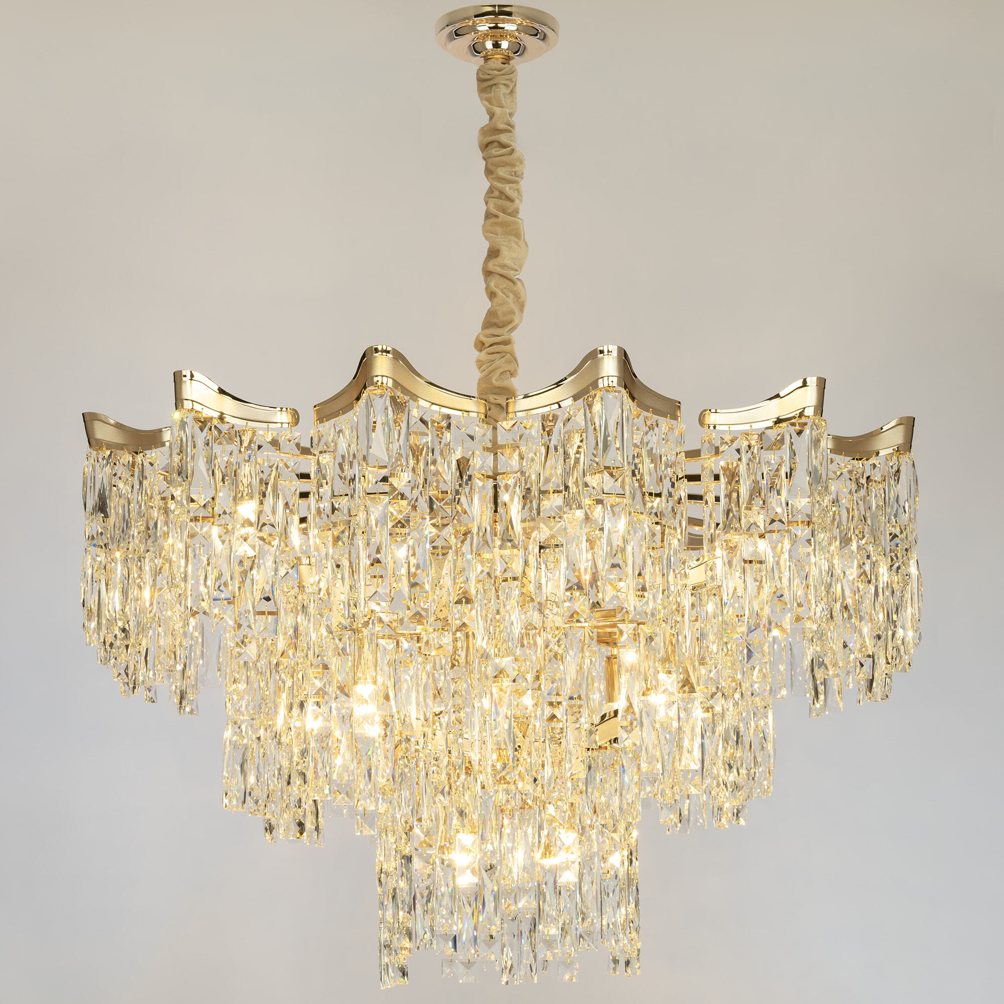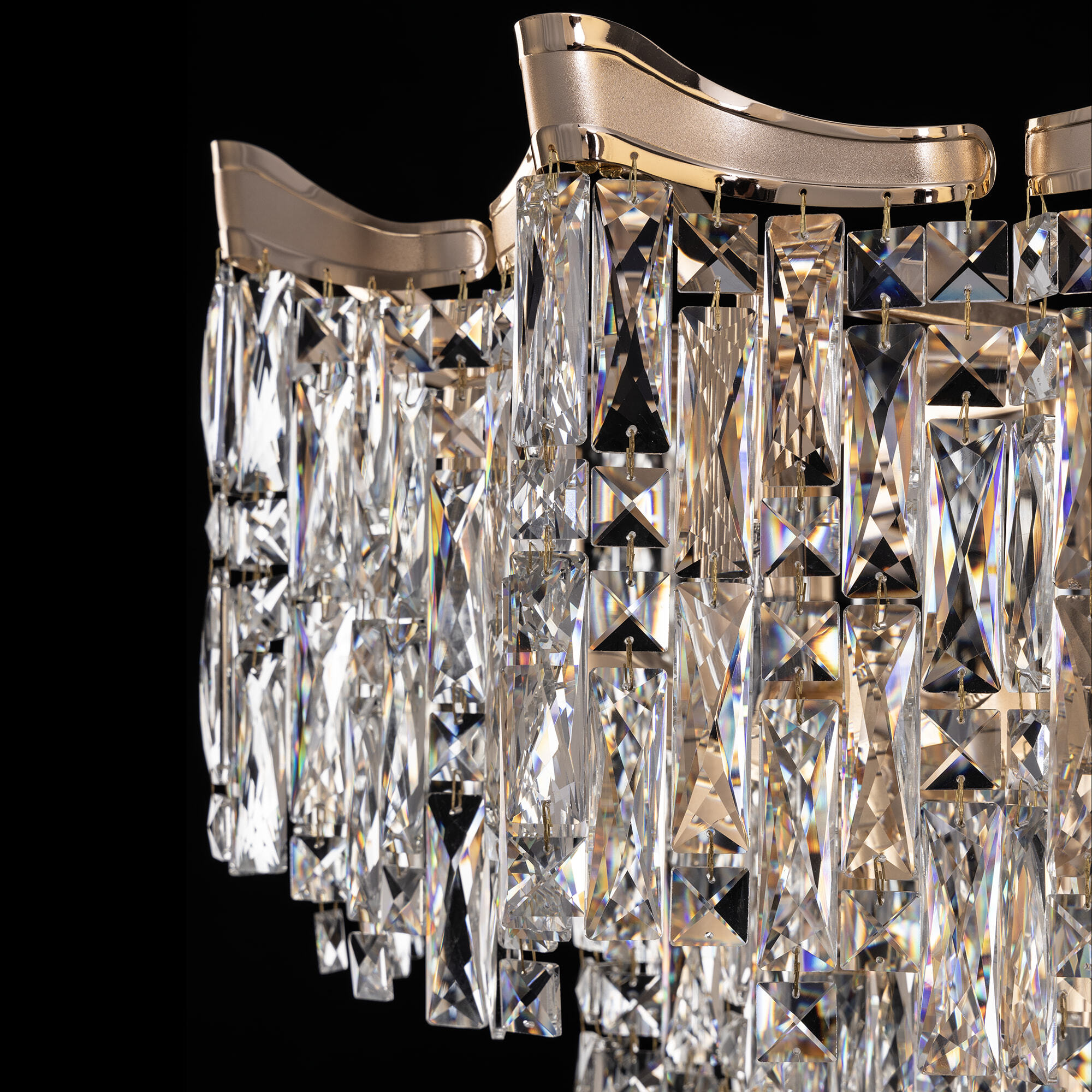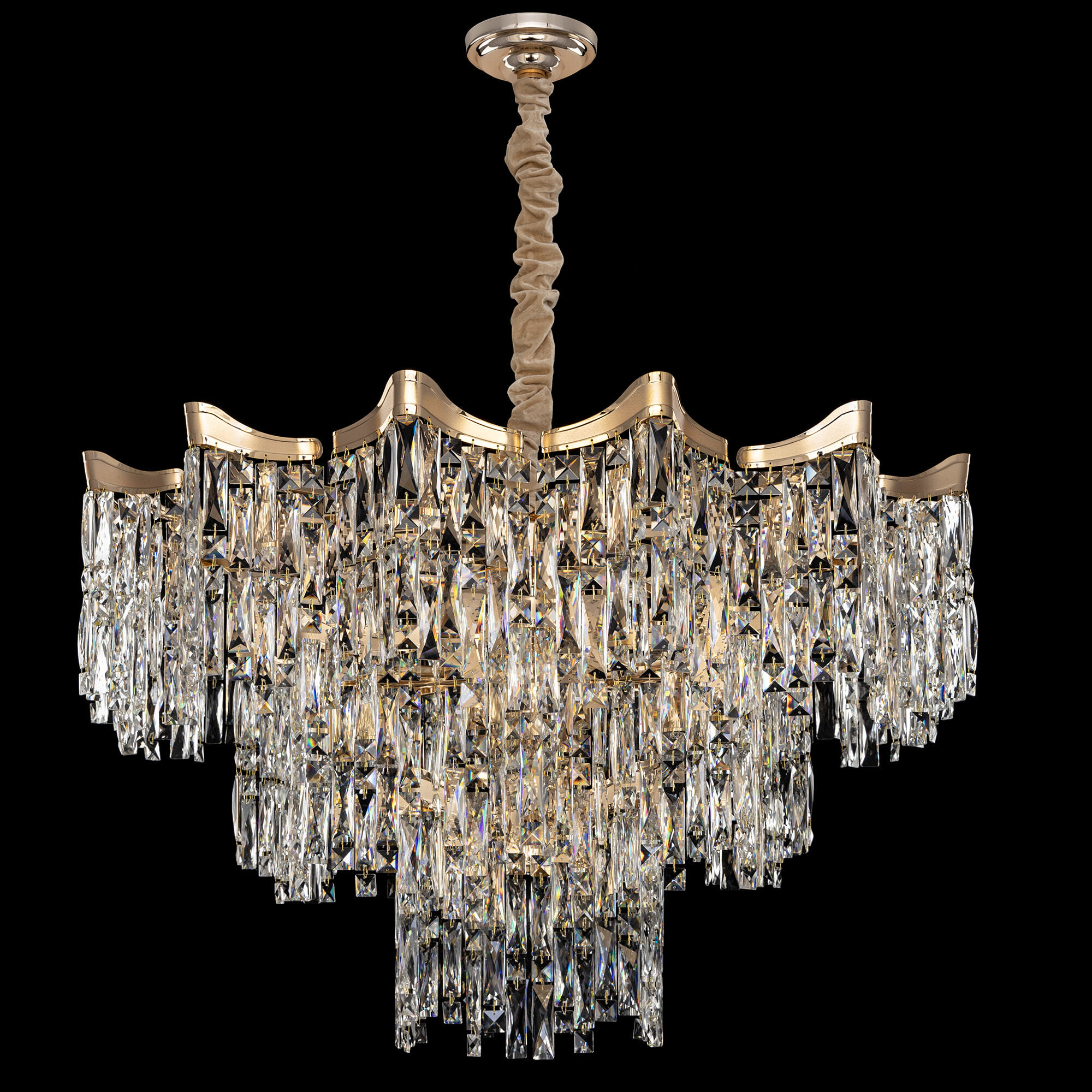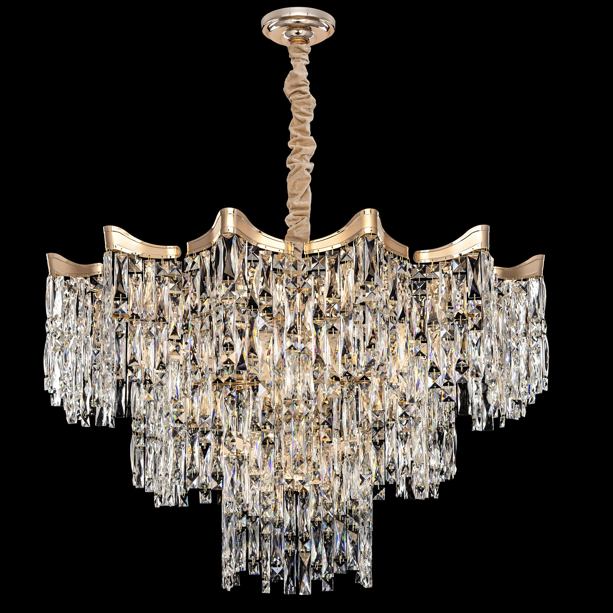 Хрустальная люстра Citilux Моника CL308292 восхищает своей красотой. Шикарные подвески изготовлены из кристально прозрачного хрусталя с модной огранкой. Корпус металлический, благородного золотого цвета. В изделии используется 25 ламп с цоколем Е14 максимальной мощностью для ламп накаливания 60Вт (в комплект не входит, приобретается отдельно). Диаметр светильника 99см, высота регулируется от 70см до 1,66м. Подходит для всех типов потолков, в том числе натяжных, тип крепления – планка. Великолепная хрустальная люстра Citilux Моника CL308292 потрясающе выглядит в классических и современных интерьерах, и бесспорно станет украшением гостиной, столовой, зала или кабинета.Citilux CL308 MONIKA: Вдохновение в каждом луче.