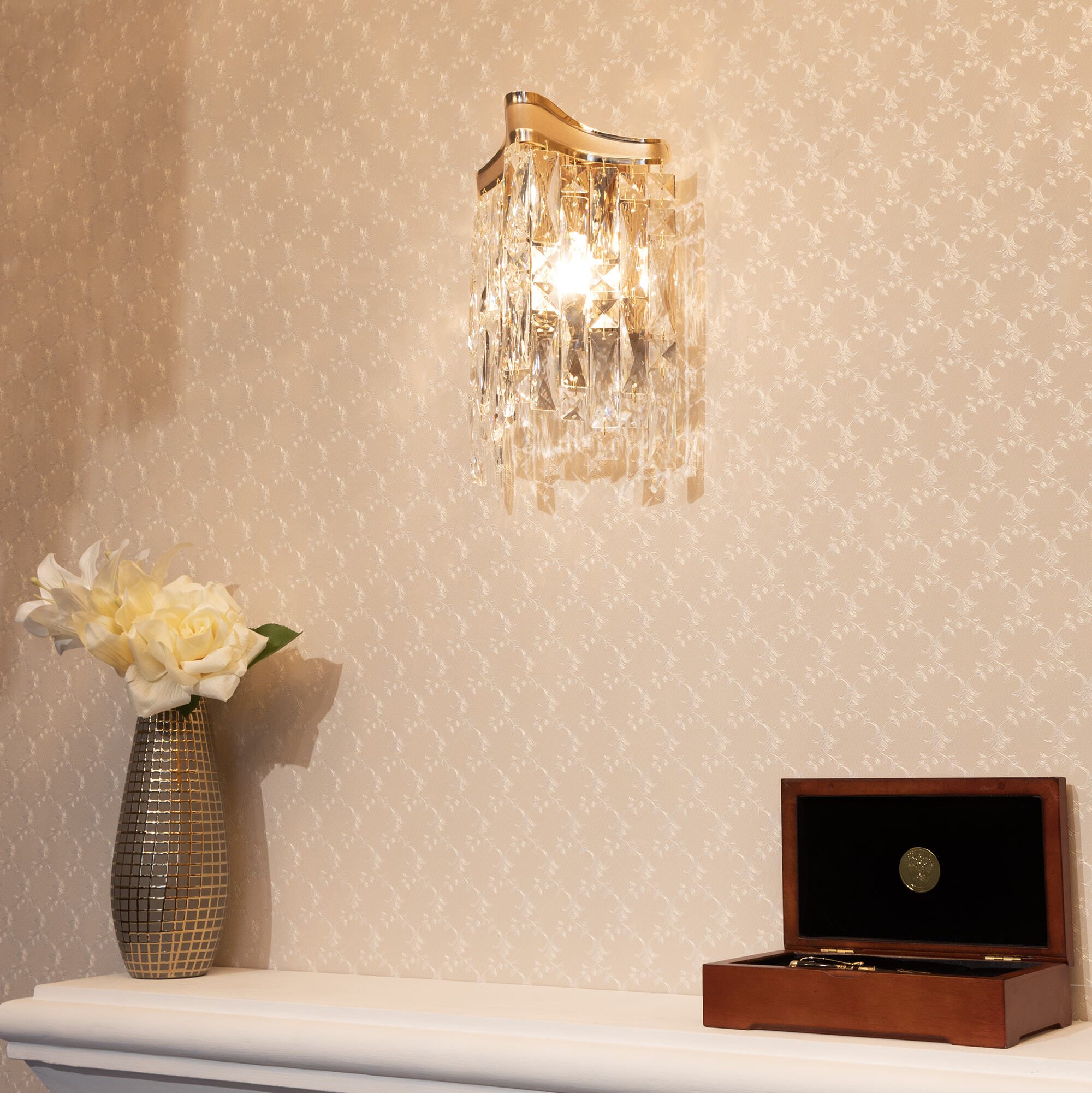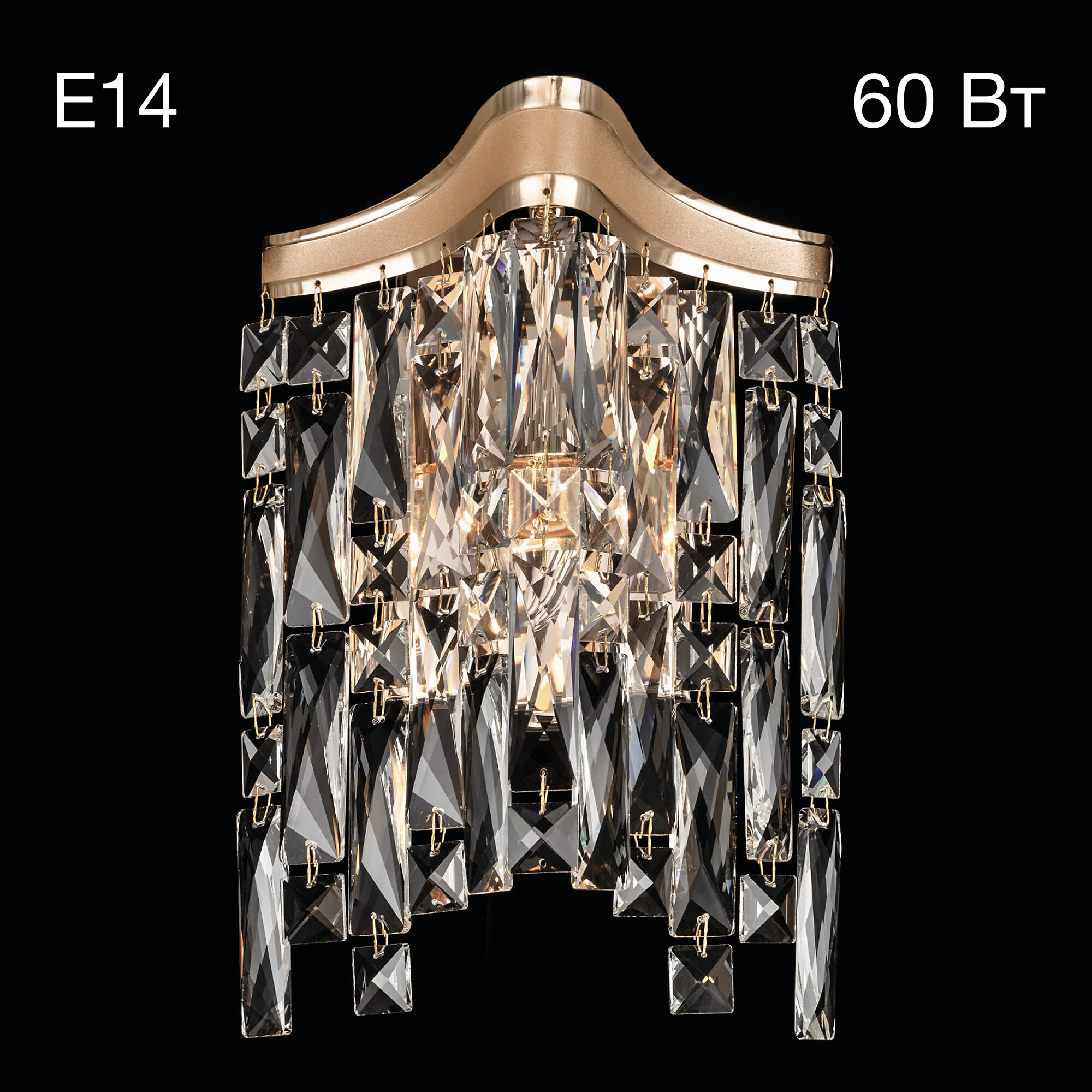 Хрустальный настенный светильник Citilux Моника CL308312 восхищает своей красотой. Шикарные подвески изготовлены из кристально прозрачного хрусталя с модной огранкой. Корпус металлический, благородного золотого цвета. В изделии используется 1 лампа с цоколем Е14 максимальной мощностью для ламп накаливания 60Вт (в комплект не входит, приобретается отдельно). Высота светильника 30см, ширина 20см, глубина 12см. Великолепное хрустальное бра Citilux Моника CL308312 потрясающе выглядит в классических и современных интерьерах, и бесспорно станет украшением гостиной, столовой, зала или кабинета.Citilux CL308 MONIKA: Вдохновение в каждом луче.