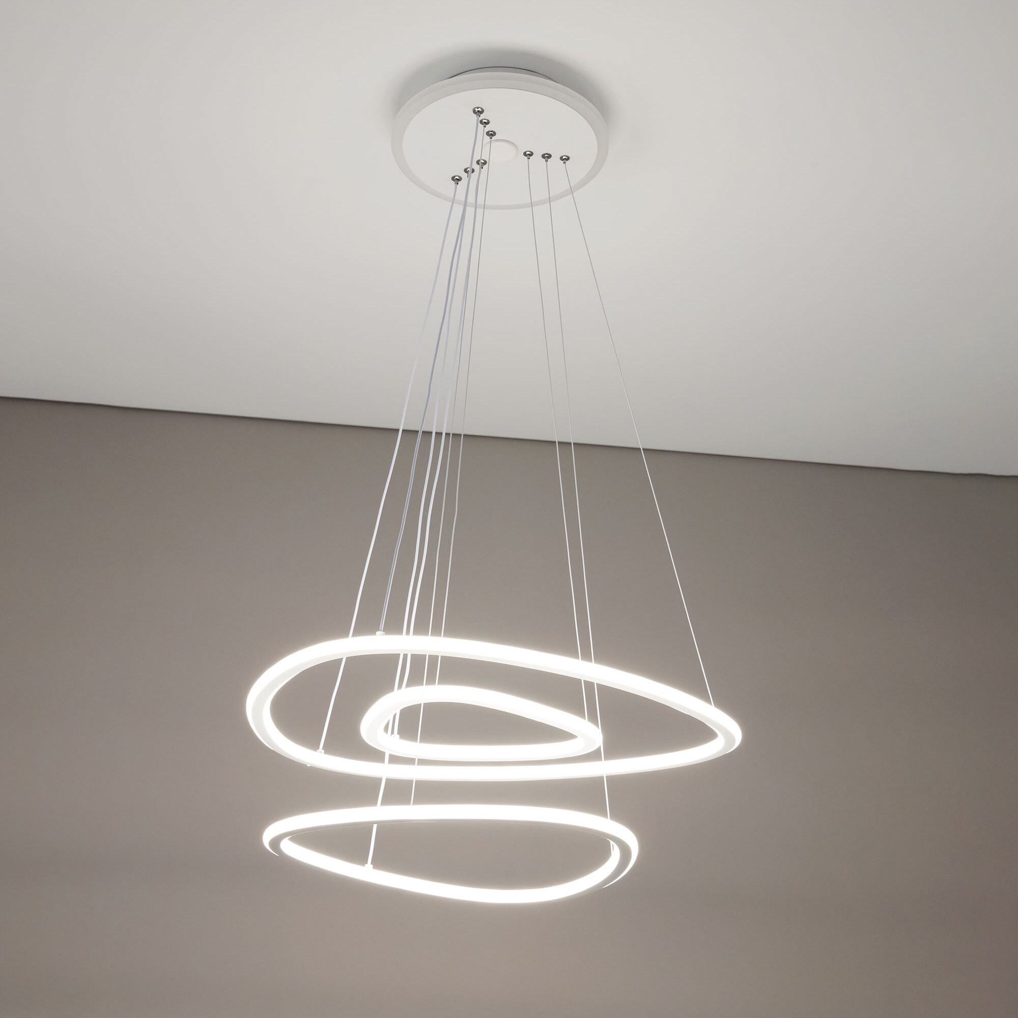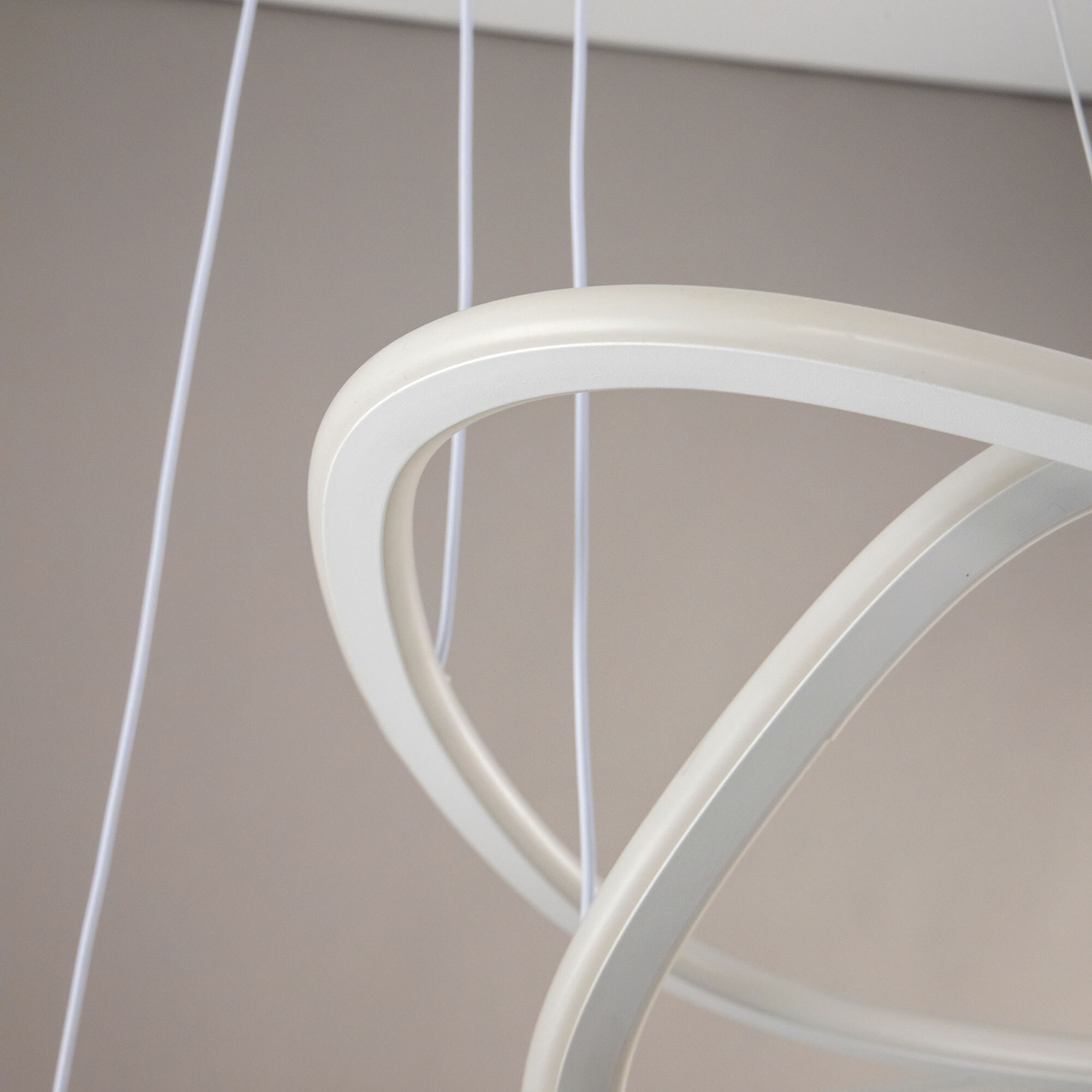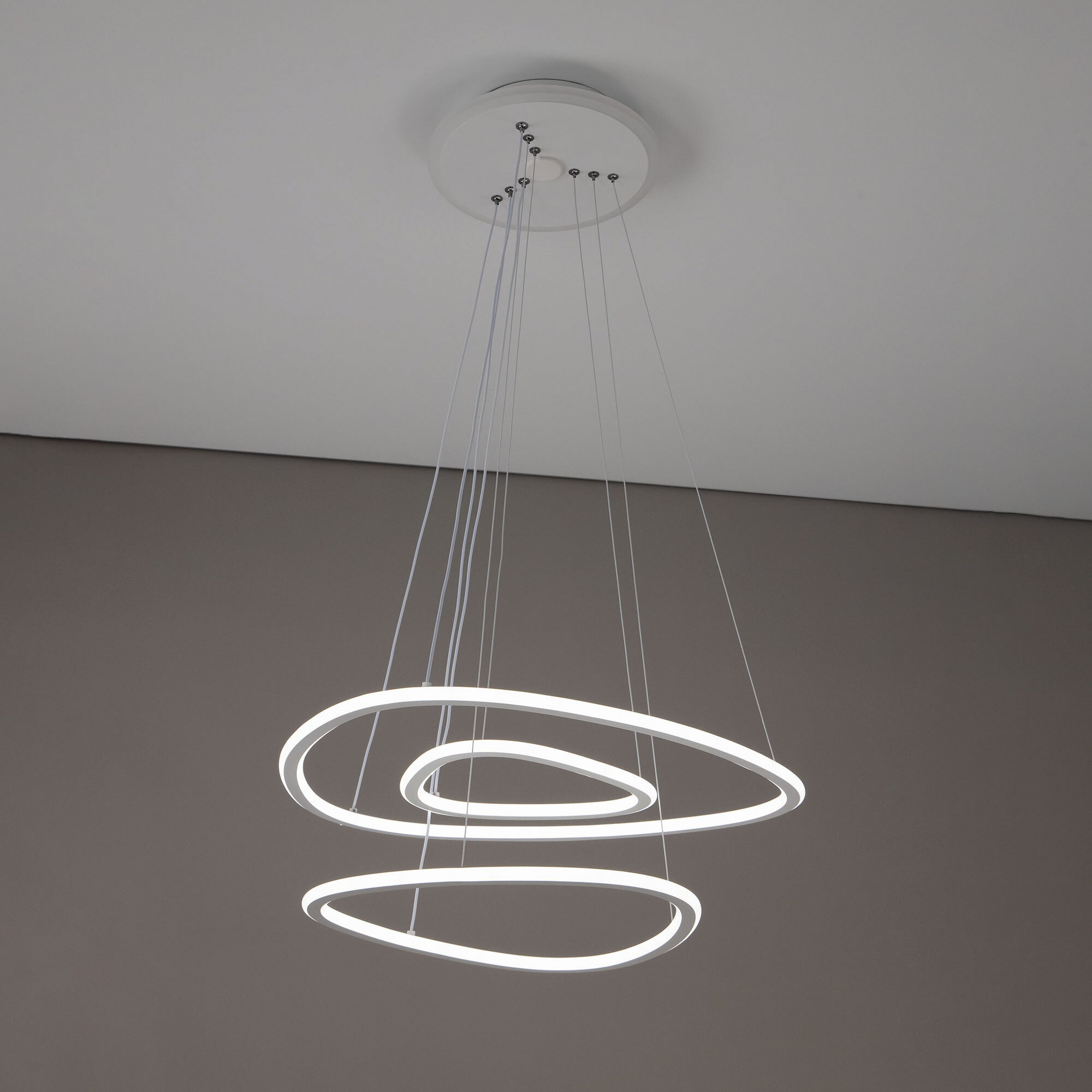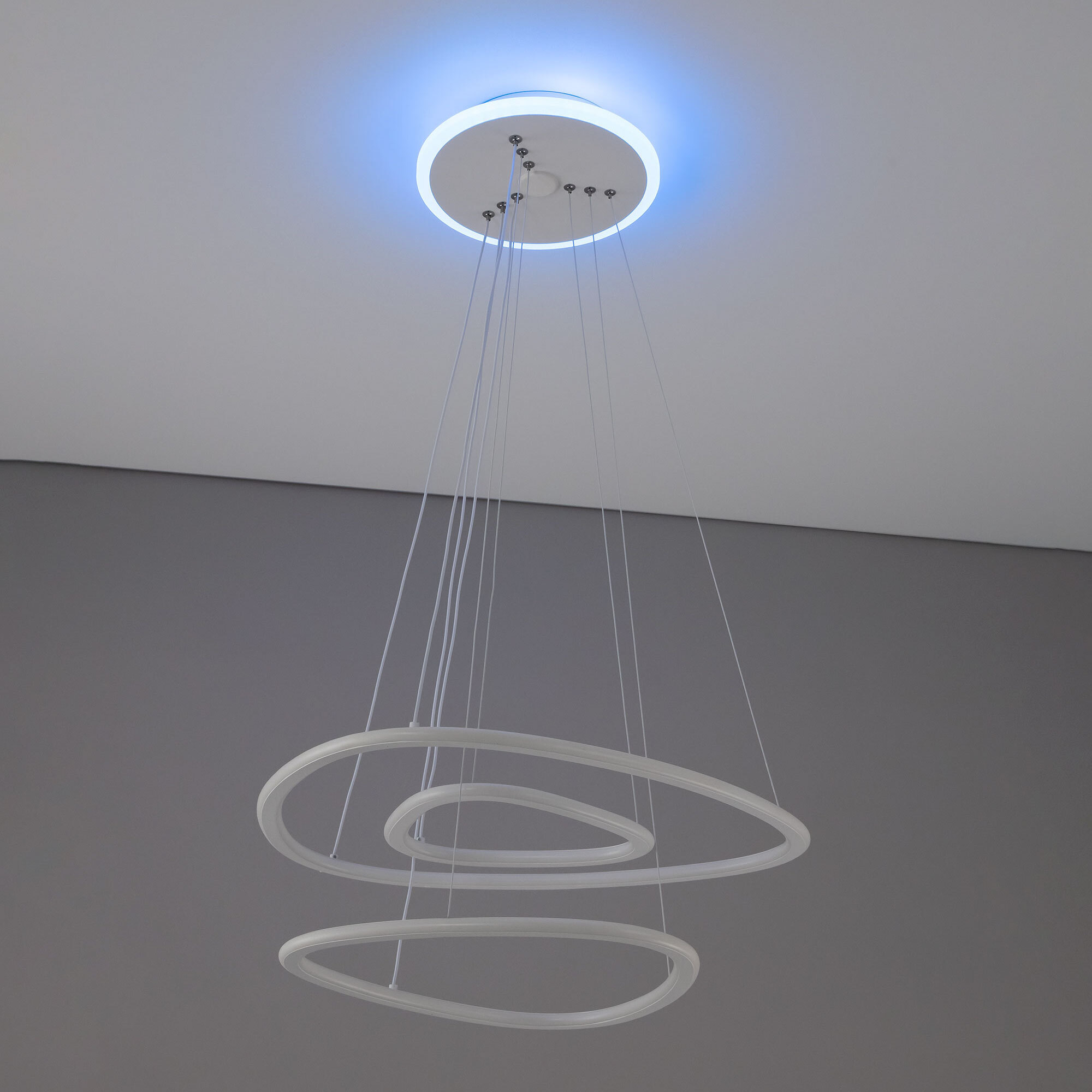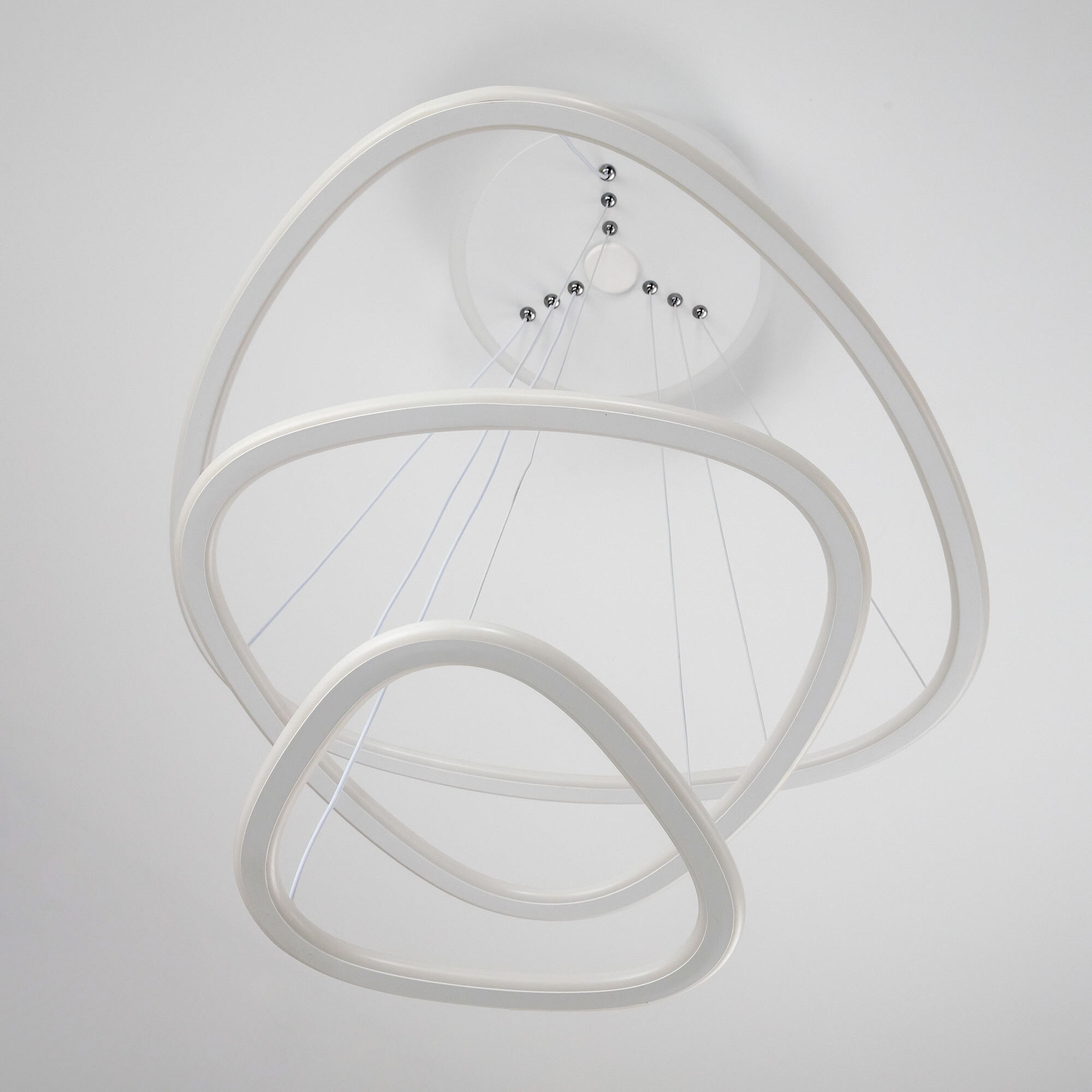 Подвесная светодиодная люстра Citilux Неон Смарт CL731A330E с голосовым управлением, входит в экосистему Citilux SMART. Светильником можно управлять: из приложения на смартфоне по Wi-Fi, при наличии интернета, с помощью голосовых помощников Алиса и Маруся, а также пультом дистанционного управления и настенным выключателем. Люстра на тросах, в форме каскада из трех подвесных колец, высоту и угол наклона каждого из которых можно изменить. Корпус изготовлен из алюминиевого сплава, окрашенного в белый цвет. Рассеиватель оптический полимер, цвет белый матовый. Крепление люстры подходит для всех типов потолков, в том числе натяжных. Тип крепления – планка. Модель оснащена мощными светодиодами, с возможностью плавной регулировки яркости от 10 до 100%. Цветовая температура регулируется в диапазоне от 3000К до 5500К, с возможностью настроить любые оттенки теплого, нейтрального и холодного света. В основании светильника установлена независимая цветная подсветка RGB. Мощность изделия 140Вт, световой поток 7500Лм, площадь освещения до 26м². Пульт ДУ в комплекте, тип батареек ААА (батарейками не комплектуется).Citilux CL731A NEON: Вдохновение в каждом луче.