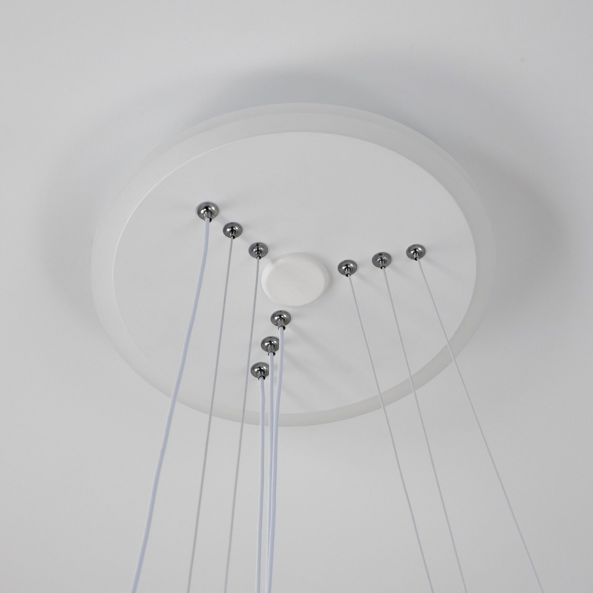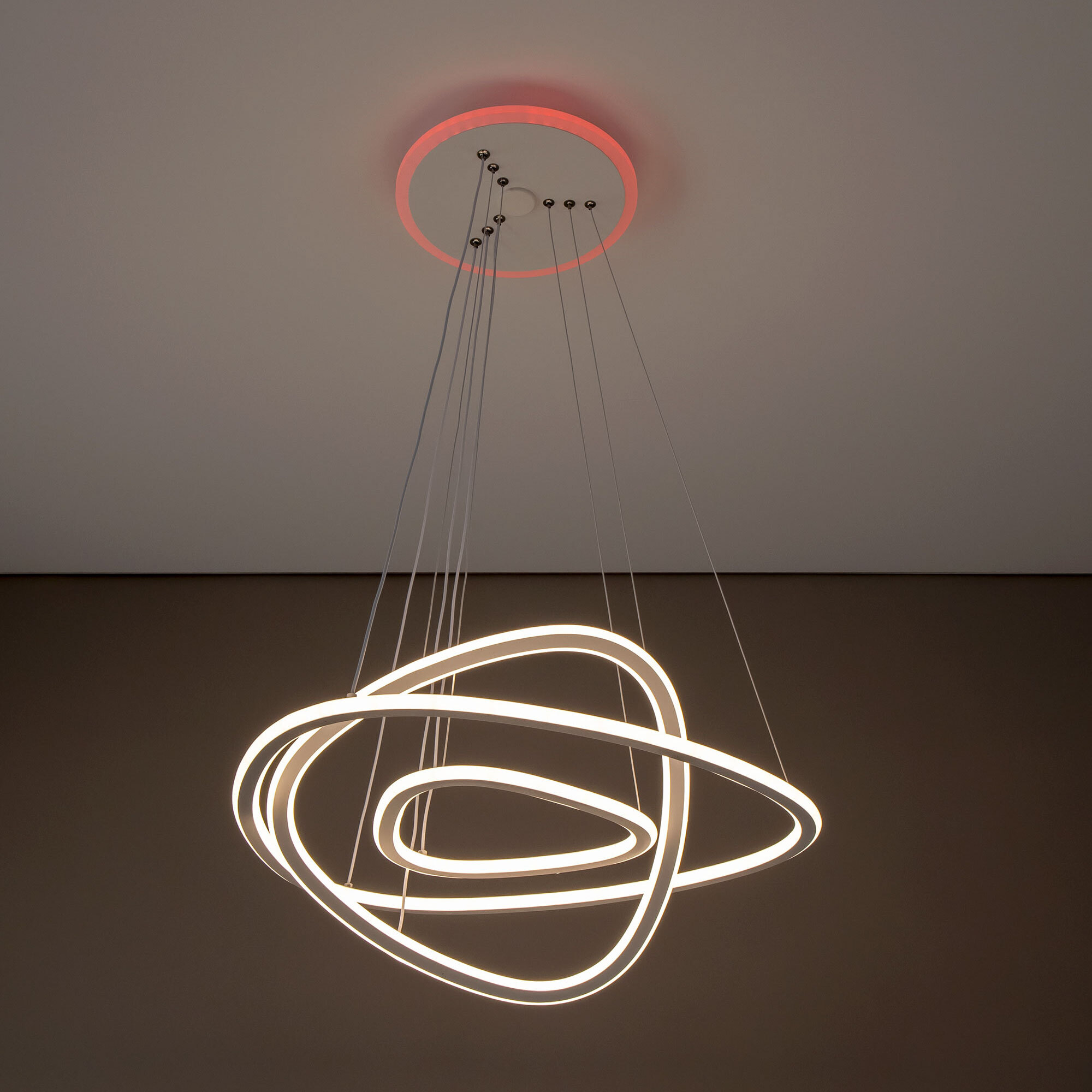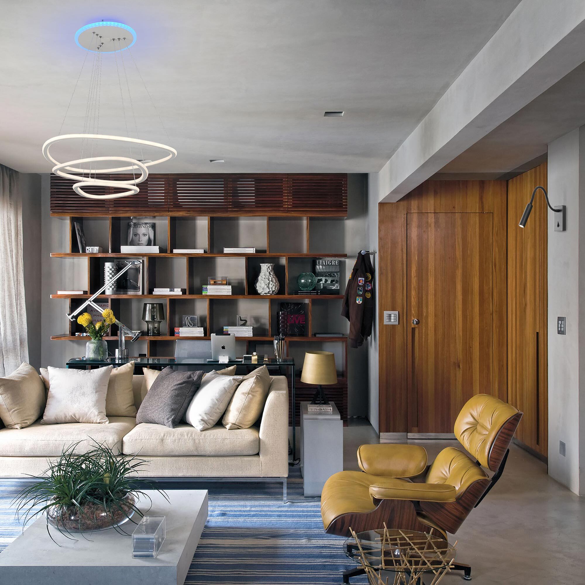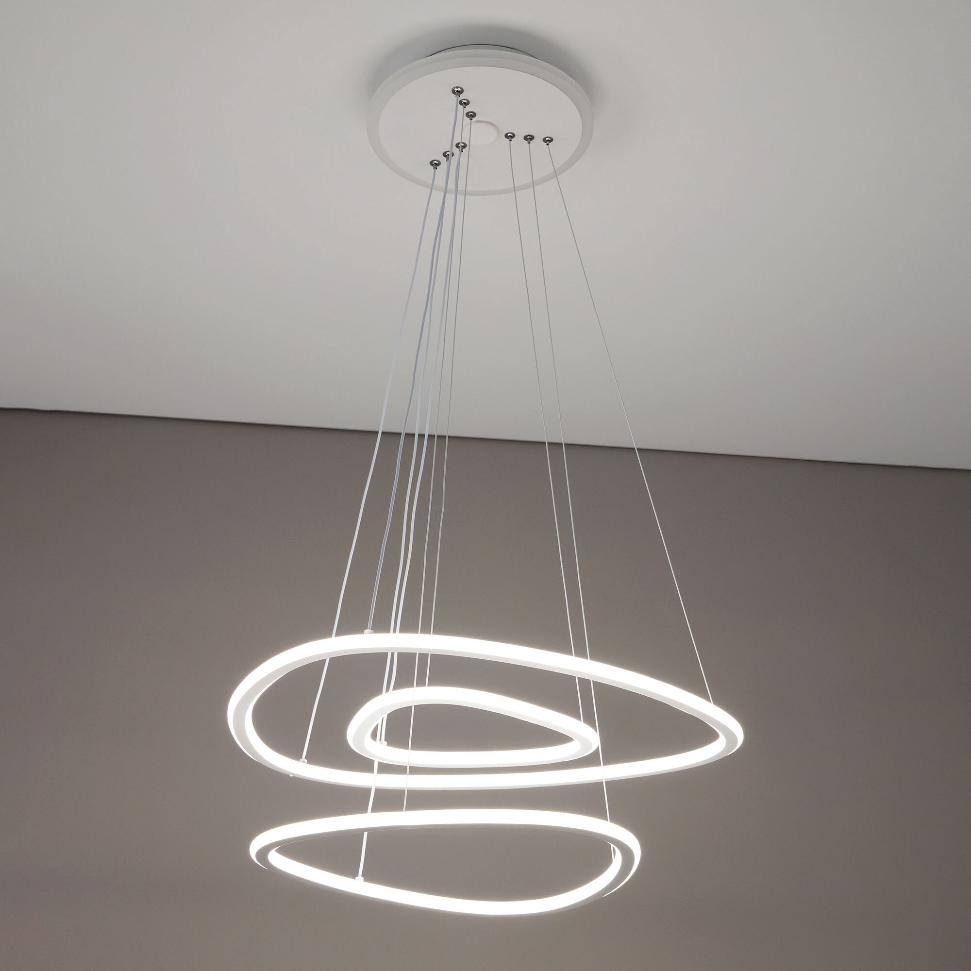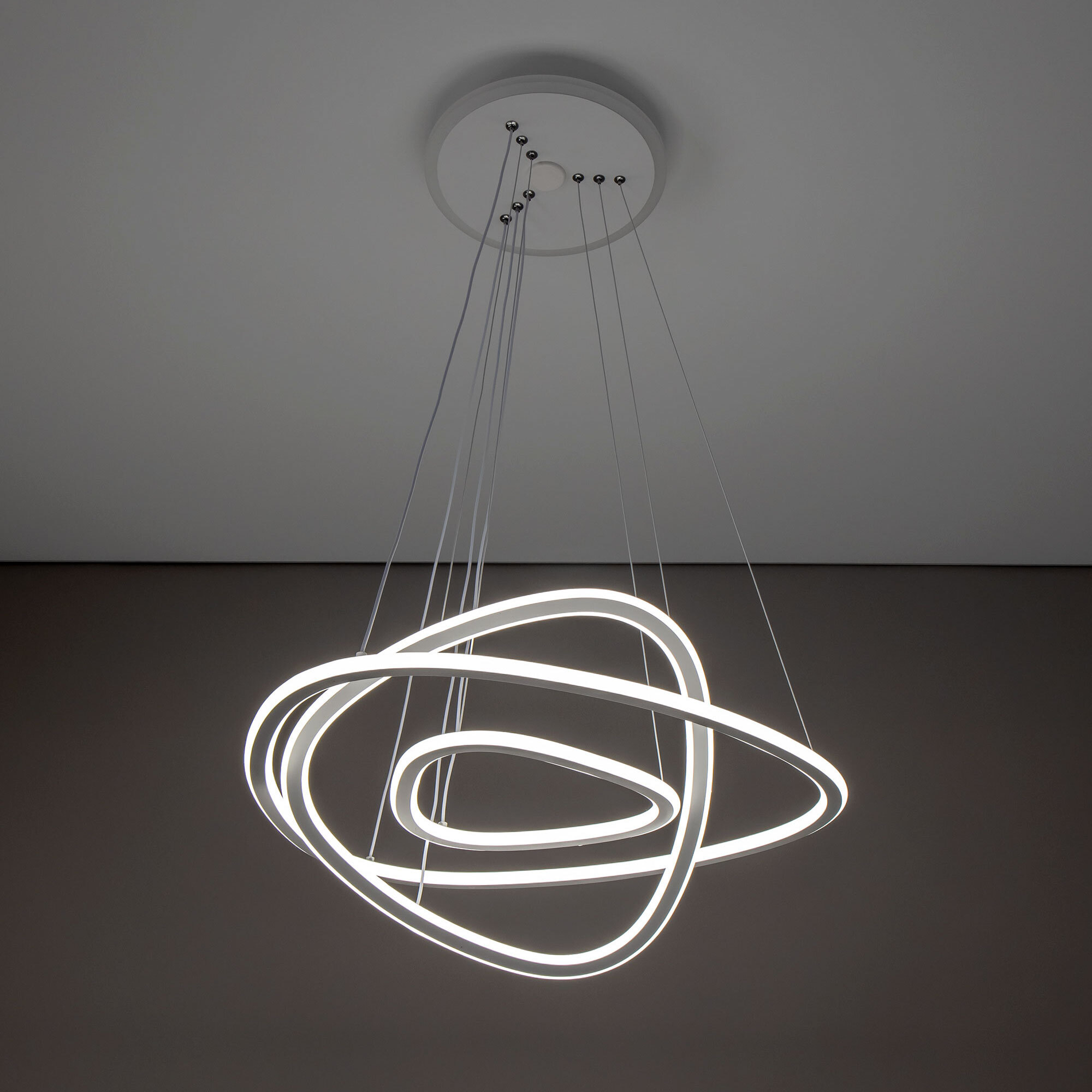 Подвесная светодиодная люстра Citilux Неон Смарт CL731A330E с голосовым управлением, входит в экосистему Citilux SMART. Светильником можно управлять: из приложения на смартфоне по Wi-Fi, при наличии интернета, с помощью голосовых помощников Алиса и Маруся, а также пультом дистанционного управления и настенным выключателем. Люстра на тросах, в форме каскада из трех подвесных колец, высоту и угол наклона каждого из которых можно изменить. Корпус изготовлен из алюминиевого сплава, окрашенного в белый цвет. Рассеиватель оптический полимер, цвет белый матовый. Крепление люстры подходит для всех типов потолков, в том числе натяжных. Тип крепления – планка. Модель оснащена мощными светодиодами, с возможностью плавной регулировки яркости от 10 до 100%. Цветовая температура регулируется в диапазоне от 3000К до 5500К, с возможностью настроить любые оттенки теплого, нейтрального и холодного света. В основании светильника установлена независимая цветная подсветка RGB. Мощность изделия 140Вт, световой поток 7500Лм, площадь освещения до 26м². Пульт ДУ в комплекте, тип батареек ААА (батарейками не комплектуется).Citilux CL731A NEON: Вдохновение в каждом луче.