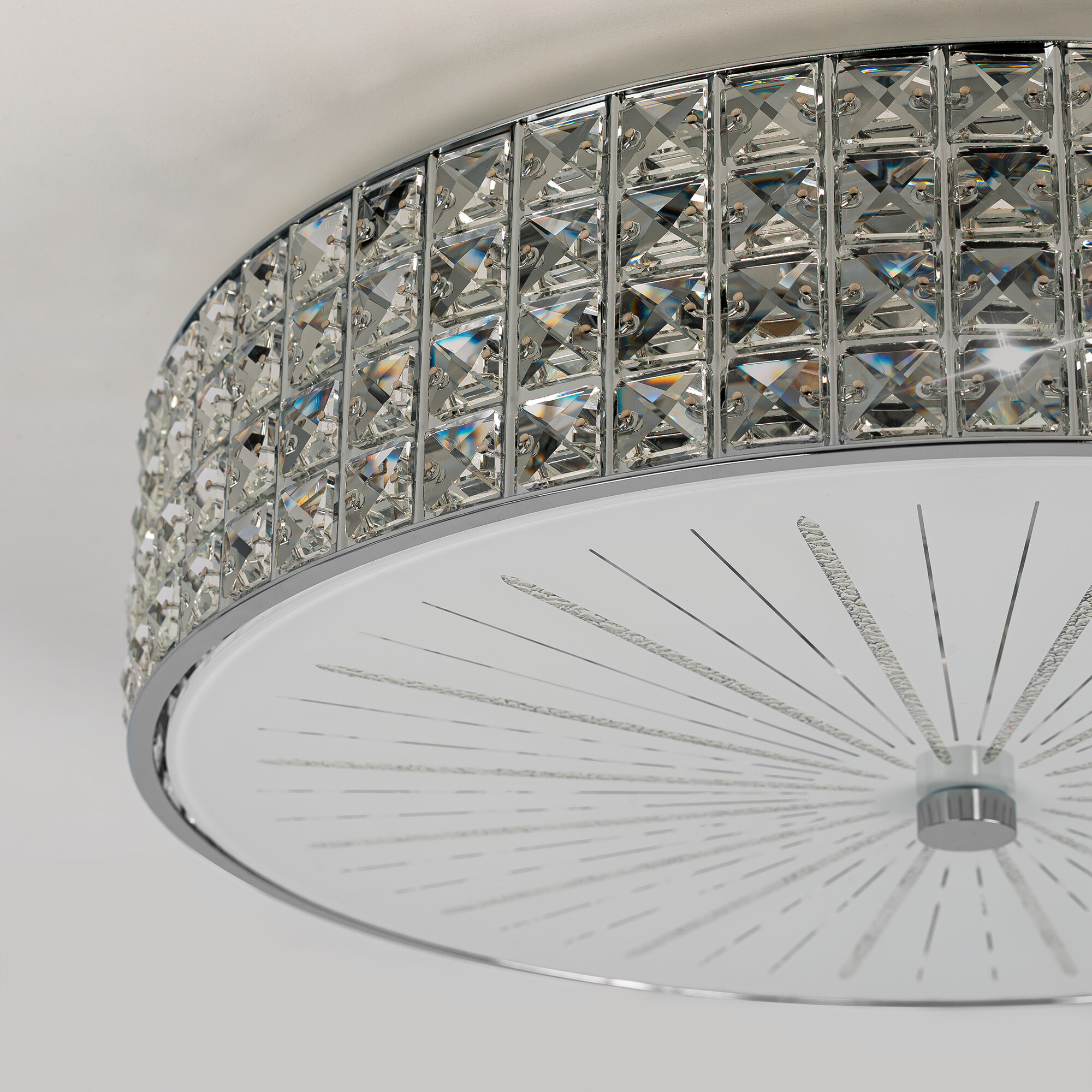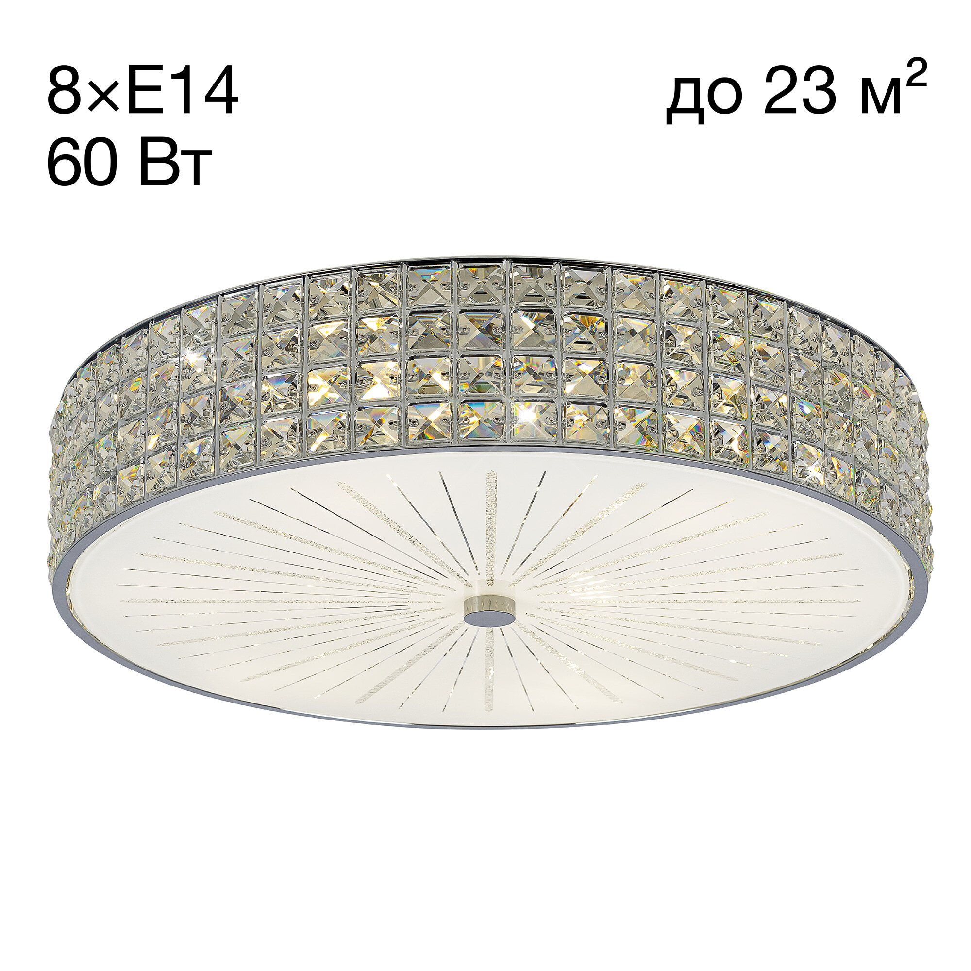 Стильные, выполненные в стиле современной классики, светильники серии Портал от Citilux, дополнены хрустальными элементами, что делает их актуальным решением, как для классических, так и для современных интерьеров. Элегантный дизайн, и сказочная игра хрусталя, несомненно, привлечёт ваше внимание и приятно поразит ваших гостей. Классическая круглая форма и эргономичность люстры, делают её подходящей, для освещения помещения любого типа площадью от 14-ти до 23-ёх квадратных метров в вашем доме или городской квартире. Диаметр конструкции составляет 51 сантиметр, а её высота всего 150 миллиметров, что является идеальным решением для невысоких потолков, при этом, патроны из углепластика дают возможность использовать лампы накаливания с цоколем Е14 до 60-ти Ватт, либо светодиодные лампы без ограничения по мощности.