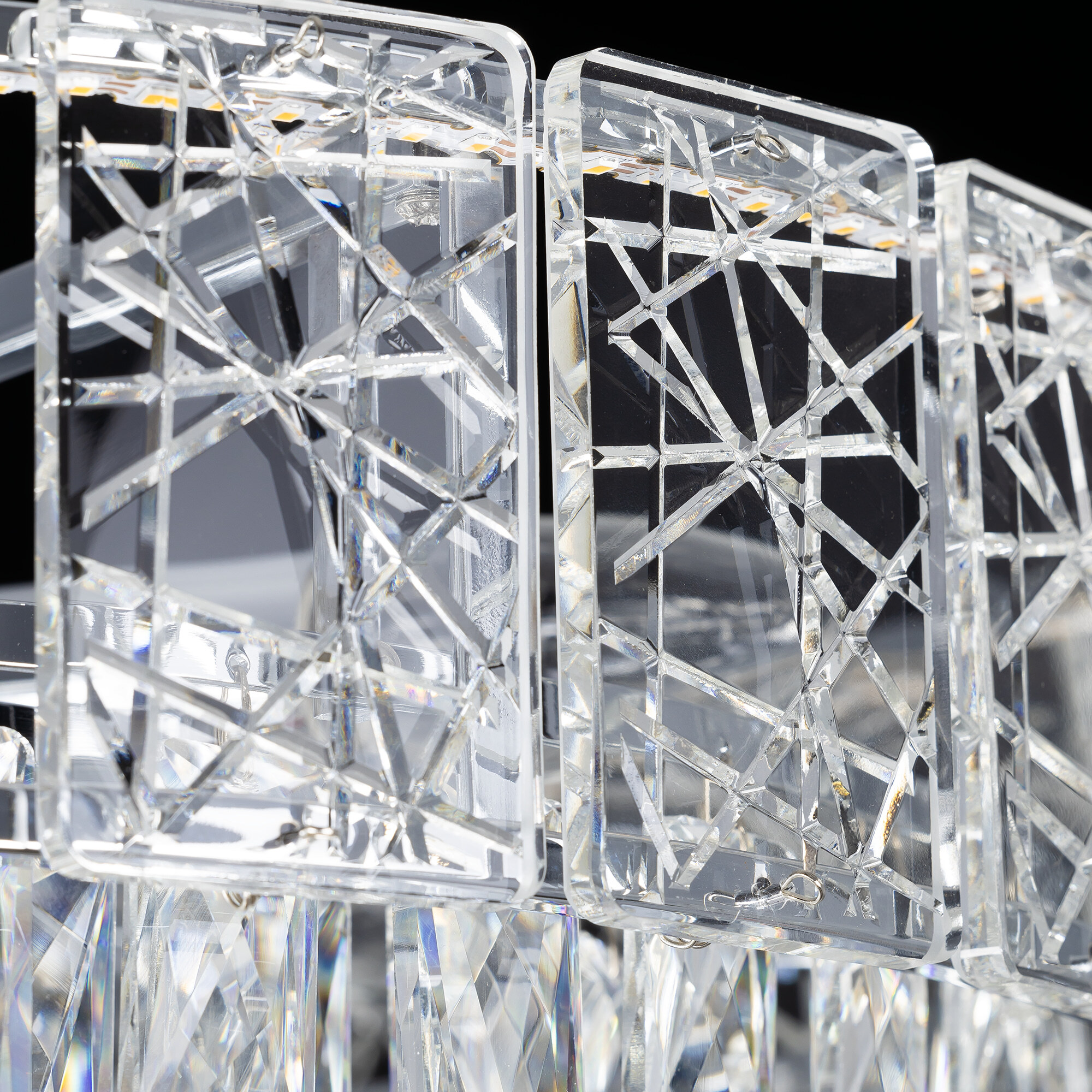 Хрустальная подвесная люстра Citilux SAGRADA CL317251 выполнена в стиле современной классики. Корпус металлический с гладким хромированным покрытием. Хрустальные элементы двух разных форм – прямоугольные пластины с алмазным гранением и кристально прозрачные подвески с современной огранкой — создают неповторимую игру света и придают люстре роскошный вид.
