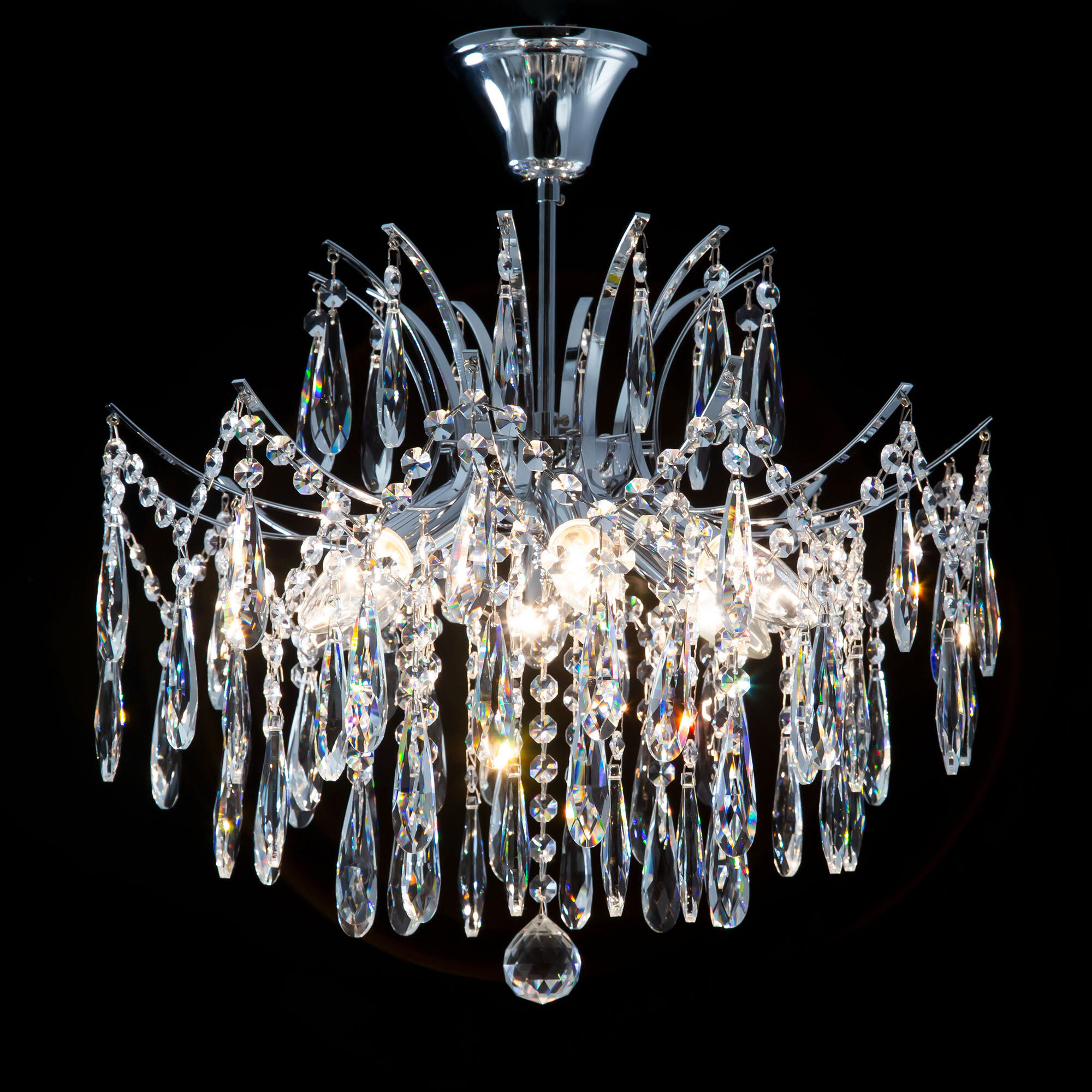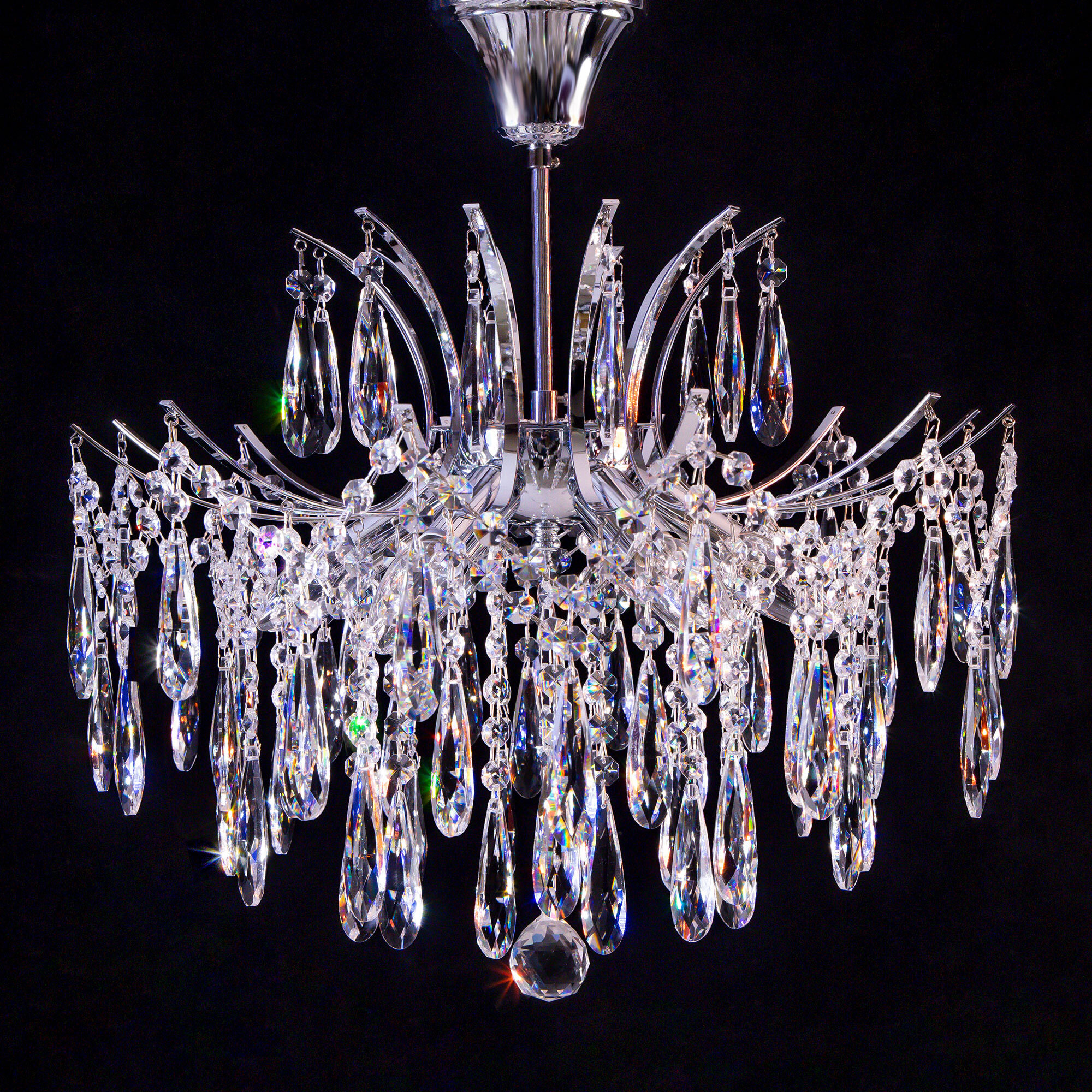 Хрустальная люстра Citilux Селена CL302160 на штанге. Корпус светильника металлический, цвет хром. Подвески хрустальные с классической огранкой. В модели используются 6 ламп с цоколем Е14 и максимальной мощностью для ламп накаливания 40Вт. Светодиодные лампы можно использовать более яркие. Площадь освещения около 20 кв. метров. Люстра подходит для всех типов потолков, в том числе натяжных. Тип крепления – крючок. Светильник отлично подойдет для освещения пространств, оформленных как в современном, так и в классическом стиле.Citilux CL302 SELENA: Вдохновение в каждом луче.