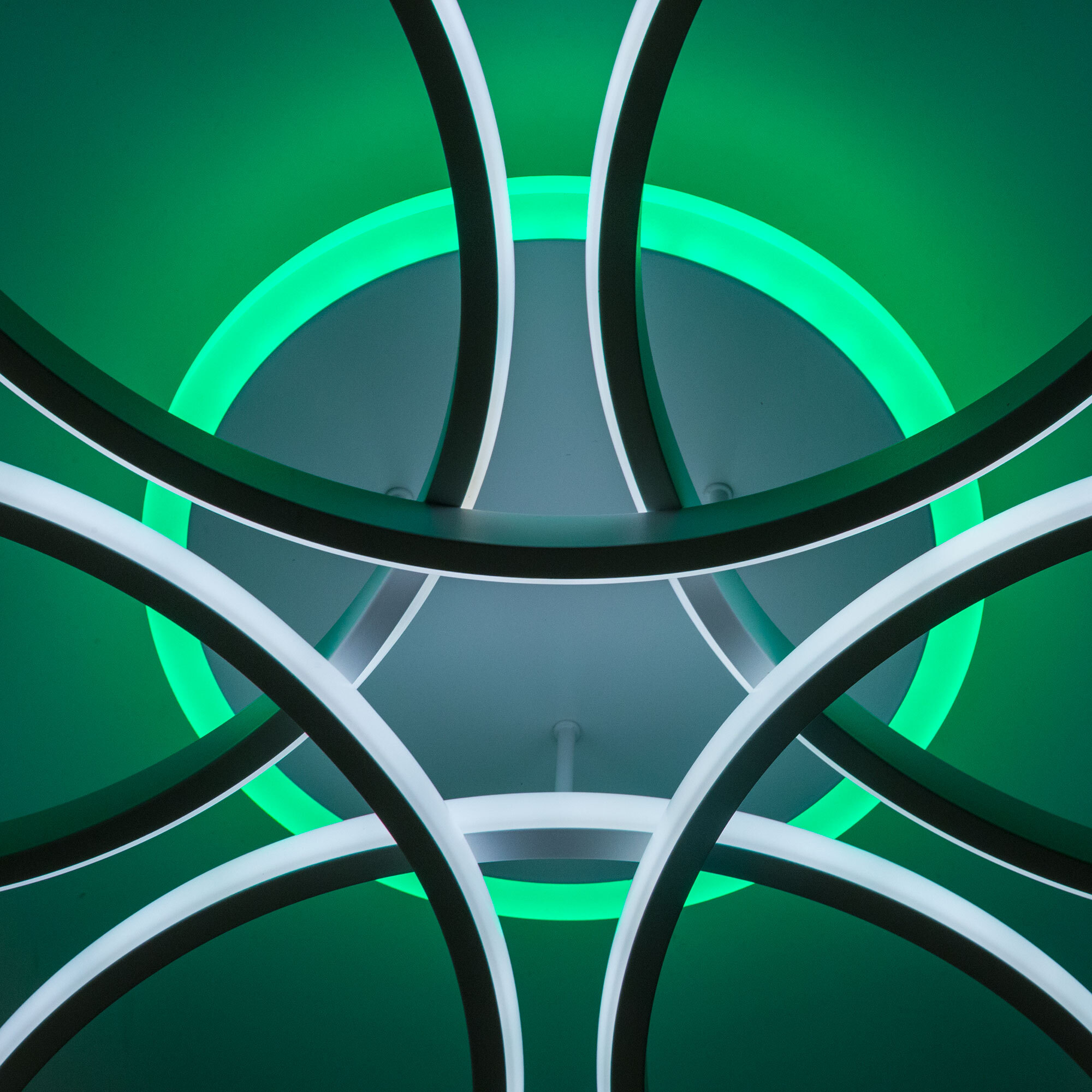 Люстрой можно управлять: из приложения на смартфоне по Wi-Fi при наличии интернета, с помощью голосовых помощников Алиса и Маруся, есть возможность запуска настроенных сценариев с помощью Сири, а также пультом дистанционного управления и с настенного выключателя.