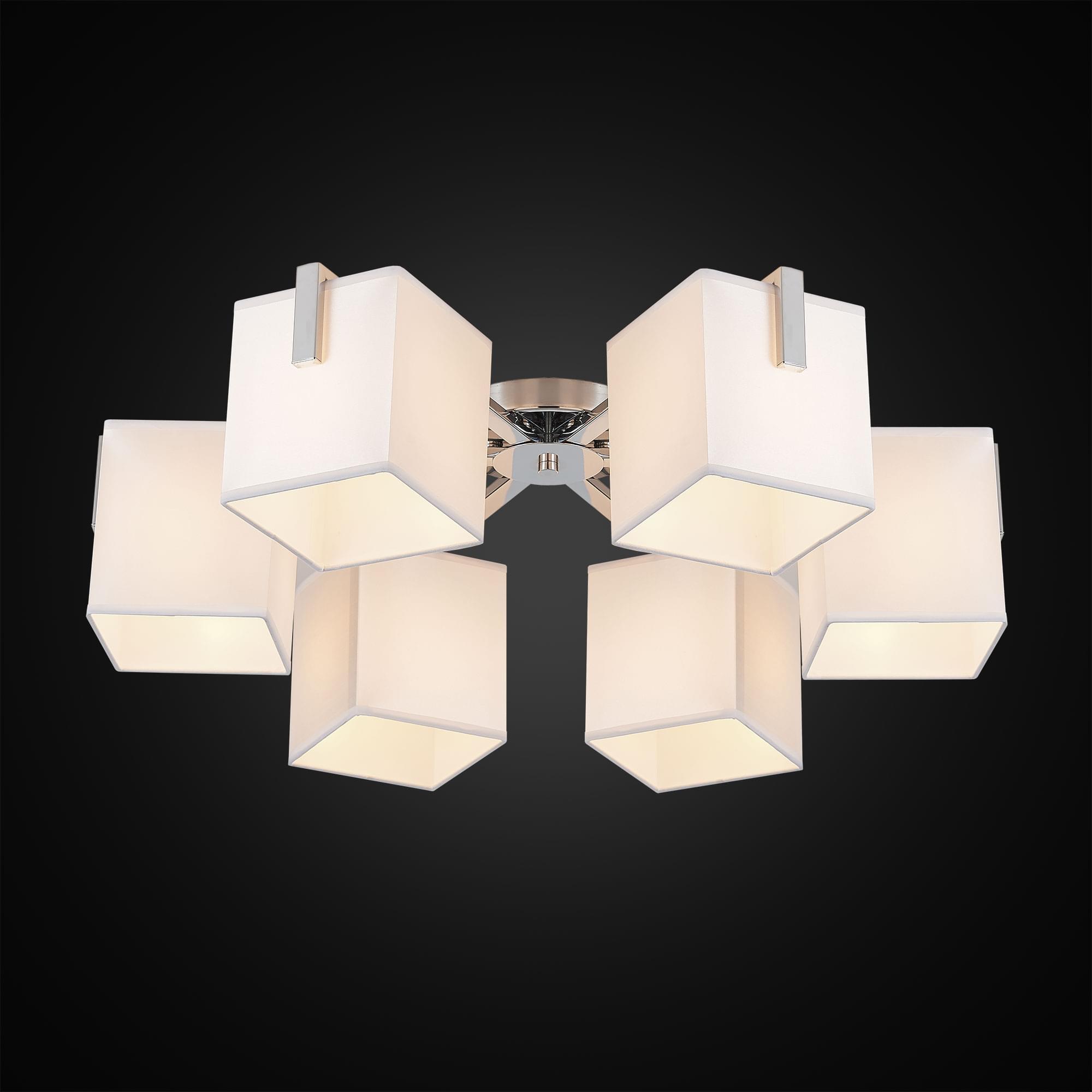 В изделии 6 ламп с цоколем Е27 максимальной мощностью для ламп накаливания 75Вт (в комплект не входят, приобретаются отдельно). Светильник диаметром 71см, высота 19,5см. Подходит для всех типов потолков, в том числе натяжных, тип крепления – планка.