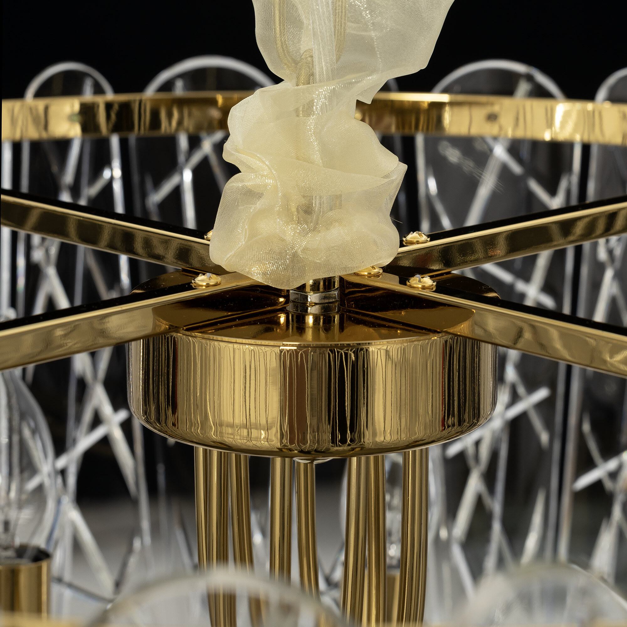 Каркас светильника из металла благородного золотого оттенка. Тонкие хрустальные пластины с замысловатым декоративным рисунком превращают свет в магию: мягкие лучи, проходя через хрусталь, рассыпаются по комнате миллионами радужных бликов.
