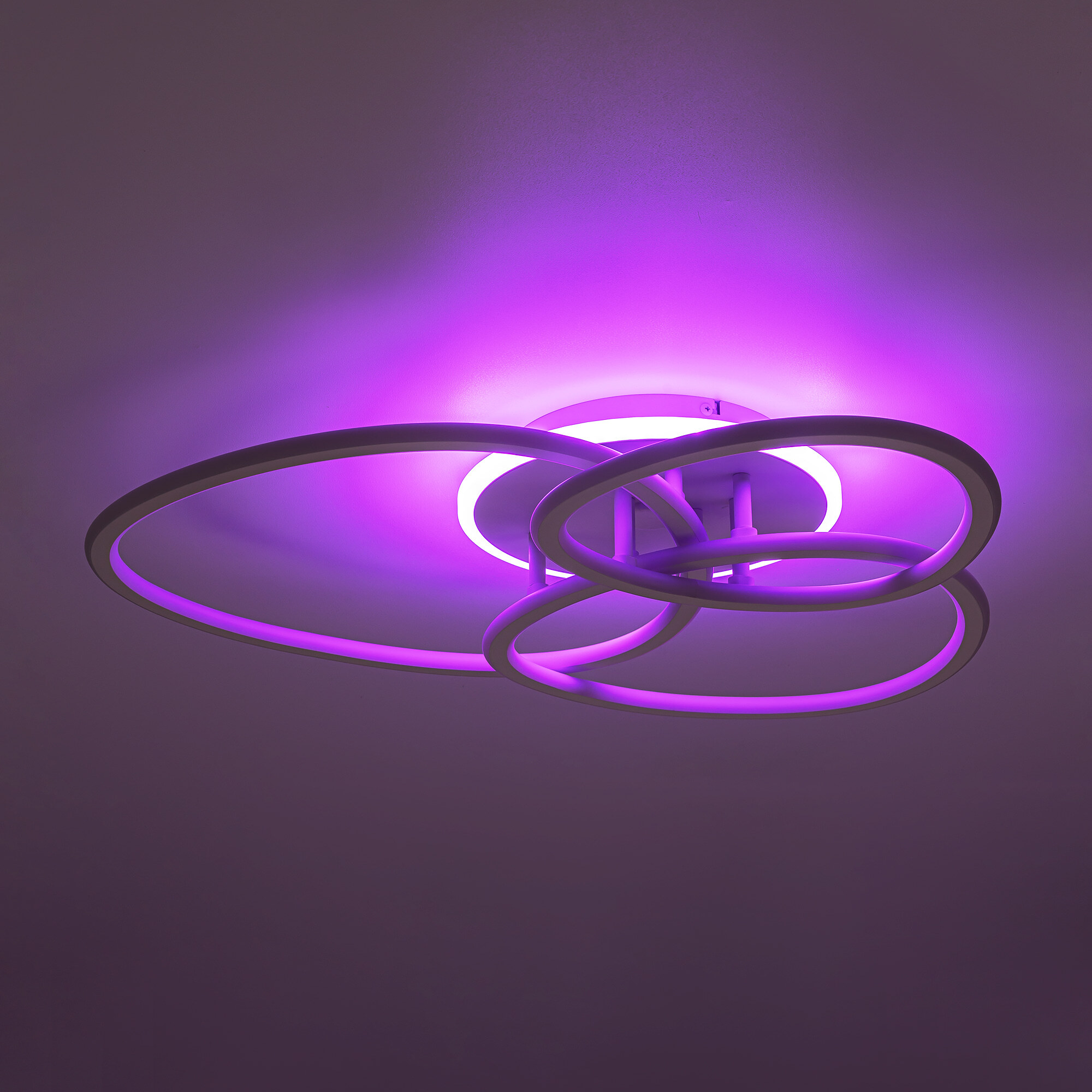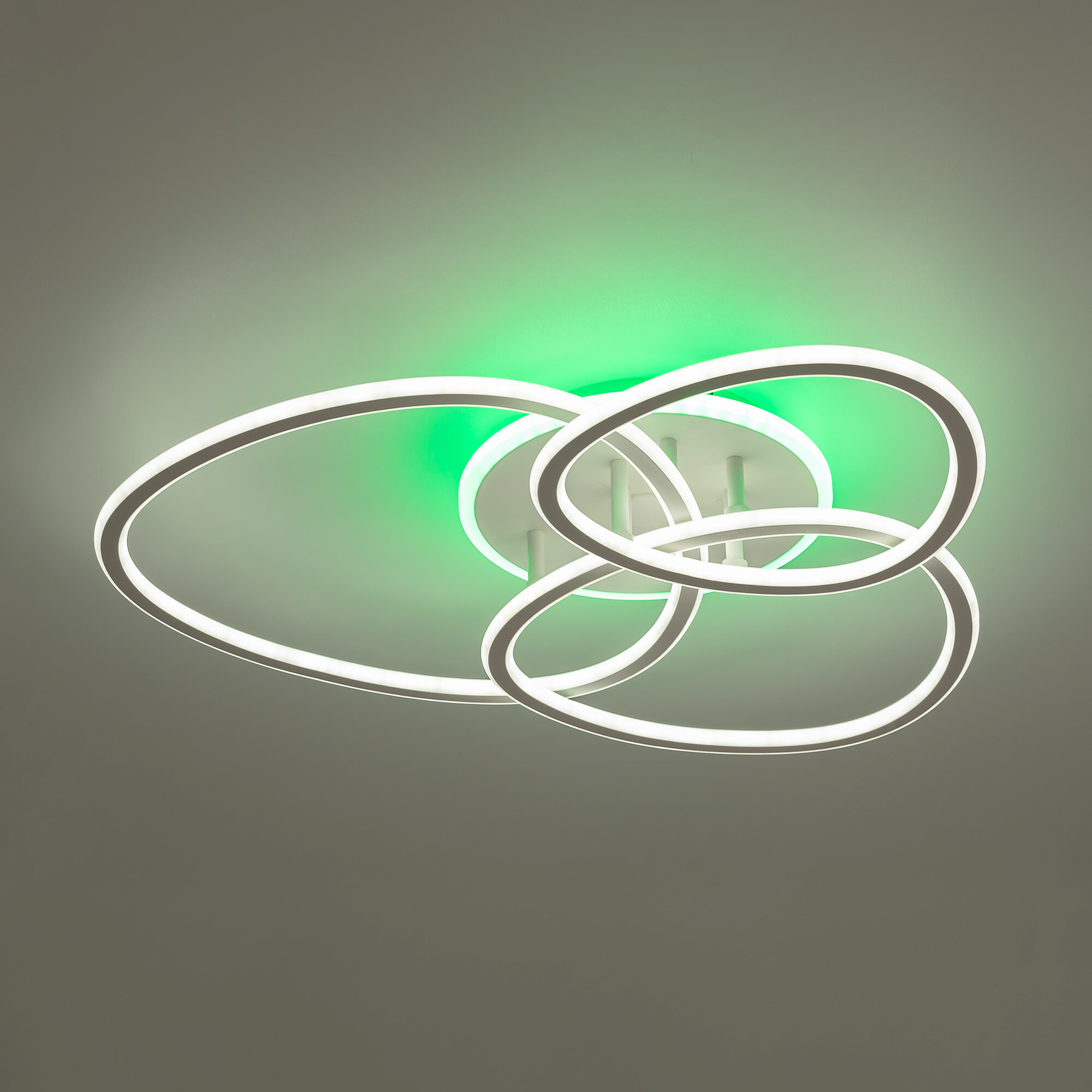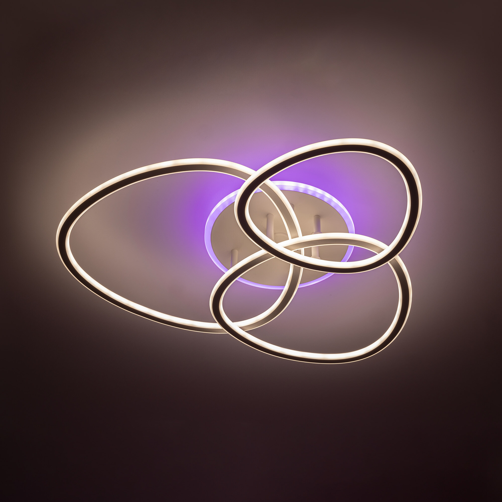 Круглое основание с красочной RGB подсветкой добавляет люстре элегантности и создает эффект "парящего" света. Три светодиодных модуля расположены таким образом, чтобы обеспечить максимально равномерное освещение по всей площади комнаты.