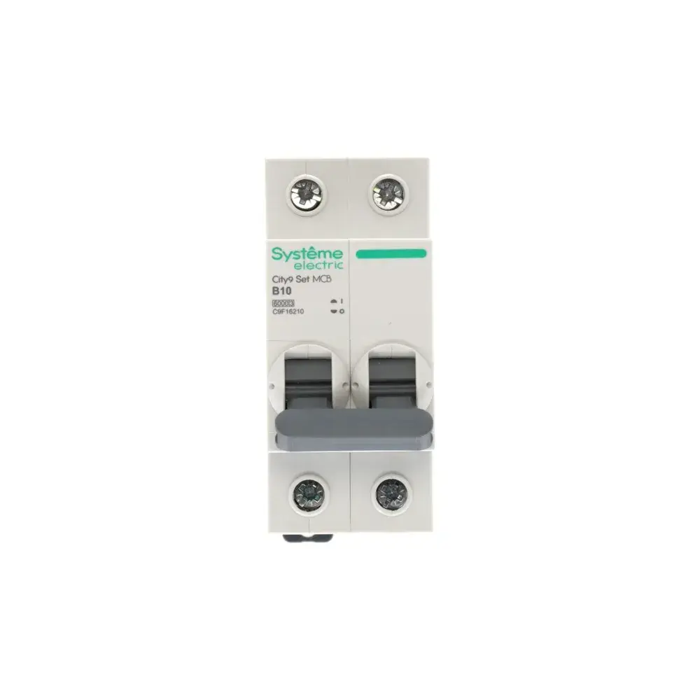 Автоматический выключатель серии City9 Set Systeme Electric, 2-полюсный, номинальный ток 10 А, характеристика B, Icn = 6 кА. Применяется в электрических сетях напряжением 230 В. Предназначен для защиты от перегрузок и токов короткого замыкания. Оснащен механизмом «мгновенной коммутации». Ударопрочный корпус из специального пластика с 6 металлическими заклепками. Безопасные клеммы исключают попадание кабелей в заклеммное пространство.