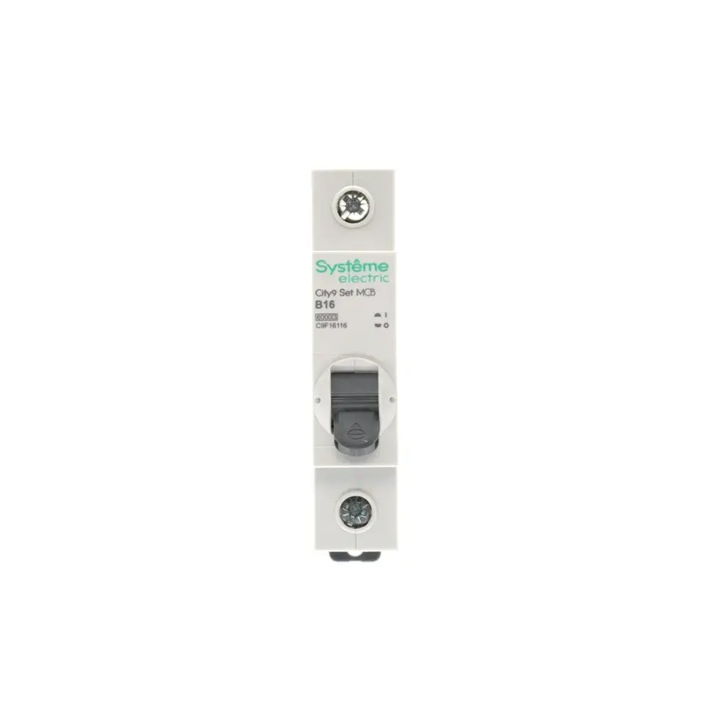 Автоматический выключатель серии City9 Set Systeme Electric, 1-полюсный, номинальный ток 16 А, характеристика B, Icn = 6 кА. Применяется в электрических сетях напряжением 230 В. Предназначен для защиты от перегрузок и токов короткого замыкания. Оснащен механизмом «мгновенной коммутации». Ударопрочный корпус из специального пластика с 6 металлическими заклепками. Безопасные клеммы исключают попадание кабелей в заклеммное пространство.
