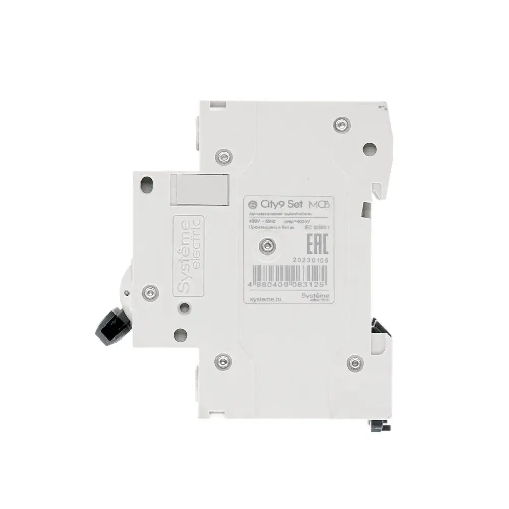 Автоматический выключатель серии City9 Set Systeme Electric, 3-полюсный, номинальный ток 16 А, характеристика B, Icn = 4.5 кА. Применяется в электрических сетях напряжением 400 В. Предназначен для защиты от перегрузок и токов короткого замыкания. Оснащен механизмом «мгновенной коммутации». Ударопрочный корпус из специального пластика с 6 металлическими заклепками. Безопасные клеммы исключают попадание кабелей в заклеммное пространство.