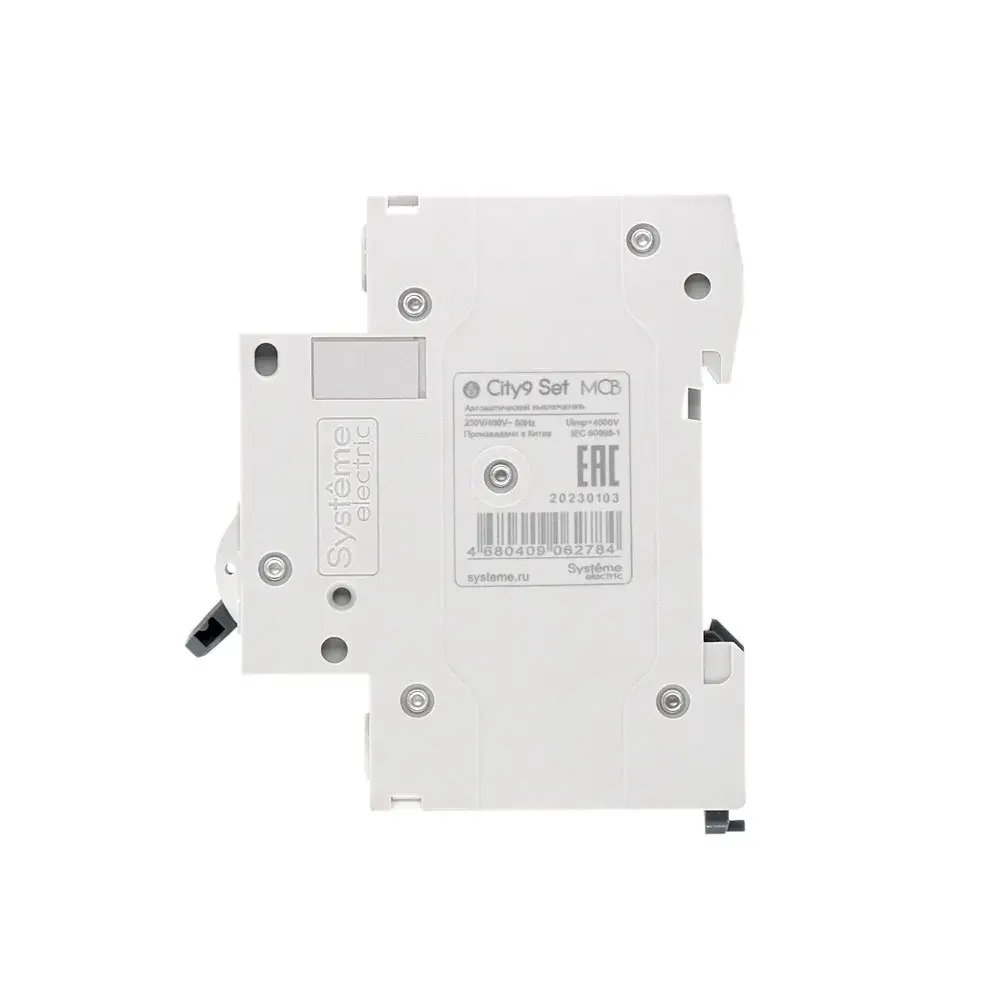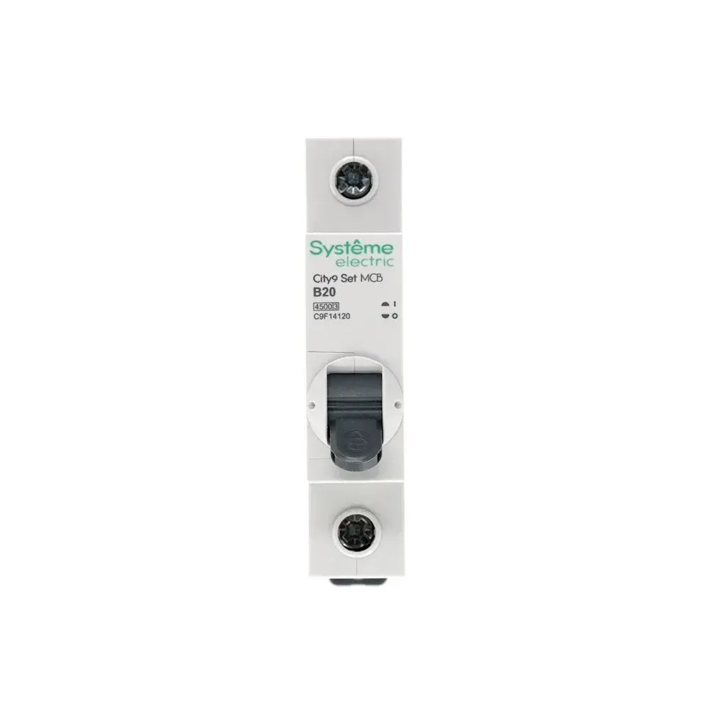 Автоматический выключатель серии City9 Set Systeme Electric, 1-полюсный, номинальный ток 20 А, характеристика B, Icn = 4.5 кА. Применяется в электрических сетях напряжением 230 В. Предназначен для защиты от перегрузок и токов короткого замыкания. Оснащен механизмом «мгновенной коммутации». Ударопрочный корпус из специального пластика с 6 металлическими заклепками. Безопасные клеммы исключают попадание кабелей в заклеммное пространство.