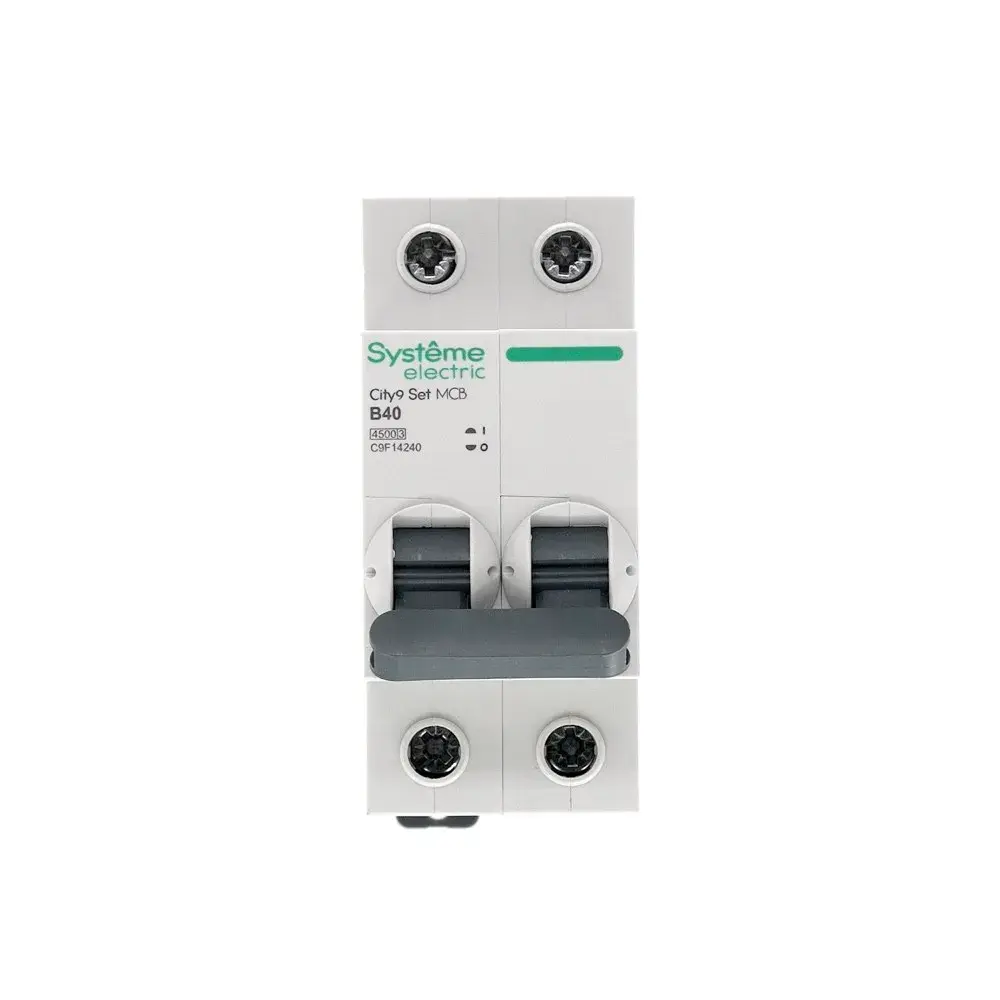 Автоматический выключатель серии City9 Set Systeme Electric, 2-полюсный, номинальный ток 40 А, характеристика B, Icn = 4.5 кА. Применяется в электрических сетях напряжением 230 В. Предназначен для защиты от перегрузок и токов короткого замыкания. Оснащен механизмом «мгновенной коммутации». Ударопрочный корпус из специального пластика с 6 металлическими заклепками. Безопасные клеммы исключают попадание кабелей в заклеммное пространство.