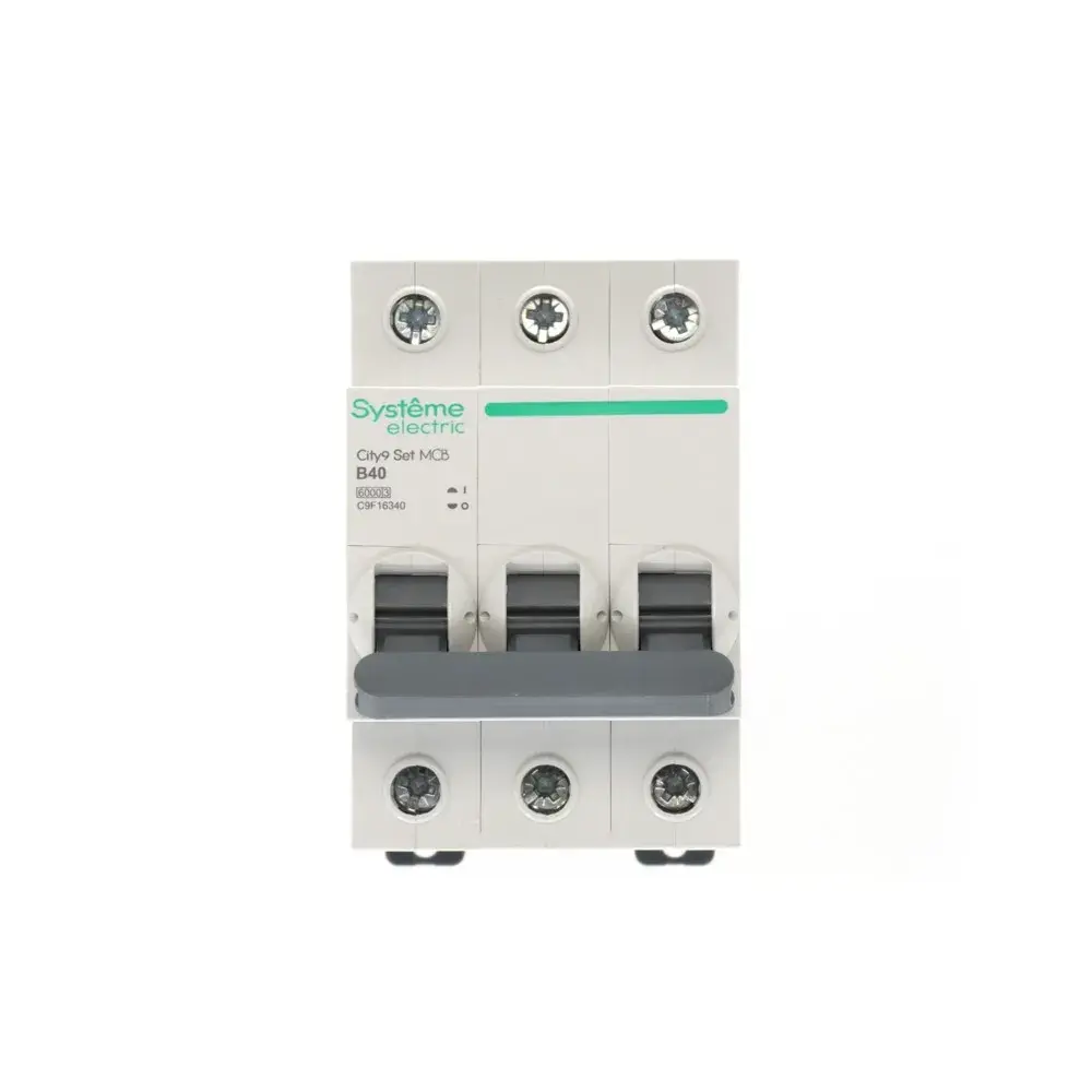 Автоматический выключатель серии City9 Set Systeme Electric, 3-полюсный, номинальный ток 40 А, характеристика B, Icn = 6 кА. Применяется в электрических сетях напряжением 400 В. Предназначен для защиты от перегрузок и токов короткого замыкания. Оснащен механизмом «мгновенной коммутации». Ударопрочный корпус из специального пластика с 6 металлическими заклепками. Безопасные клеммы исключают попадание кабелей в заклеммное пространство.