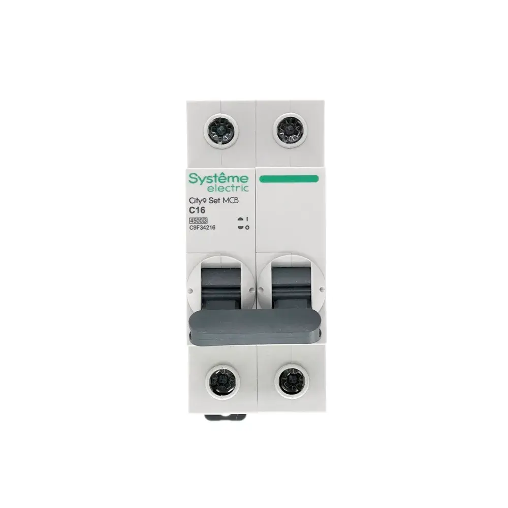 Автоматический выключатель серии City9 Set Systeme Electric, 2-полюсный, номинальный ток 16 А, характеристика С, Icn = 4.5 кА. Применяется в электрических сетях напряжением 230 В. Предназначен для защиты от перегрузок и токов короткого замыкания. Оснащен механизмом «мгновенной коммутации». Ударопрочный корпус из специального пластика с 6 металлическими заклепками. Безопасные клеммы исключают попадание кабелей в заклеммное пространство.