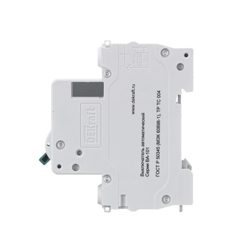 Автоматический выключатель серии ВА-101 Dekraft; 1P; номинальный ток 20 А; характеристика С; отключающая способность 4,5 кА. 5 монолитных заклепок повышают прочность корпуса аппарата. Сплошная лицевая панель обеспечивает безопасность эксплуатации аппарата. Боковые каналы охлаждения повышают стабильность работы при высоких температурах окружающей среды. Есть возможность установки дополнительных аксессуаров с левой стороны устройства. Аппарат на 100% совместим с корпусами Dekraft и Systeme Electric.