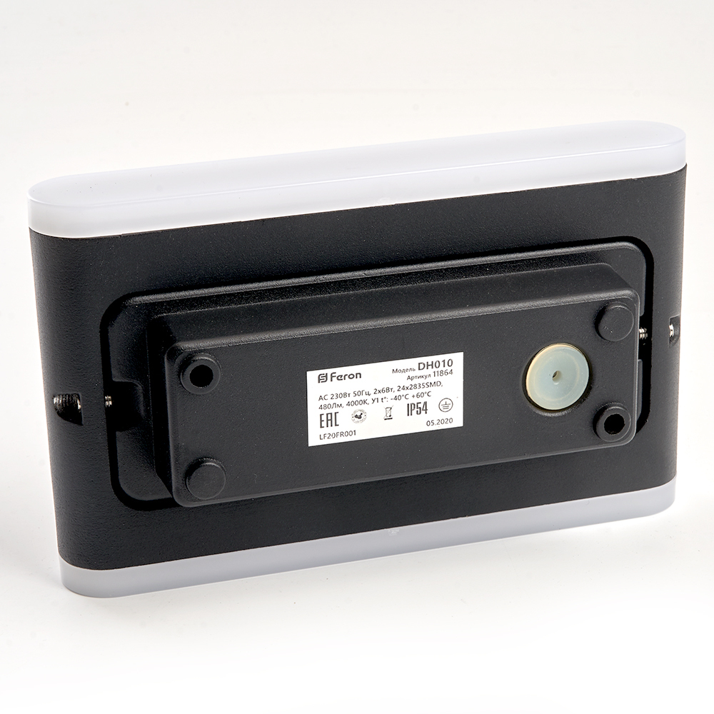 Светильник уличный светодиодный, на стену (ДБУ) FERON DH010, серия Техно, 2*6W, 4000К (белый натуральный), 230V/50Гц, 840Lm, IP54, 2LED*SMD2835, класс защиты 1, раб.t -40°C...+40°C, цвет черный, корпус алюминий, 50*175*107мм,