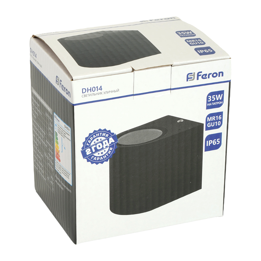 Светильник садово-парковый, серии «Бостон», (ДБУ) FERON DH014 35W, GU10, 230V, IP65, цвет черный, на стену , 78*68*100мм
