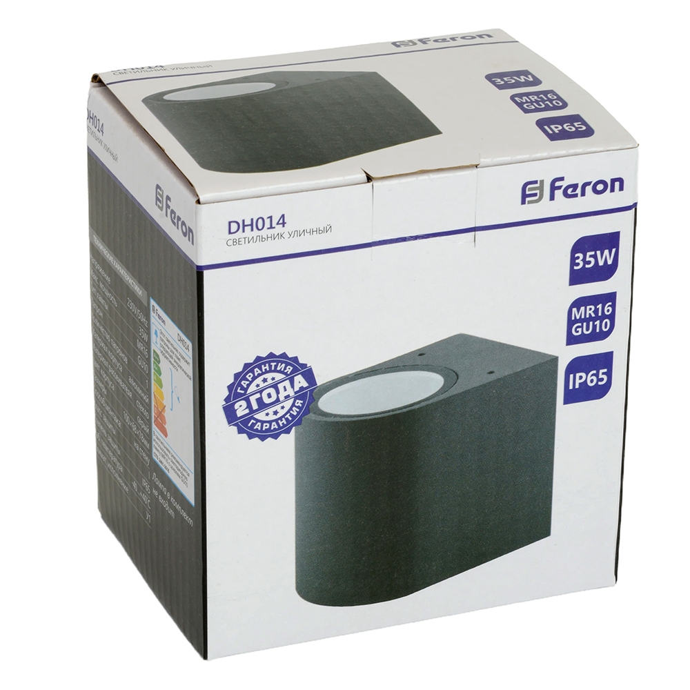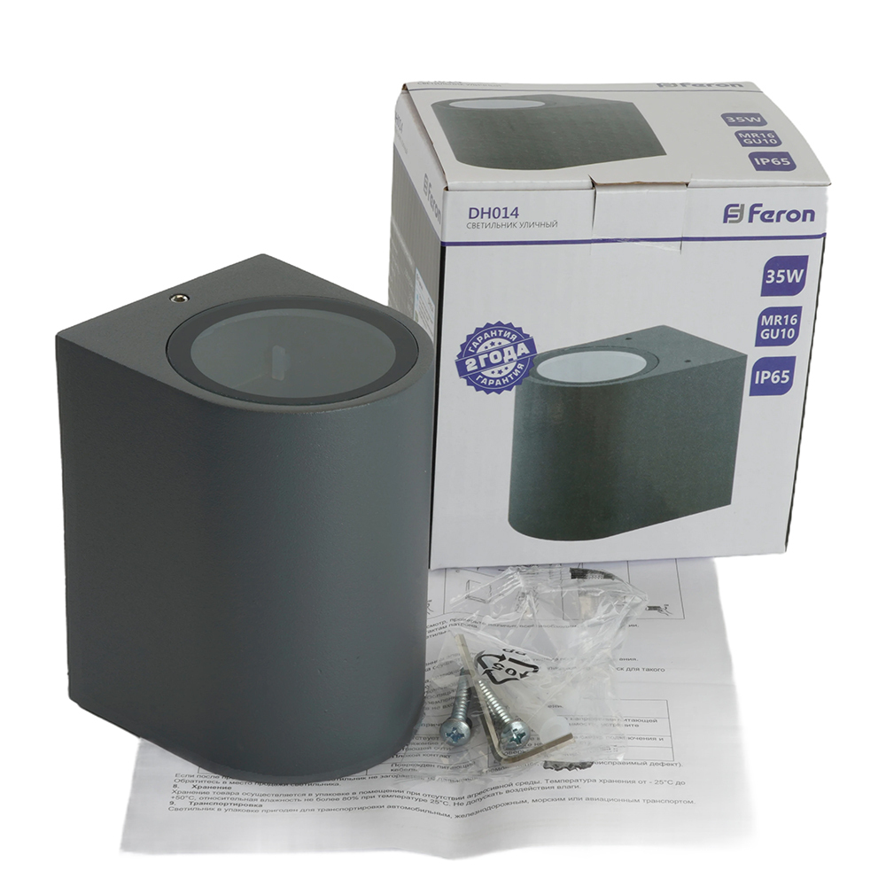 Светильник садово-парковый, серии «Бостон», (ДБУ) FERON DH014 35W, GU10, 230V, IP65, цвет серый, на стену , 78*68*100мм