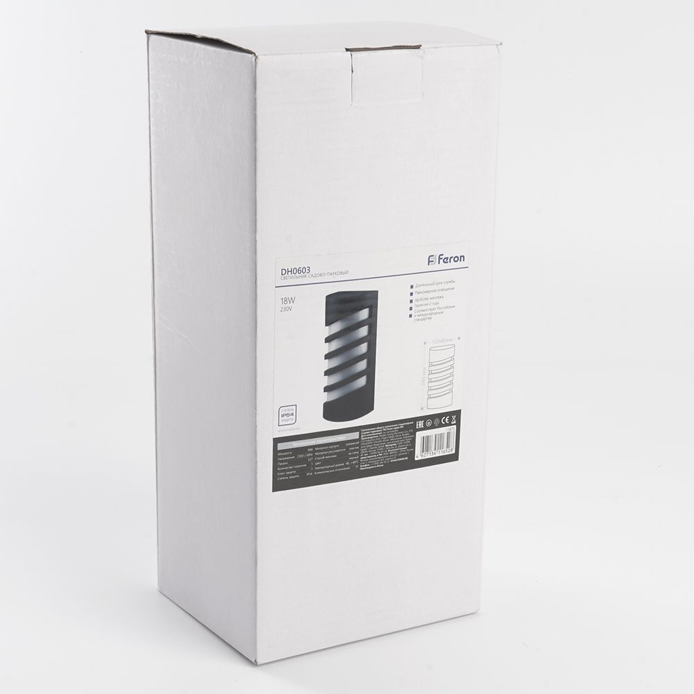 Светильник садово-парковый, серии «Киото», (ЛБУ) FERON DH0603 18W, E27, 230V, IP54, цвет черный, прямоугольник, на стену , 80*120*245мм