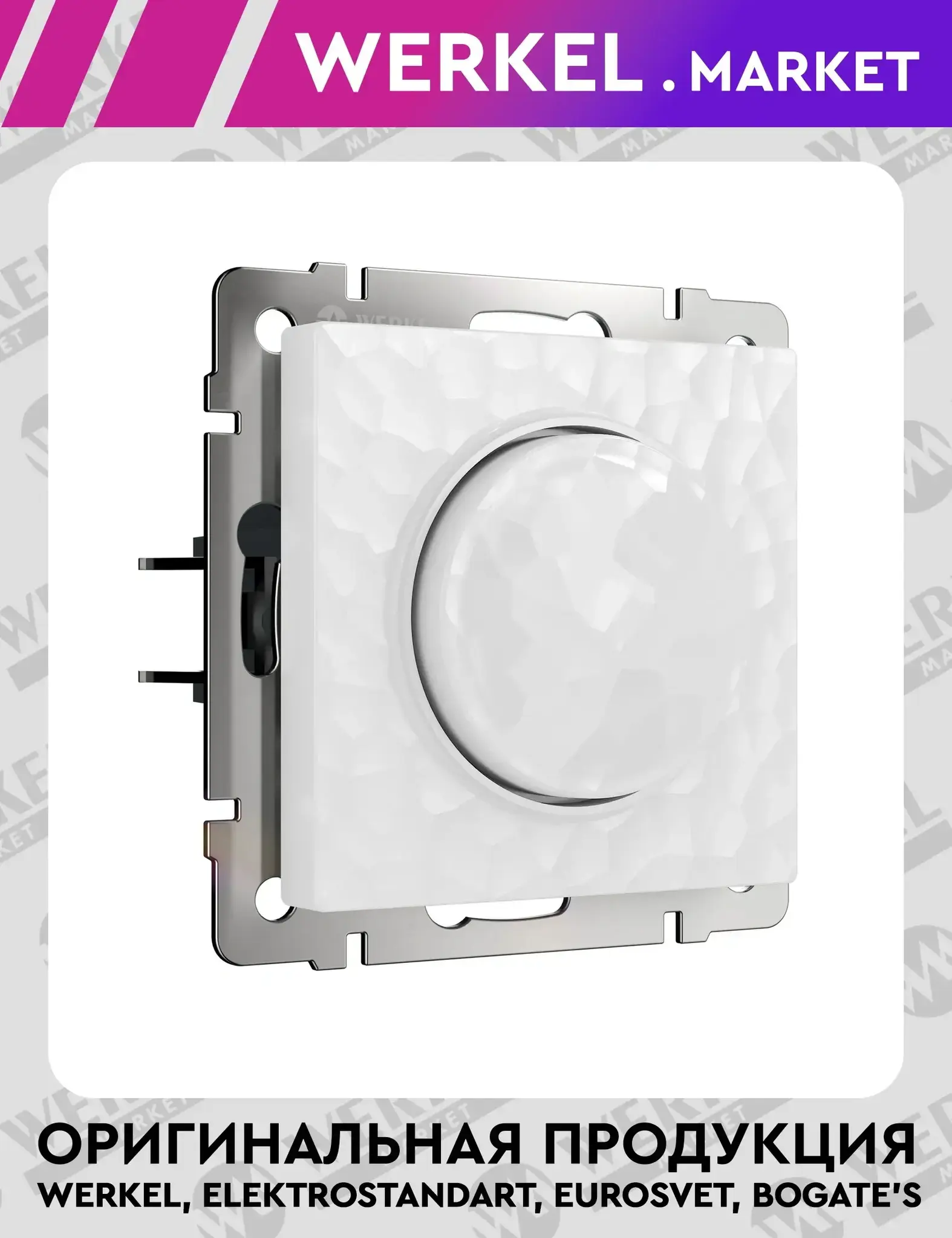 Диммер от Werkel подключается в разрыв цепи как обычный выключатель или по схеме проходного выключателя. Он позволяет заменить обычные или проходные выключатели без необходимости перекладки проводки. Механизм устройства позволяет плавно регулировать уровень освещенности в помещении. Включение и выключение света происходят при нажатии на кнопку, а изменение яркости и интенсивности света — при помощи поворотной кнопки. Диммер встраиваемой серии Werkel совместим со светодиодными диммируемыми лампами, галогенными лампами и лампами накаливания. Также он может использоваться вместе с проходным выключателем. Для стабильной работы диммера рекомендуется оставлять запас мощности около 15%, то есть при максимальной мощности 600 ватт, запас должен составлять примерно 90 ватт. Для светодиодных диммируемых ламп, при максимальной мощности 200 ватт, запас составит около 30 ватт.