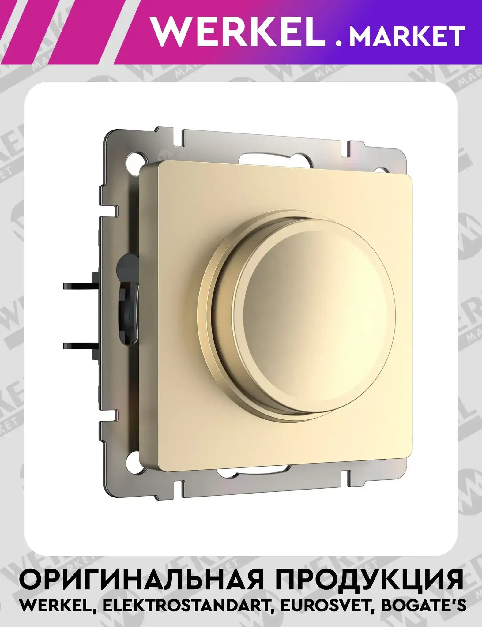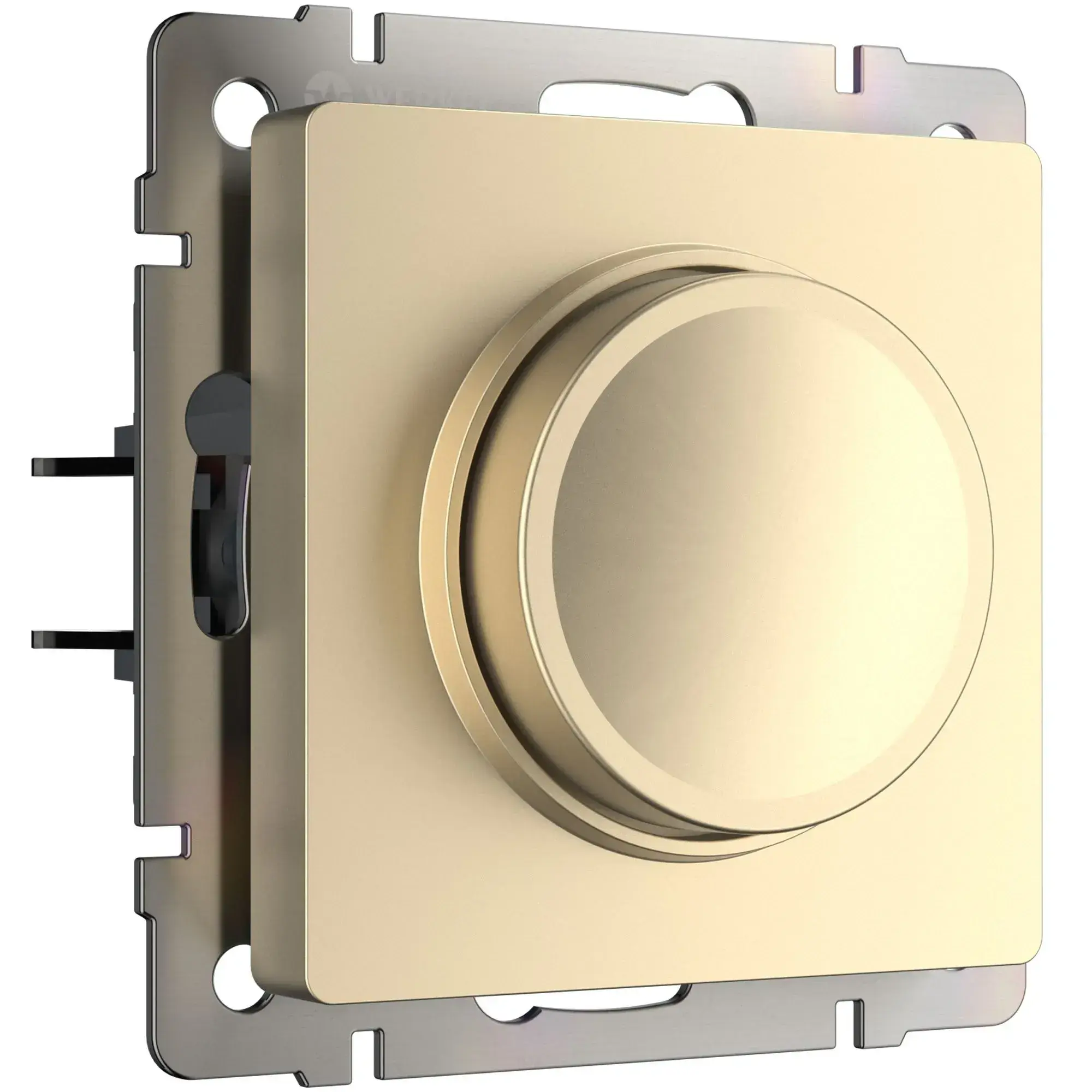 Диммер (шампань) W1142011 подключается последовательно или по схеме проходного переключателя, что позволяет заменить обычный или проходной переключатель диммером Werkel без изменения проводки. Современный диммер Werkel позволяет легко регулировать уровень освещённости в комнате. Включение и выключение осуществляется нажатием кнопки, а изменение яркости и интенсивности светового потока регулируется поворотным переключателем. Диммер совместим со светодиодными, галогенными лампами и лампами накаливания. Встраиваемый диммер Werkel может использоваться вместе с проходным переключателем. Для надёжной и стабильной работы диммера рекомендуется оставлять запас мощности около 15 % (510 Вт) при максимальной мощности 600 Вт или 15 % (170 Вт) при максимальной мощности 200 Вт для диммируемых светодиодных ламп.