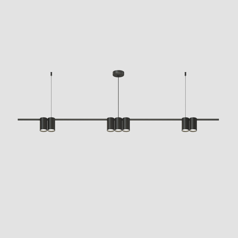 ORBIT подвесной светильник. Длина 1,5 м. Возможна регулировка по высоте. Корпус изготовлен из алюминия, эффективно отводящего тепло, и имеет матовую шероховатую поверхность. 7 плафонов под сменную лампу. Модель представлена также в цвете сатинированное золото.