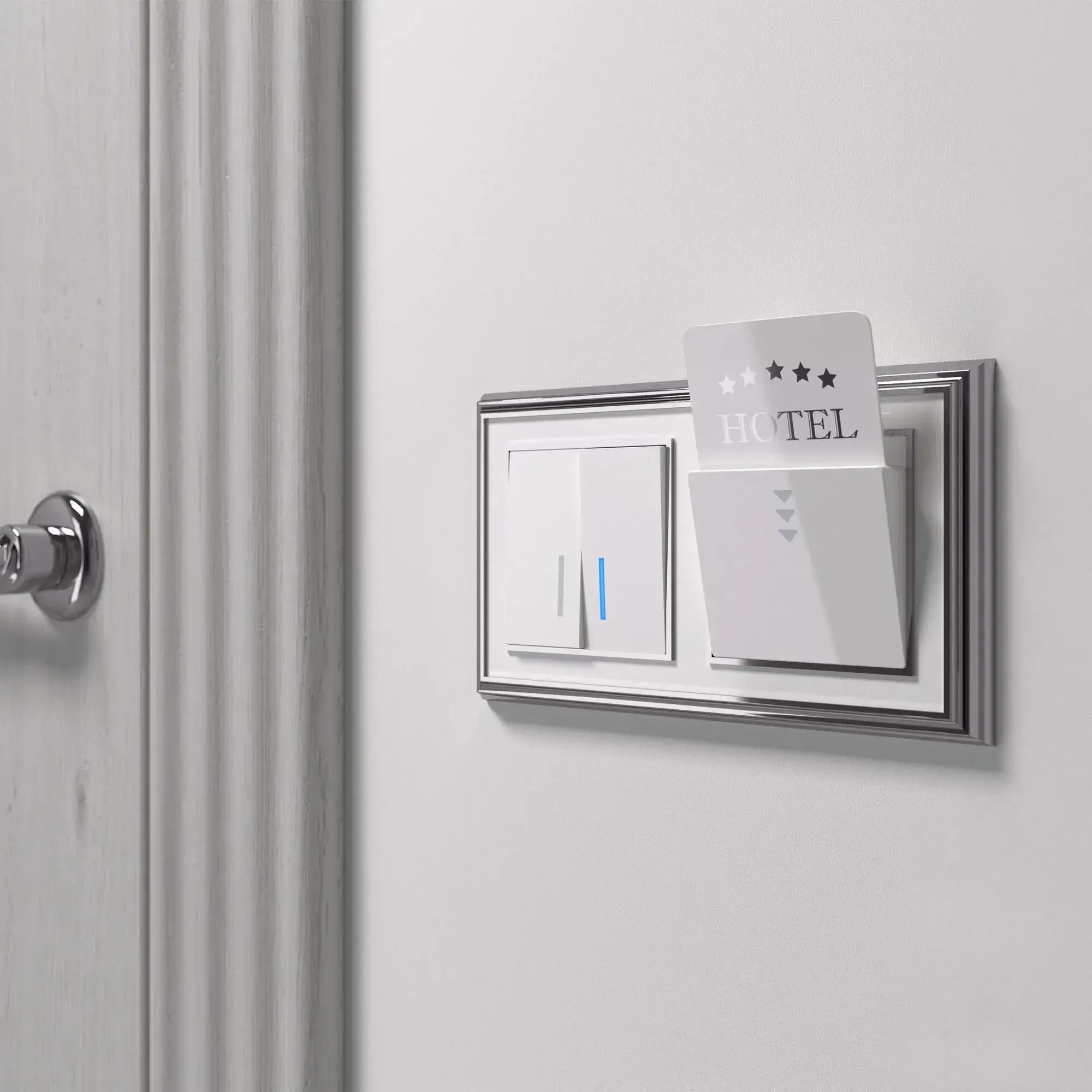 Электронный карточный выключатель предназначен для экономии электроэнергии и управления электропитанием в гостиничных номерах, загородных домах, офисах, выставочных помещениях. Выключатель прост в использовании и не требует программирования. Достаточно вставить карту в механизм, чтобы включить освещение. После извлечения карты запускается автоматический режим задержки времени, позволяющий комфортно, при освещении, в течение 30 секунд покинуть помещение.