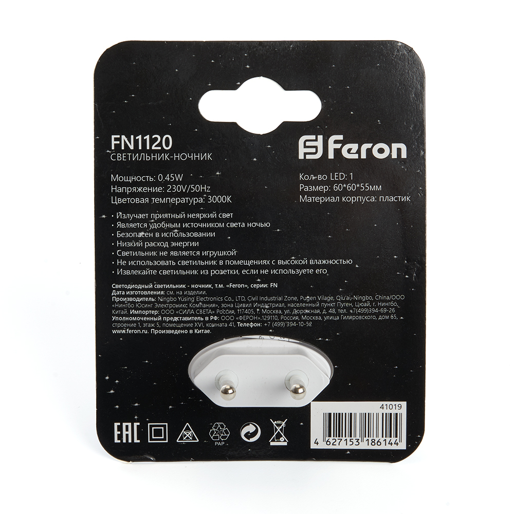 Светильник-ночник 0,5W 230V квадрат, белый FN1120