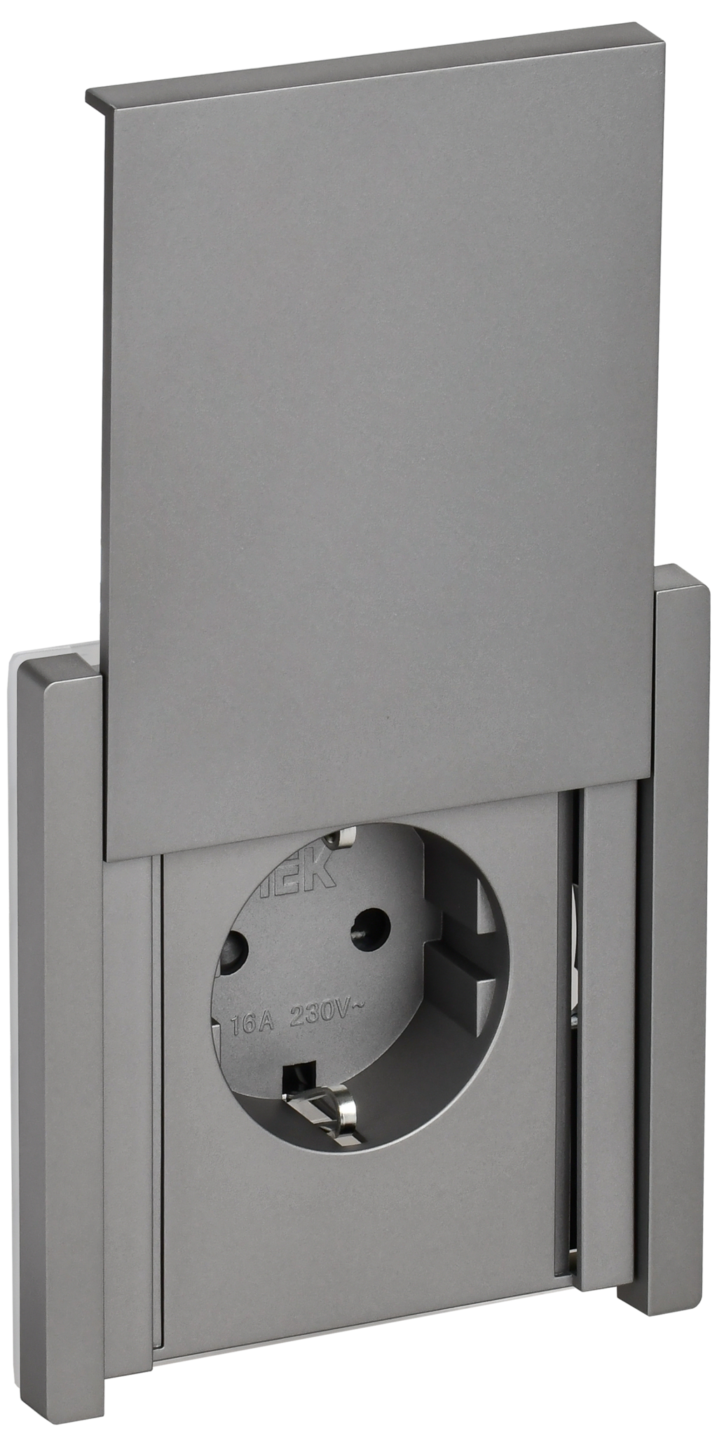 FORTE&PIANO Розетка 1-местная с заземлением с защитными шторками и крышкой винтовое крепление 16А IP44 FP521 сталь IEK