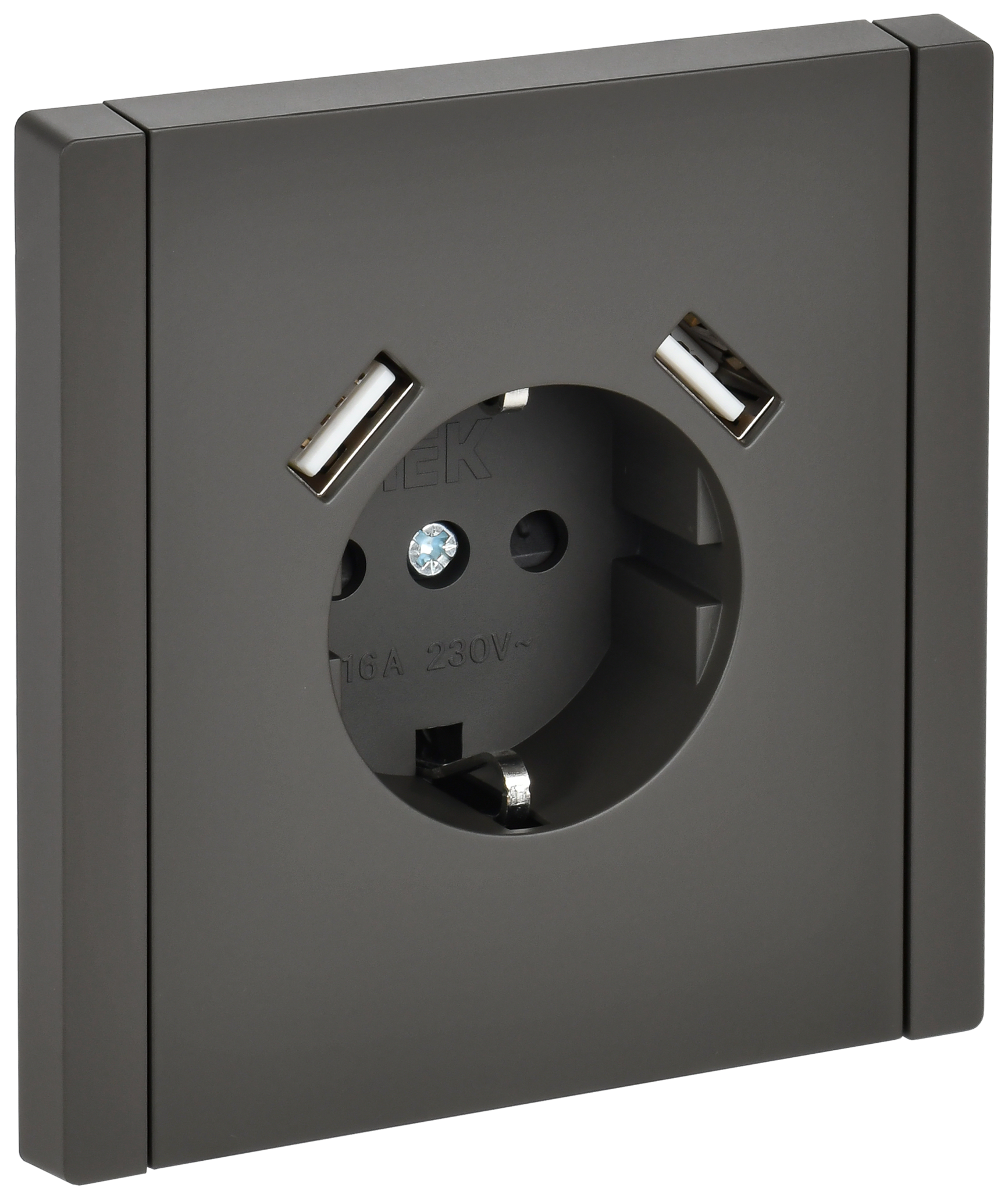 FORTE&PIANO Розетка 1-местная с заземлением с защитными шторками винтовое крепление 16А USB A+A 3,1А FP345 серый IEK