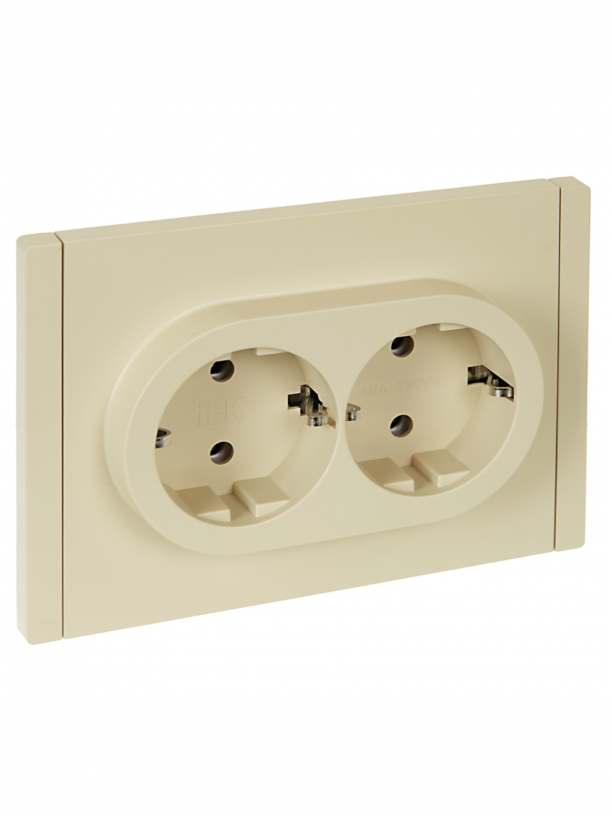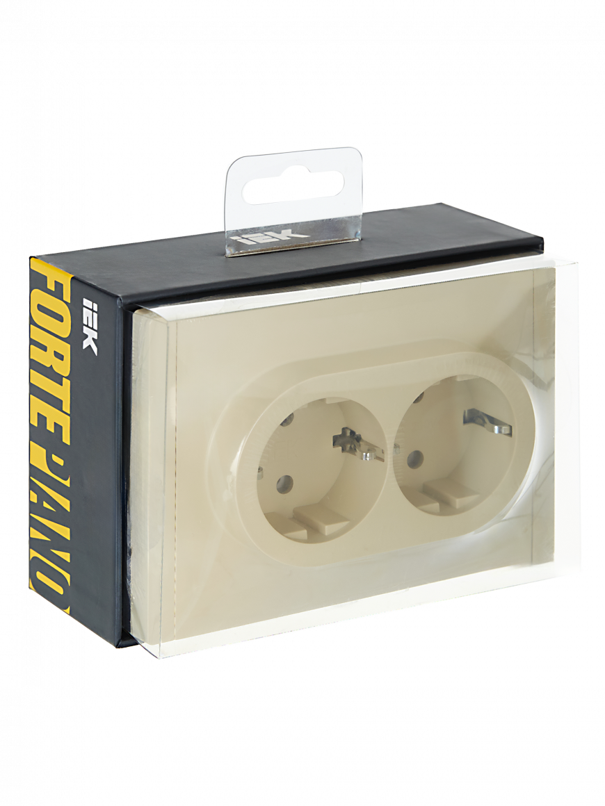 FORTE&PIANO Розетка 2-местная с заземлением с защитными шторками безвинтовое крепление 16А FP423 ваниль IEK