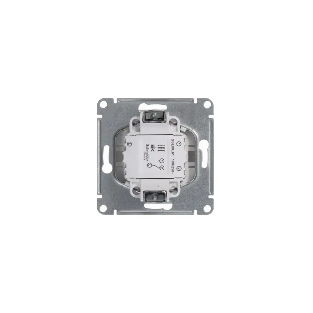 Механизм Systeme Electric (ранее Schneider Electric) серии Glossa (цвет белый) переключателя 1-клавишного подходит для сетей 250 В, на ток 10 А. - Переключатель позволяют управлять одним источником света с двух точек. - Выполнен из материала PС+ASA, стойкого к УФ-излучению и появлению царапин. - Эргономичные клеммы расположены в два ряда: сверху и снизу.